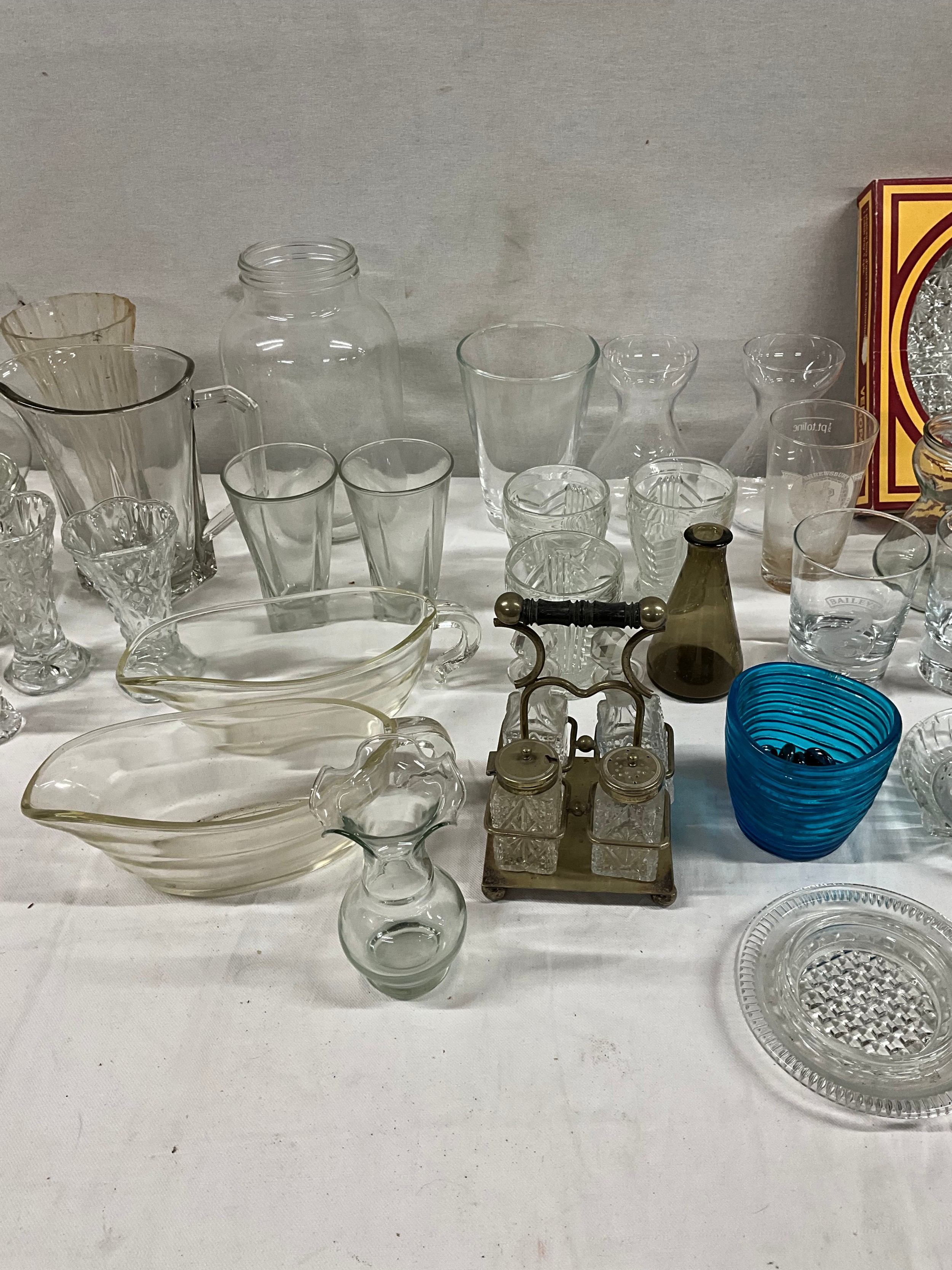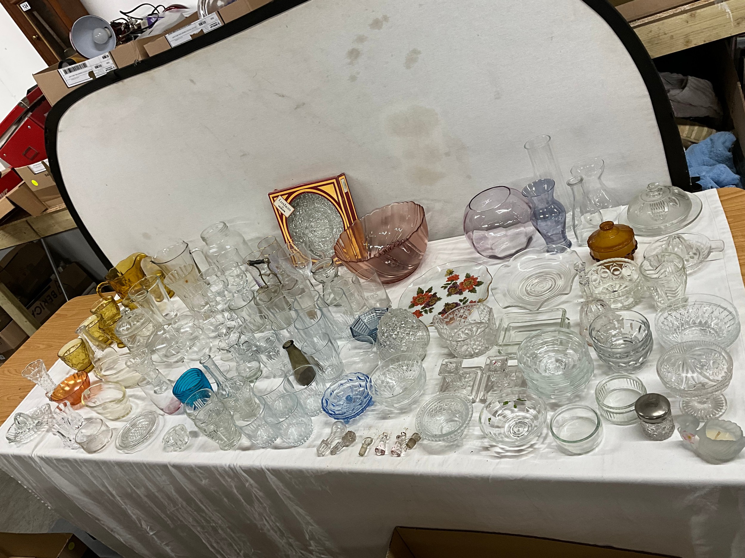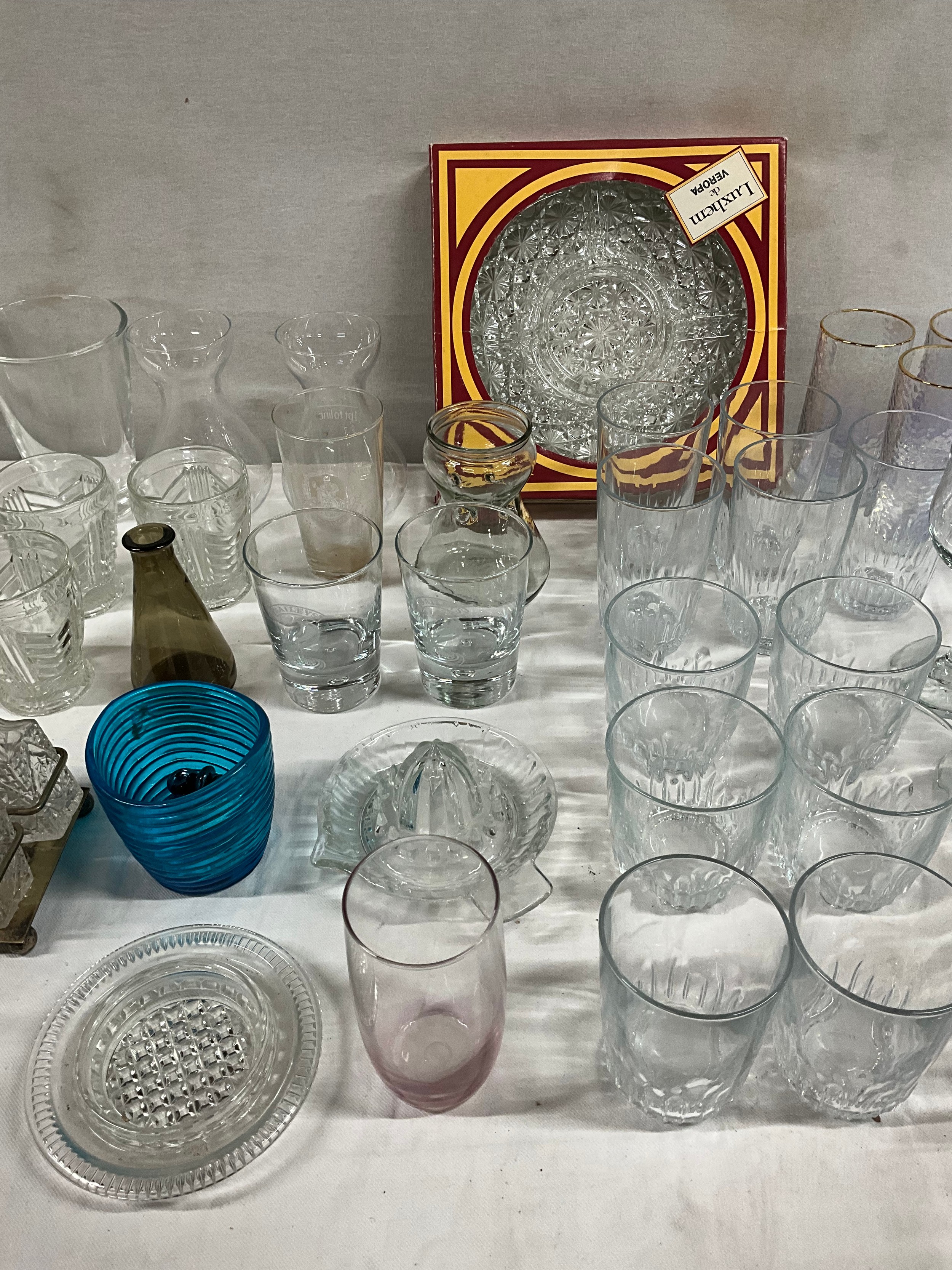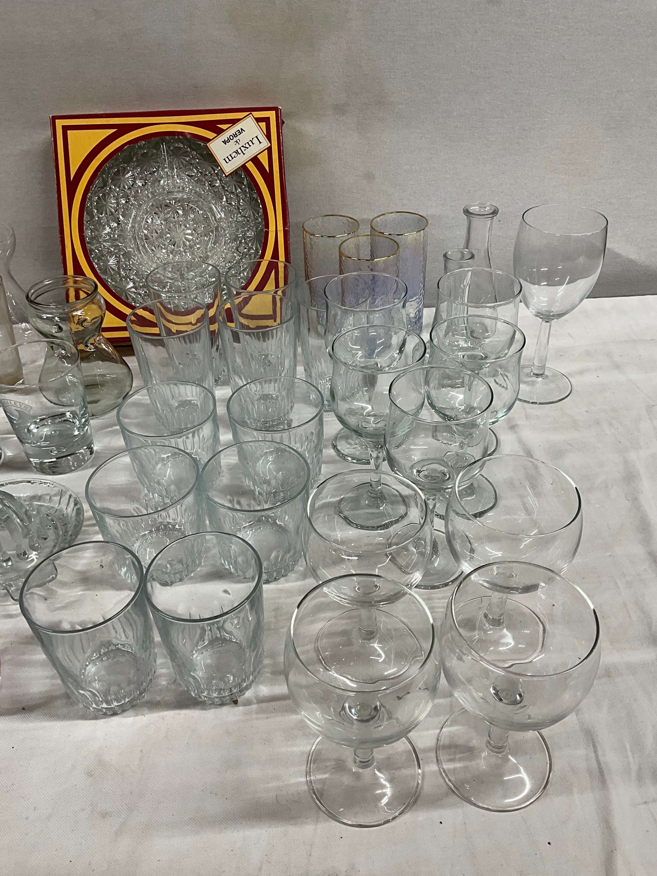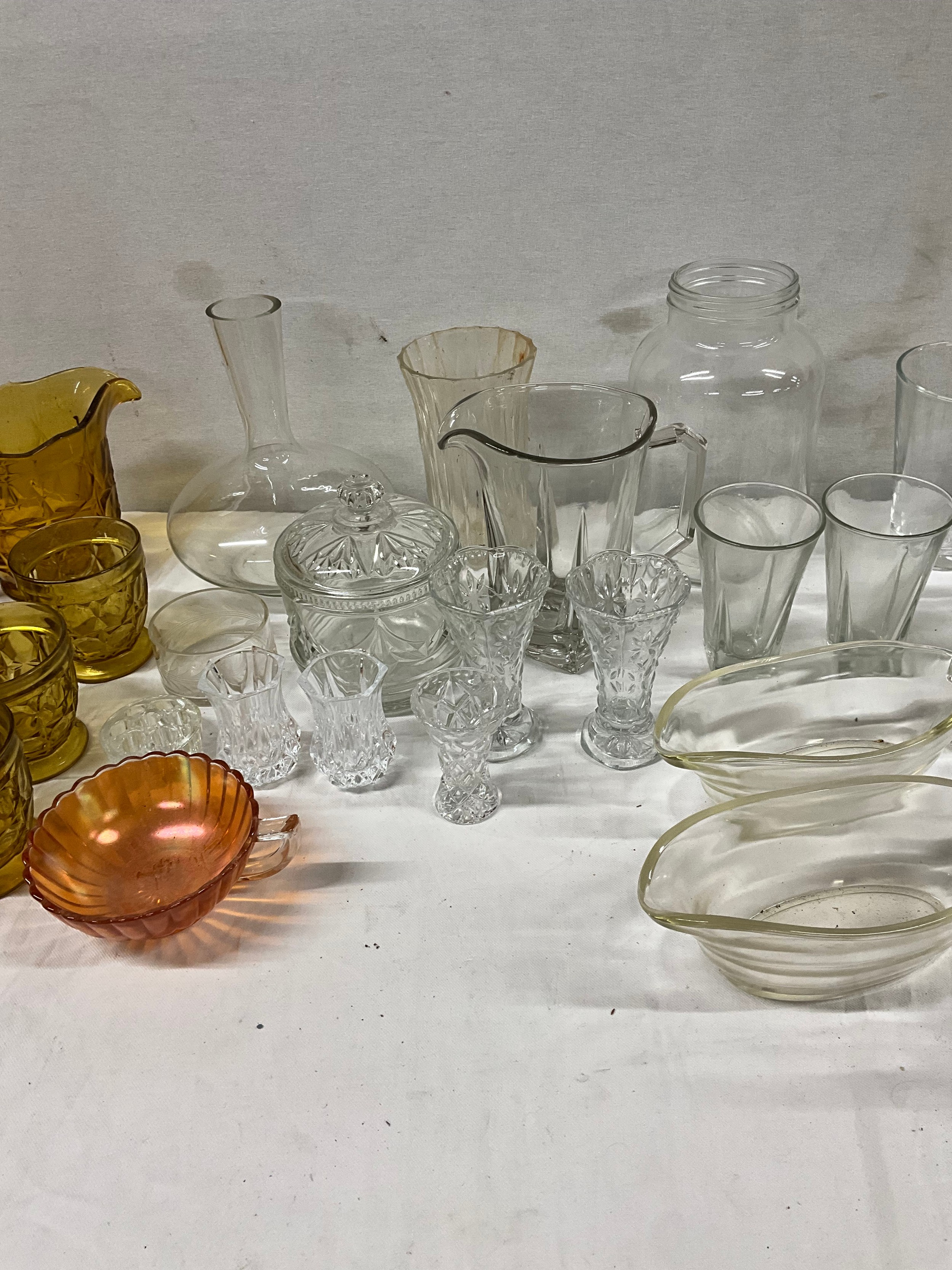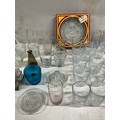 THREE BOXES OF GLASSWARE TO INCLUDE AN AMBER GLASS LEMONADE SET