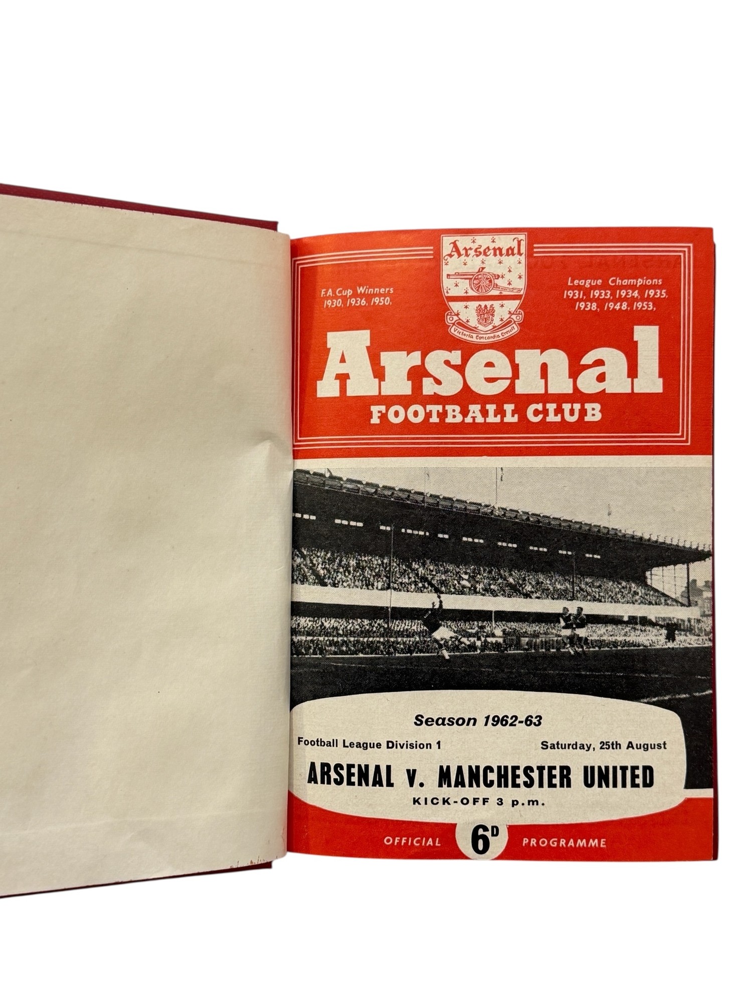 1962/63 ARSENAL BOUND VOLUME, FILLED WITH HOME PROGRAMMES, LEAGUE/CUP, NO RESERVES NOTED, WITH COVERS.