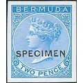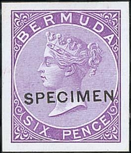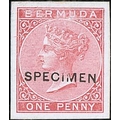 1d, 2d, 6d and 1/- Coloured Die Proofs, close to the issued colours, on white glazed card each overprinted "SPECIMEN" type D9, each 22x25mm. A unique proof set, believed to have been produced by De La Rue for their exhibit at the 1873 South Kensington Exhibition. Ex Ludington (sold for £6,900 in 1999, the 6d illustrated in his handbook) and Vestey. (4). Photo included on Back Cover.