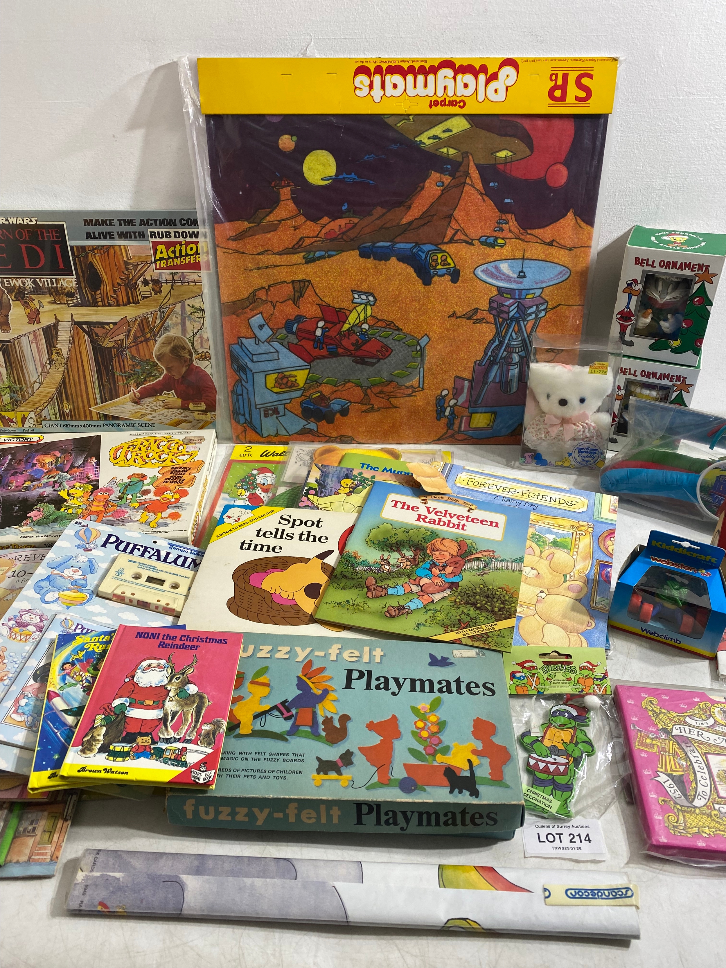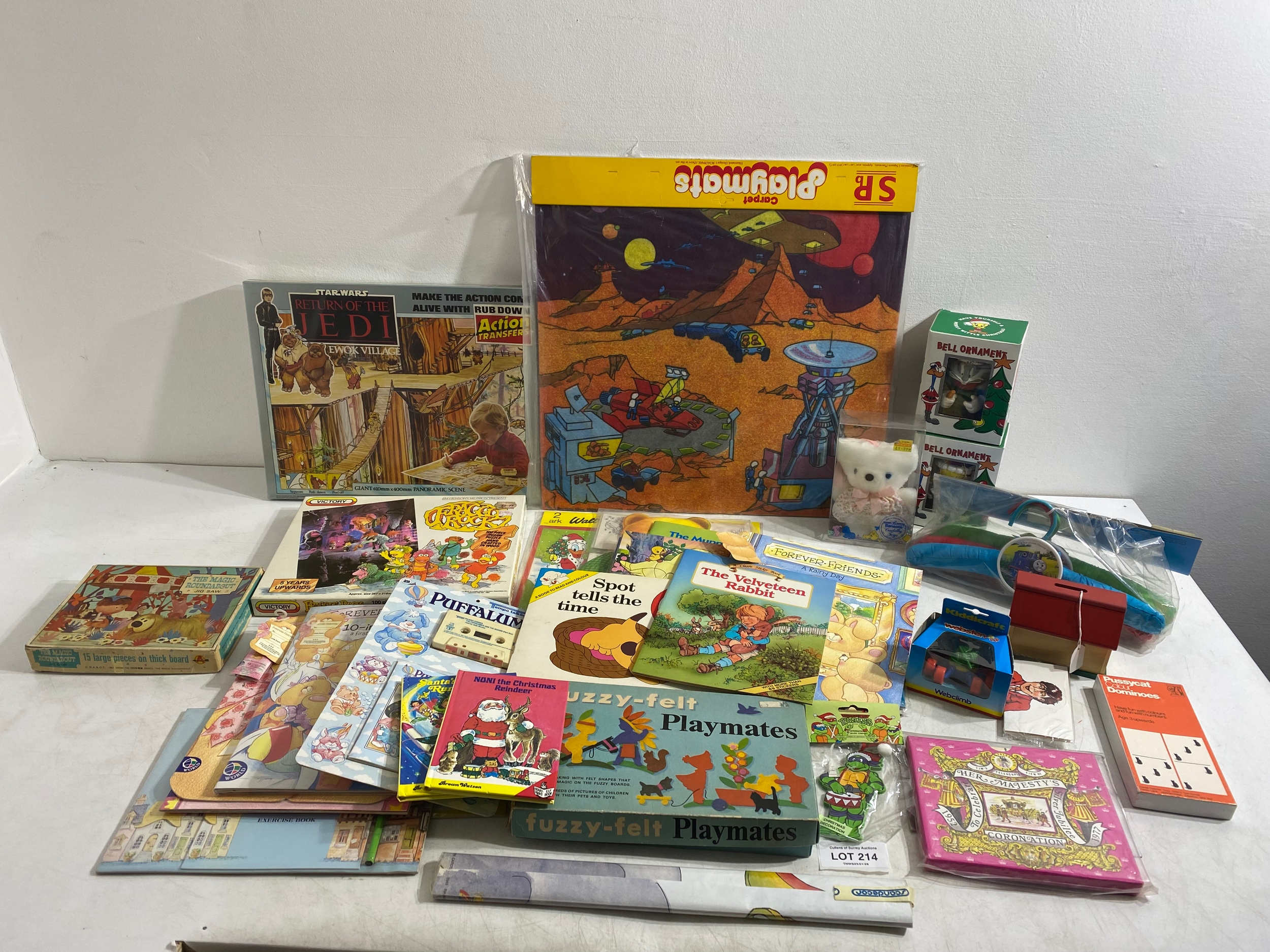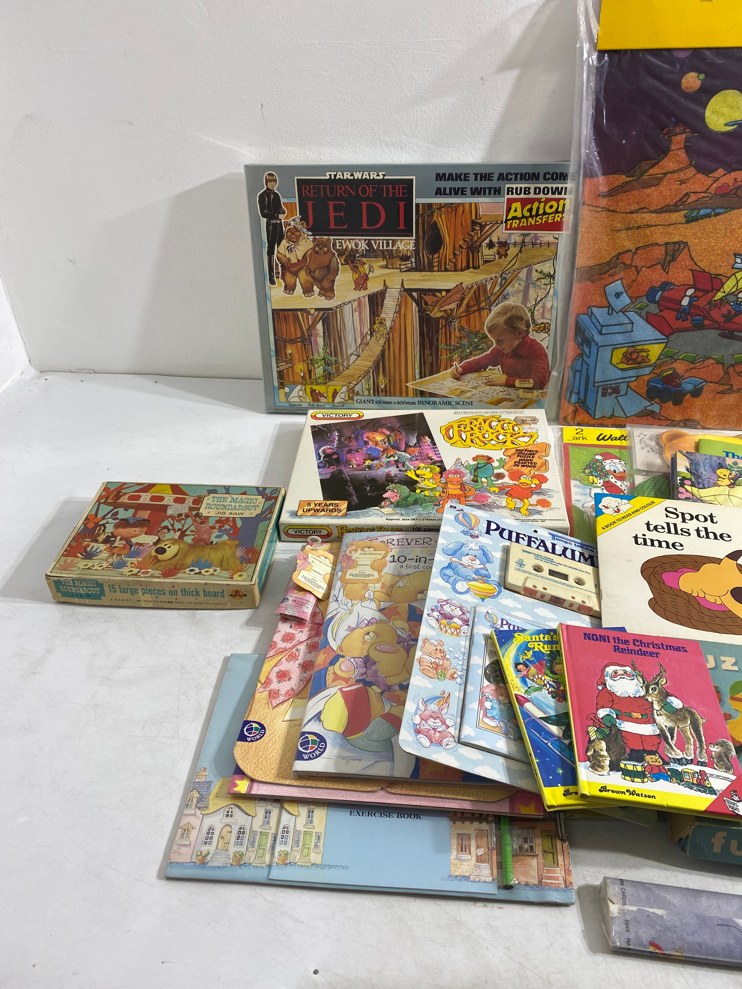 Large collection of Various collectables including Childrens books/Activity books, Carpet play mats, Star Wars Return of the Jedi Action transfers Ewok Village, Victory Fraggle Rock Puzzle