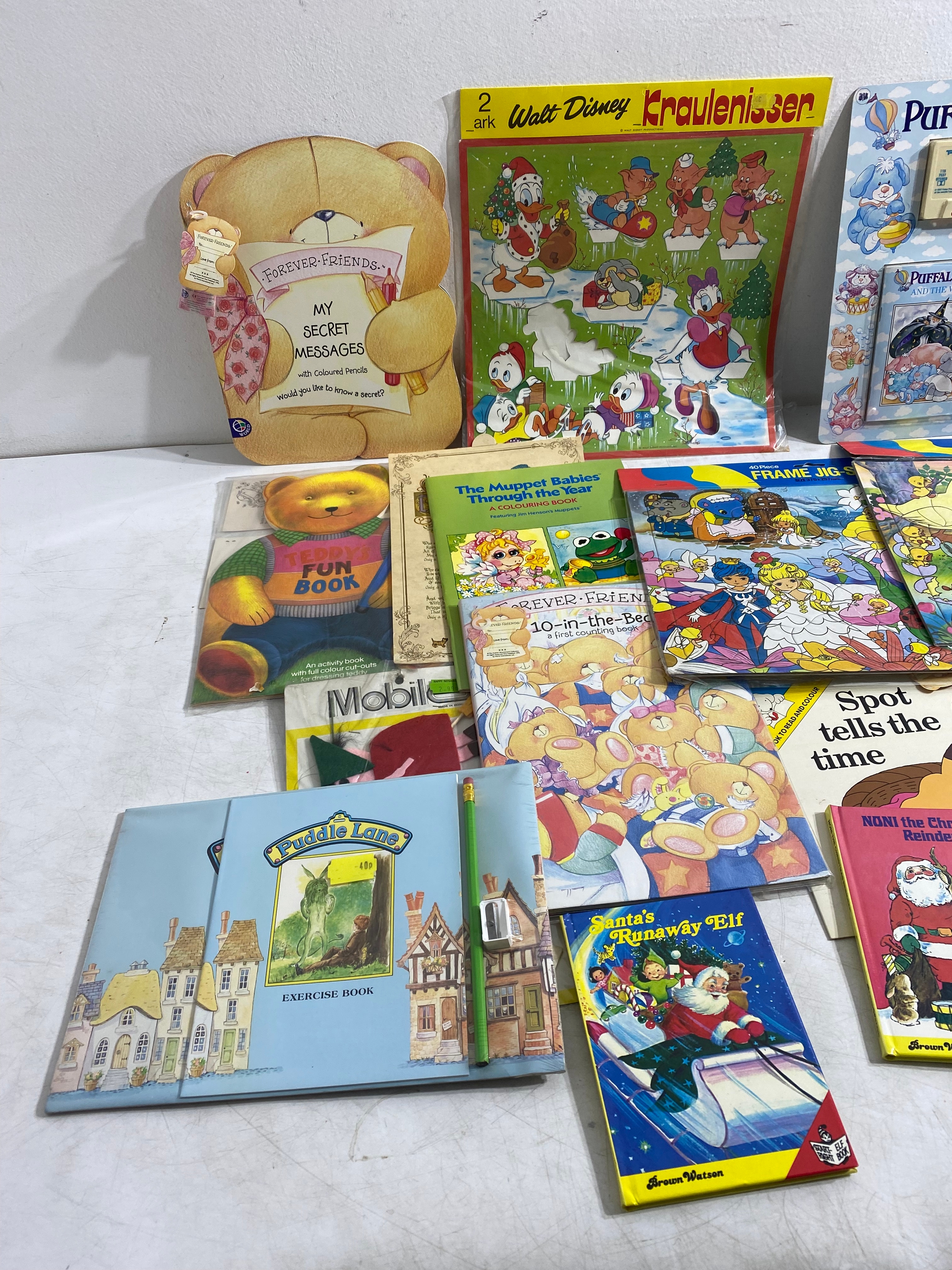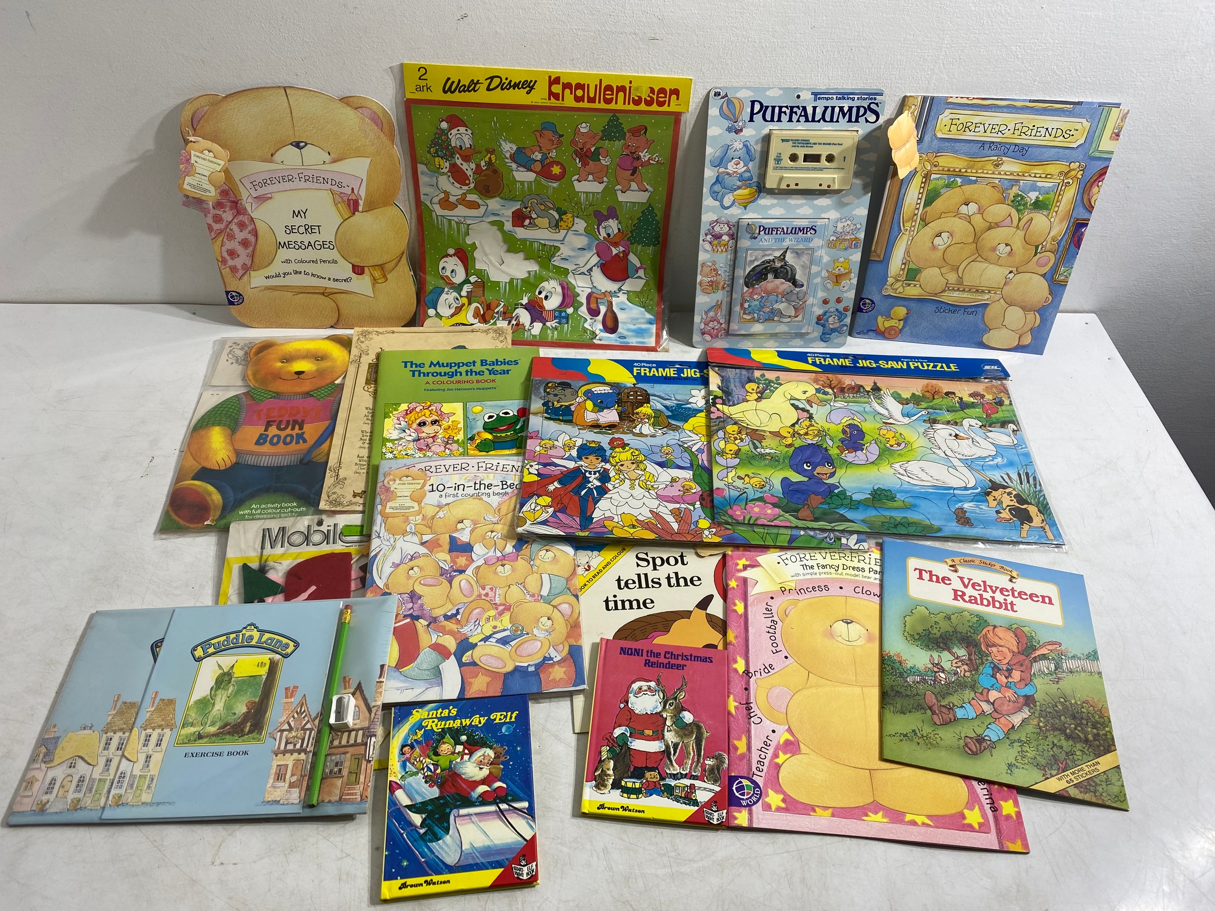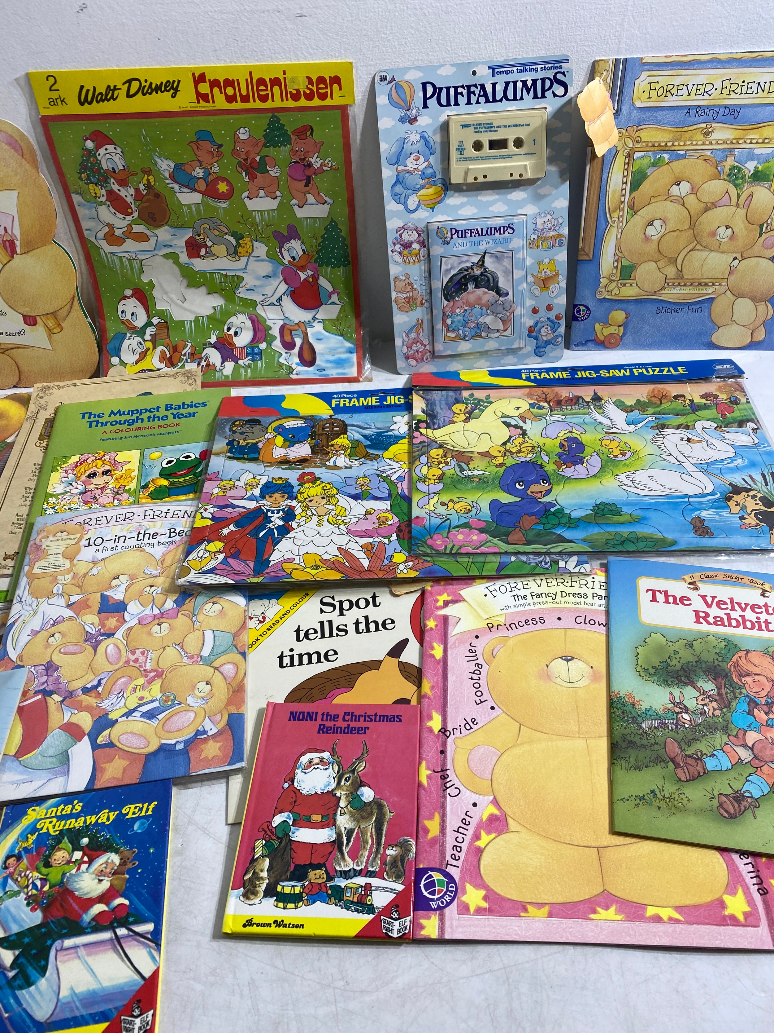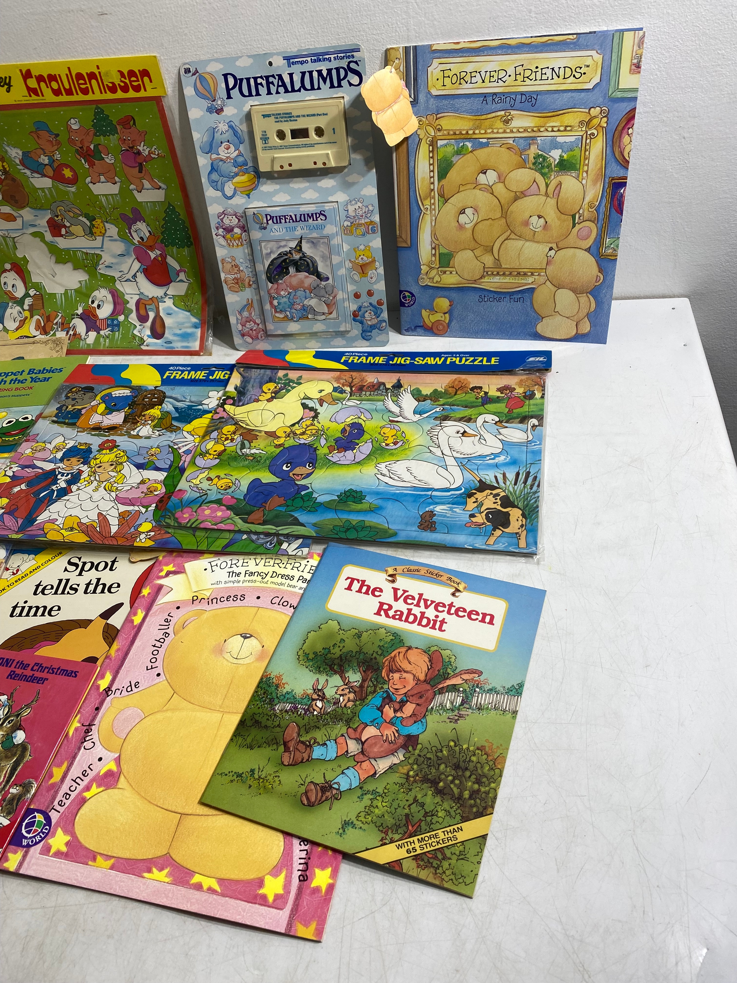 Large collection of Various collectables including Childrens books/Activity books, Carpet play mats, Star Wars Return of the Jedi Action transfers Ewok Village, Victory Fraggle Rock Puzzle