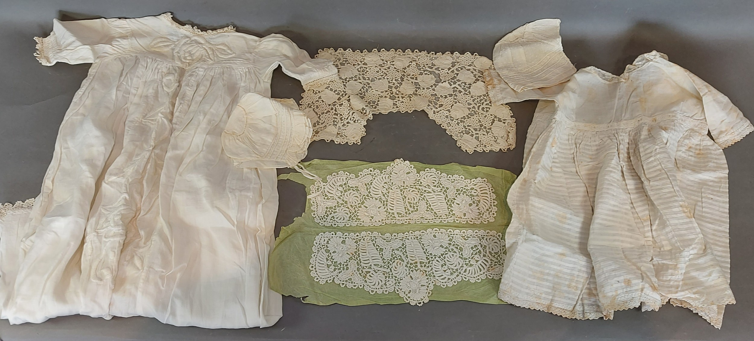 A lacework Christening Gown together with other lacework