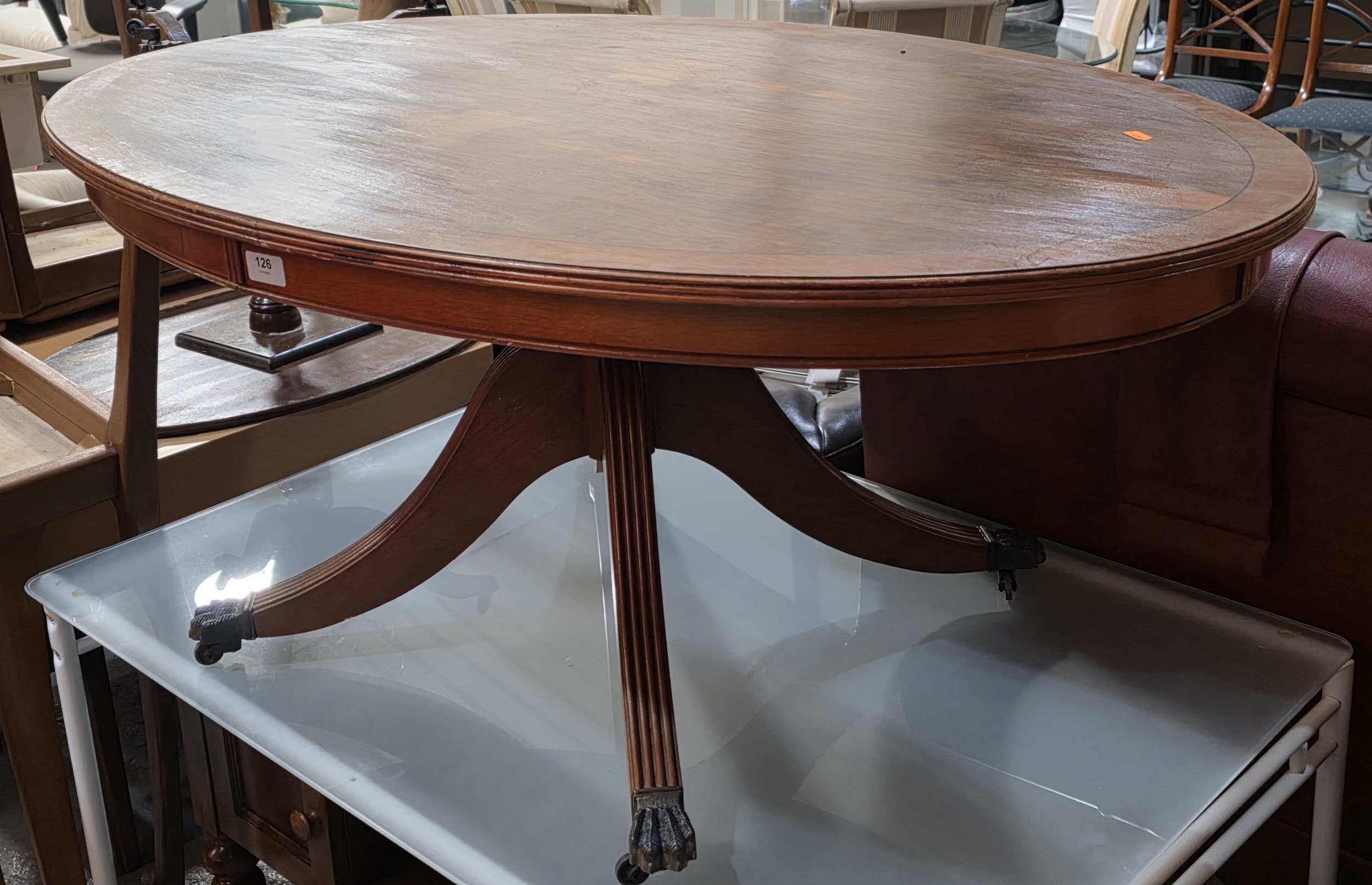 REGENCY STYLE YEW TREE COFFEE TABLE ON CASTORS
