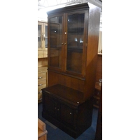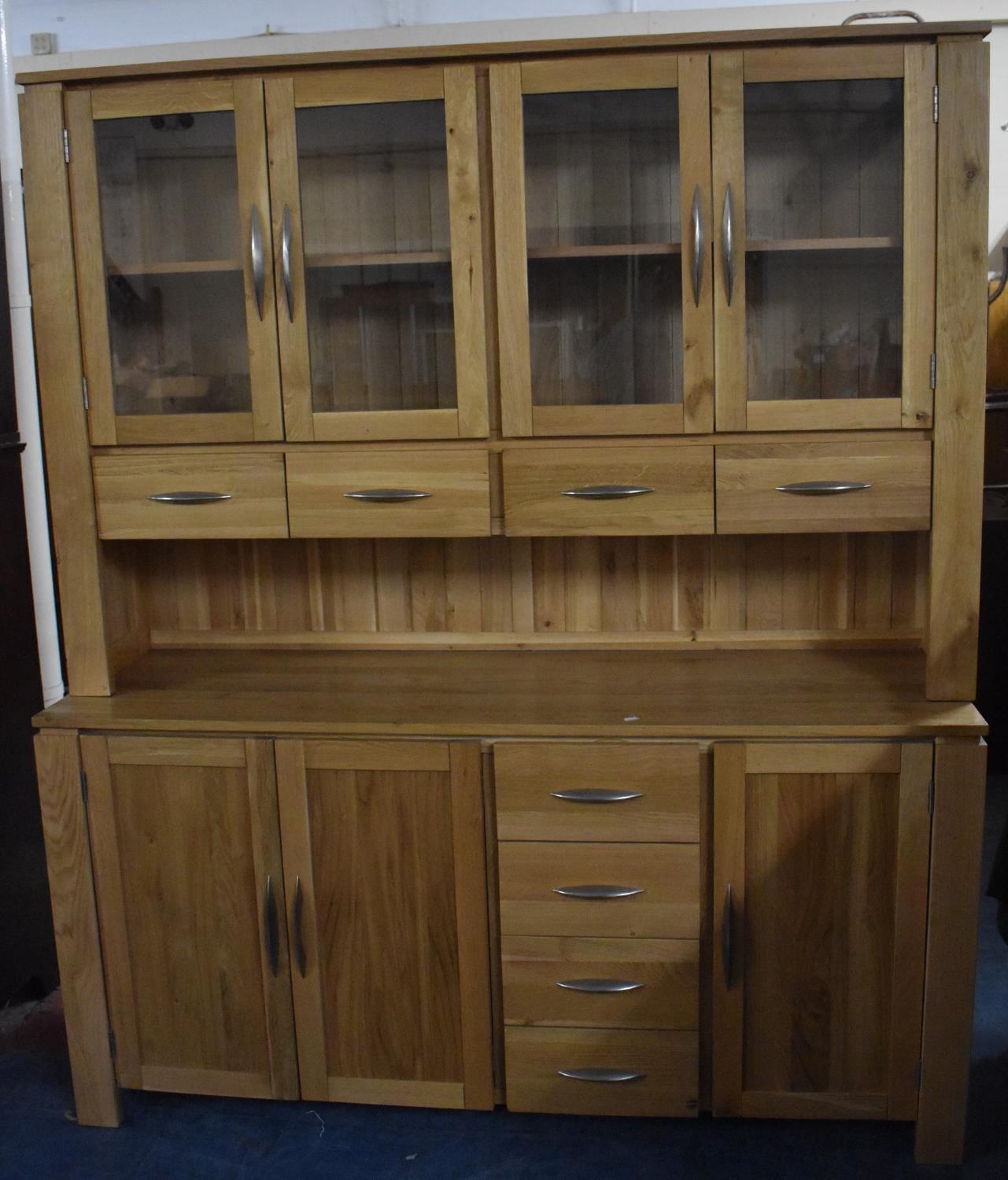 A Modern Kitchen Pantry Cupboard with Top Glazed Shelved Unit and Bottom Cupboard Base, 160cms Wide