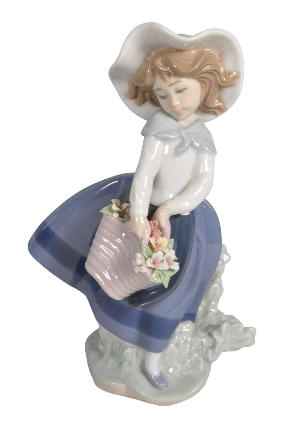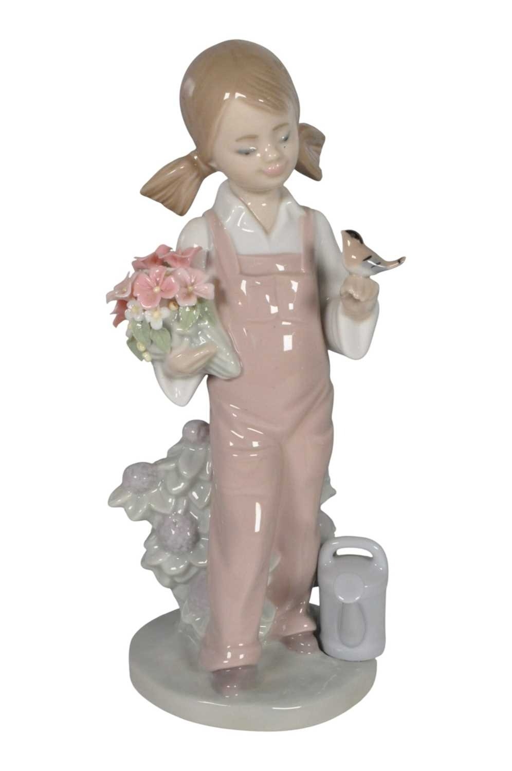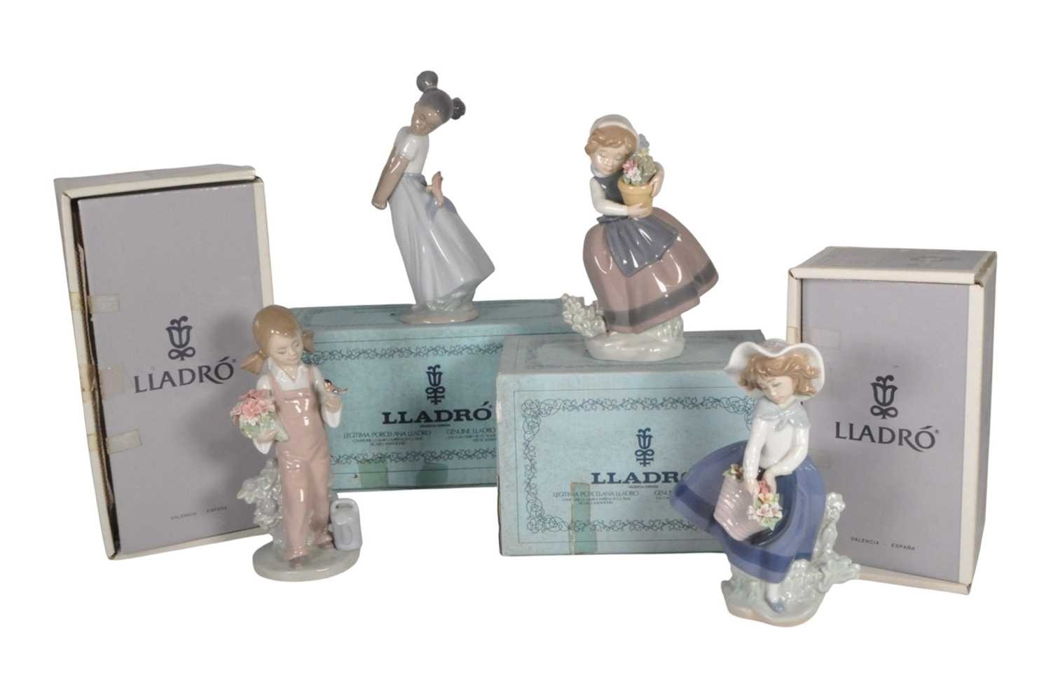 Lladro - Collection of four late 20th / 21st century porcelain figures. Comprised of no. 5222 'Pretty Pickings', no. 5223 'Spring is Here', no. 5217 'Spring Girl', and no. 8131 'Pretty Bird'. All housed within their original / associated boxes, with maker's marks to the base. Largest piece measuring approx. 19.5cm tall.
