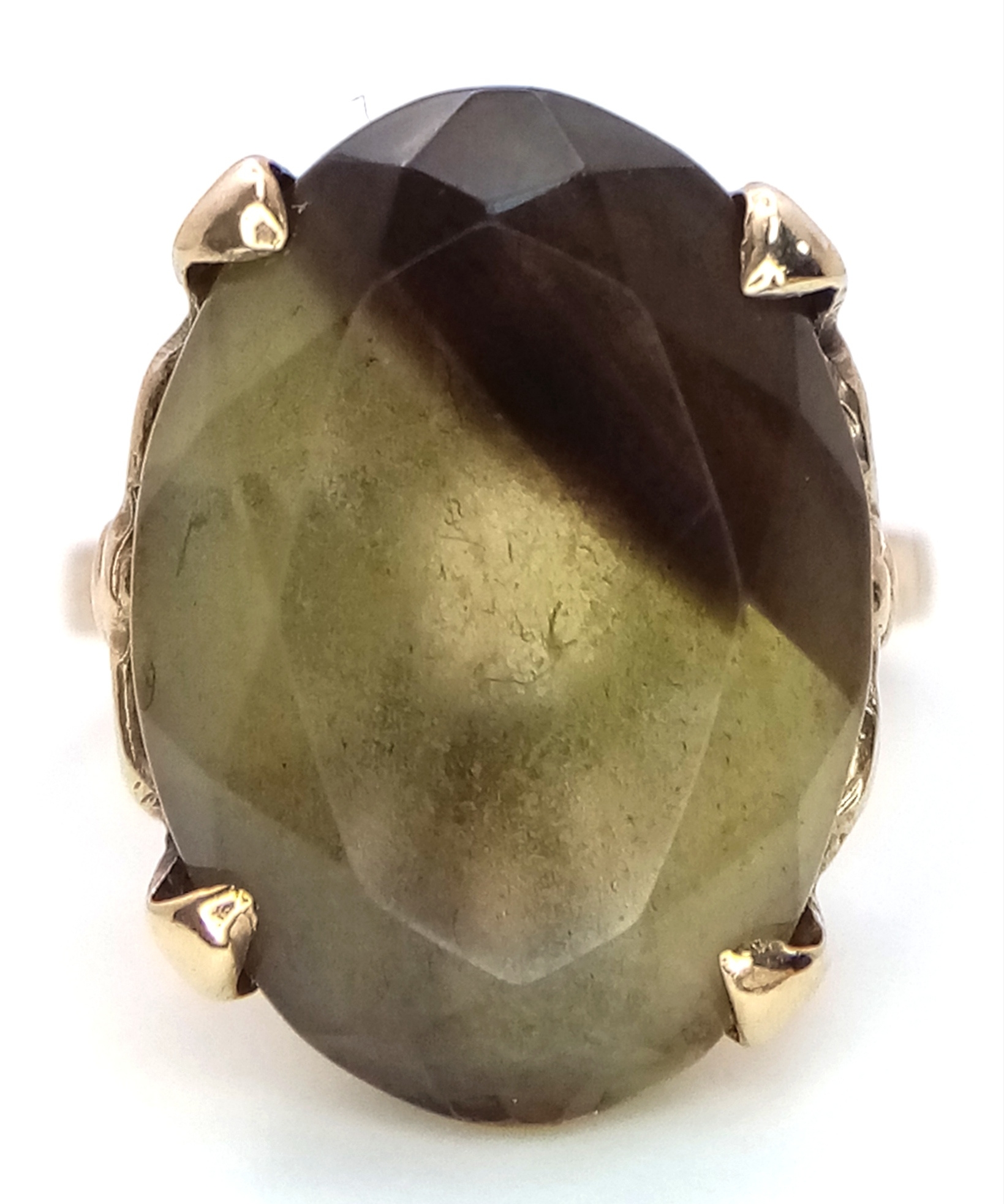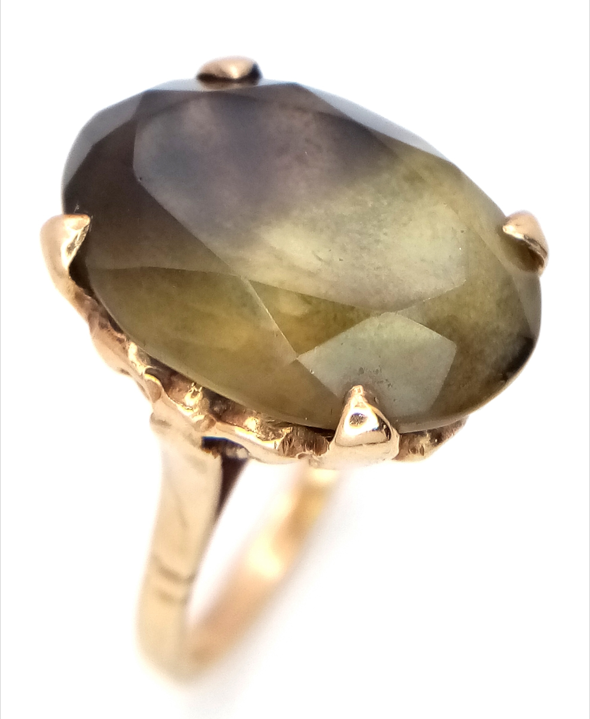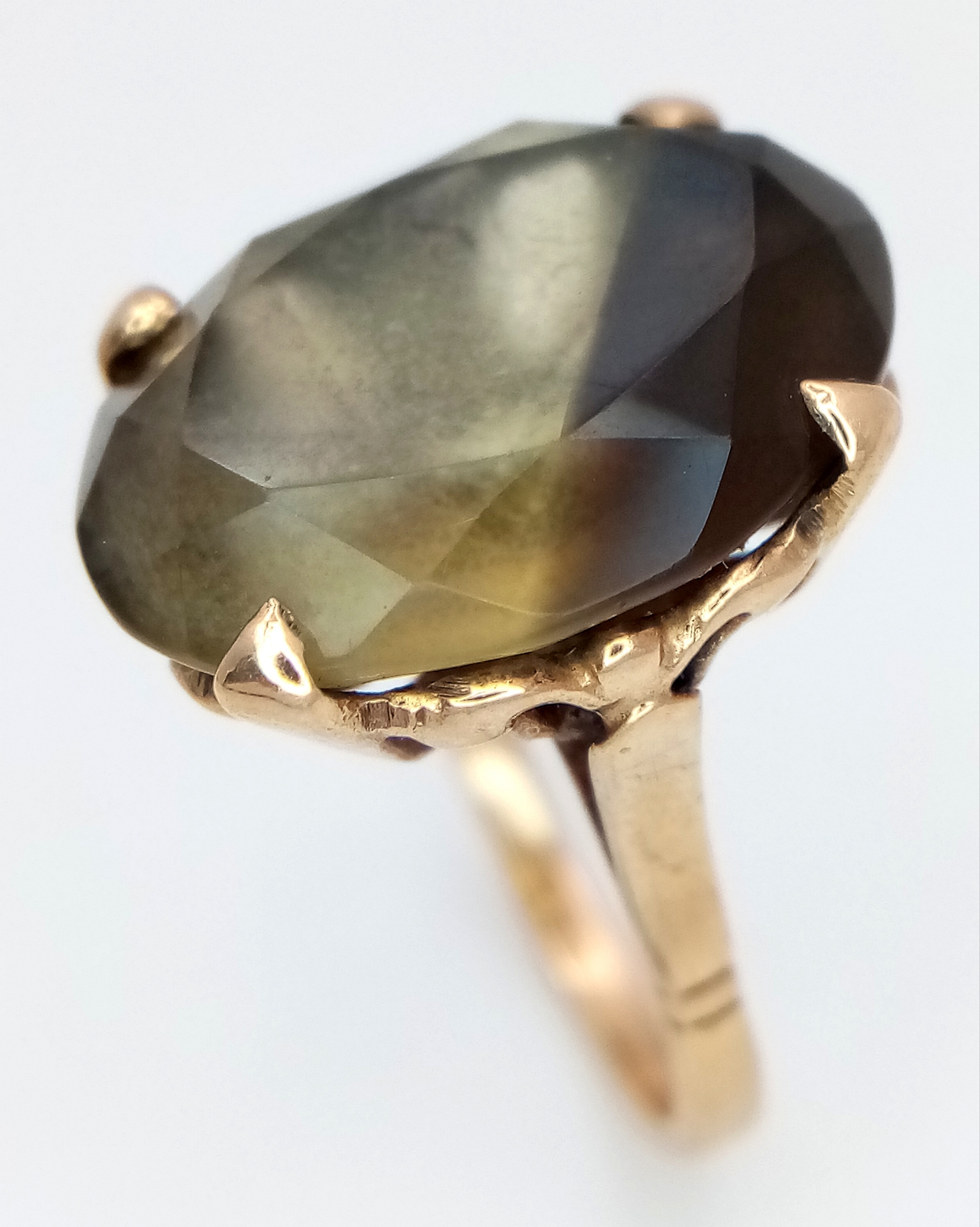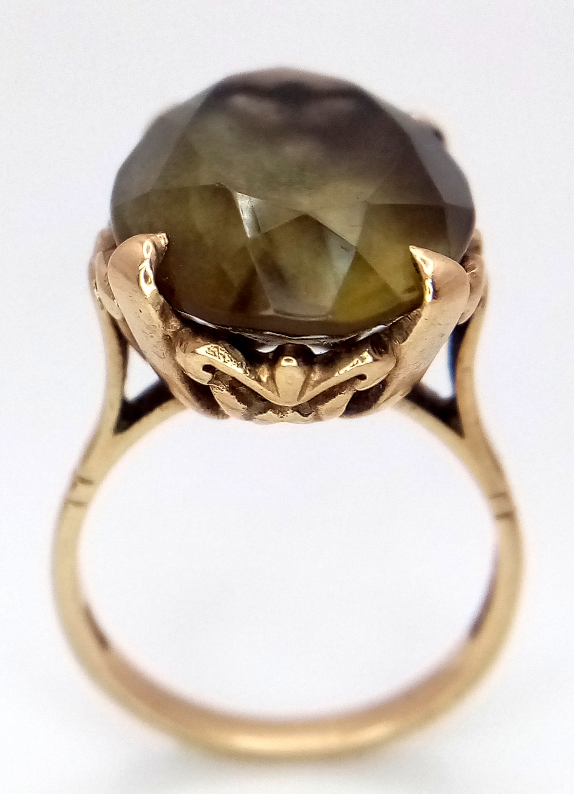 A 9K Yellow Gold Smoky Quartz Ring. 5.75g.