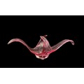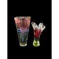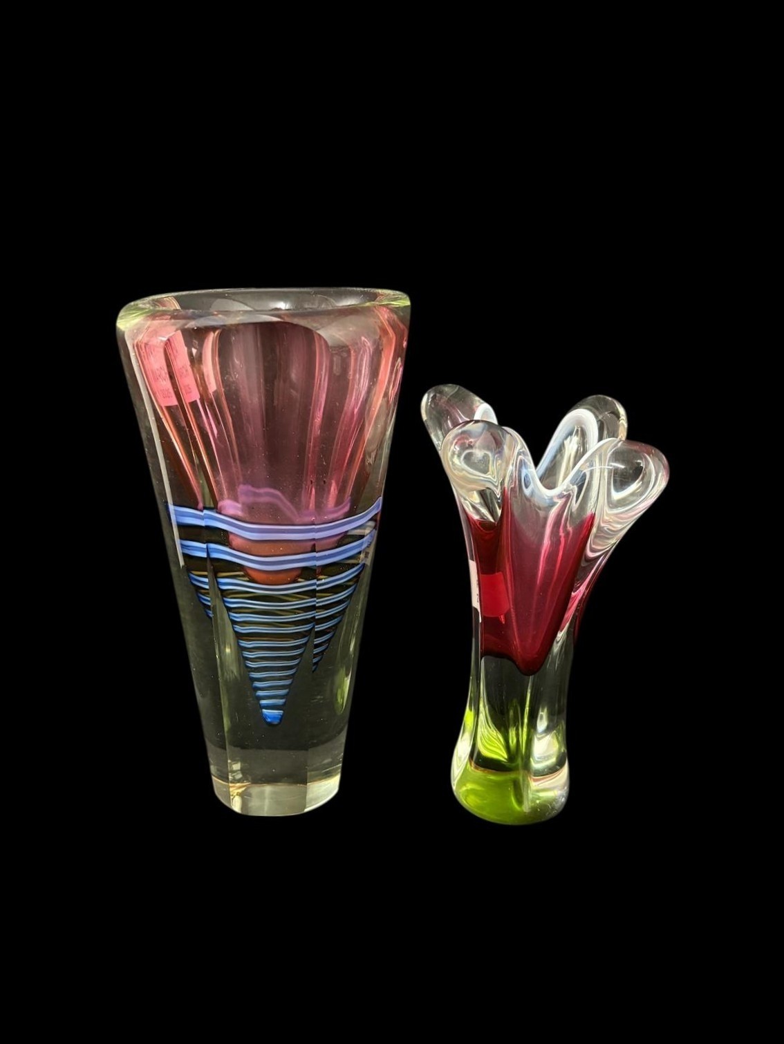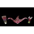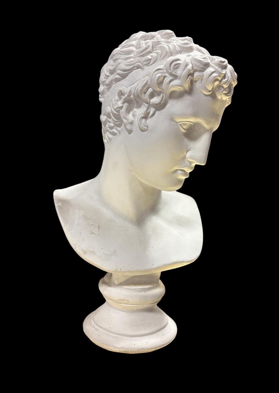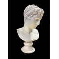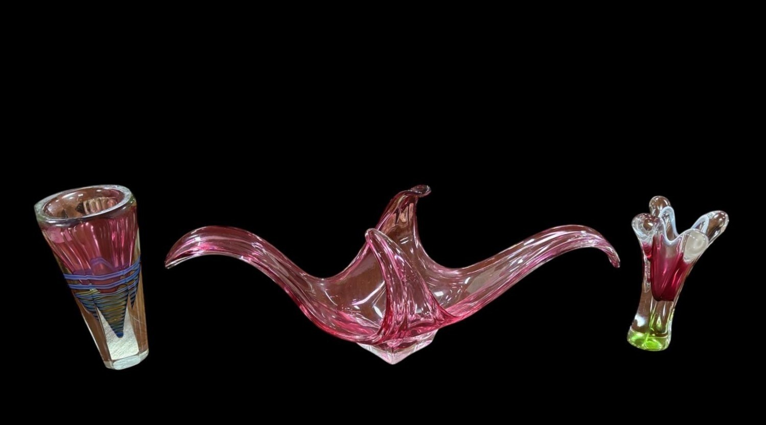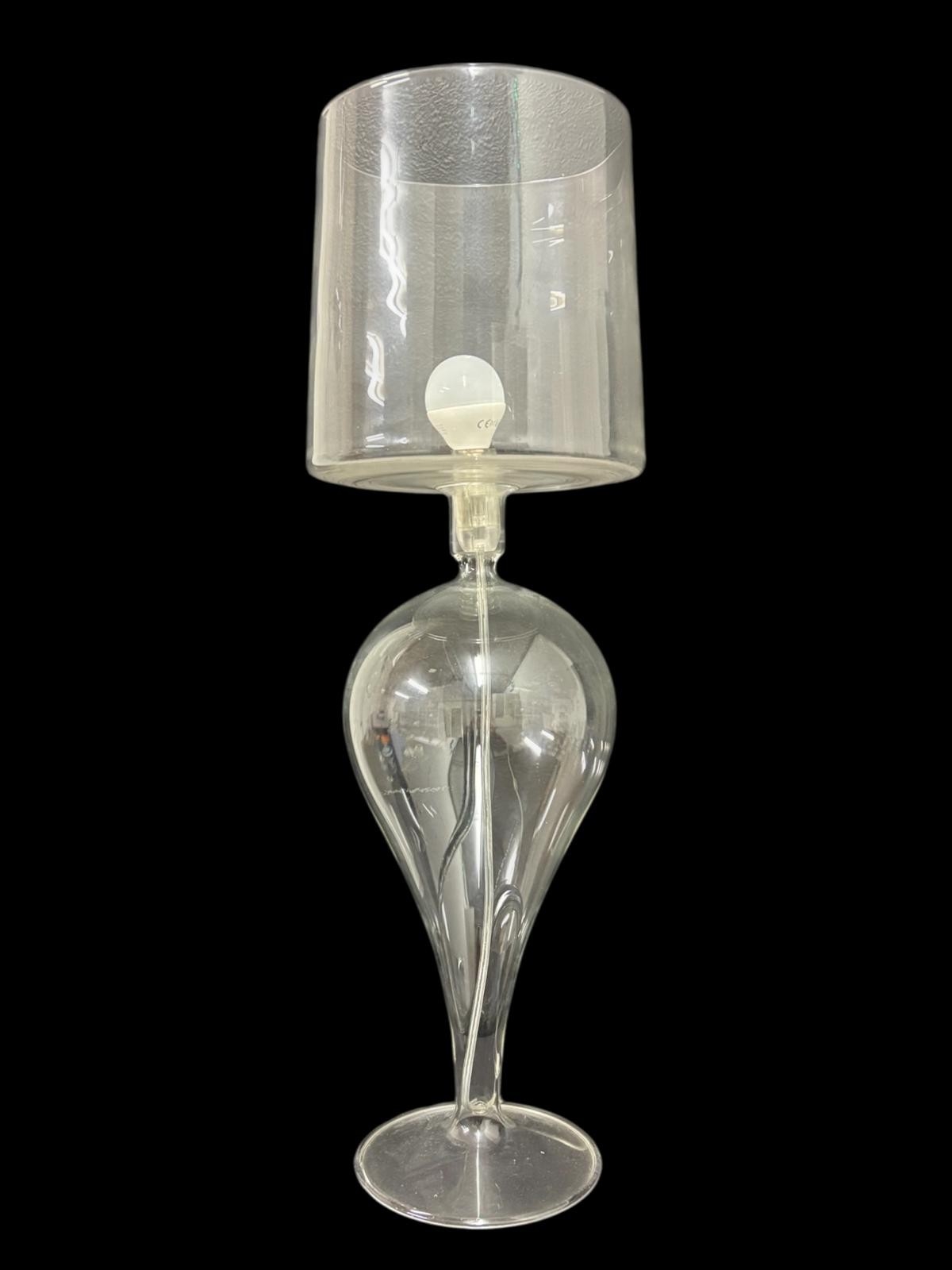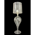 A CLEAR GLASS TABLE LAMP the cylindrical shade above a baluster column 60cm (h), A HEAD AND SHOULDER PLASTER BUST modelled as a classical Roman figure 29cm (h), THREE PIECES OF ART GLASS comprising a centre bowl of irregular outline together with two art glass vases