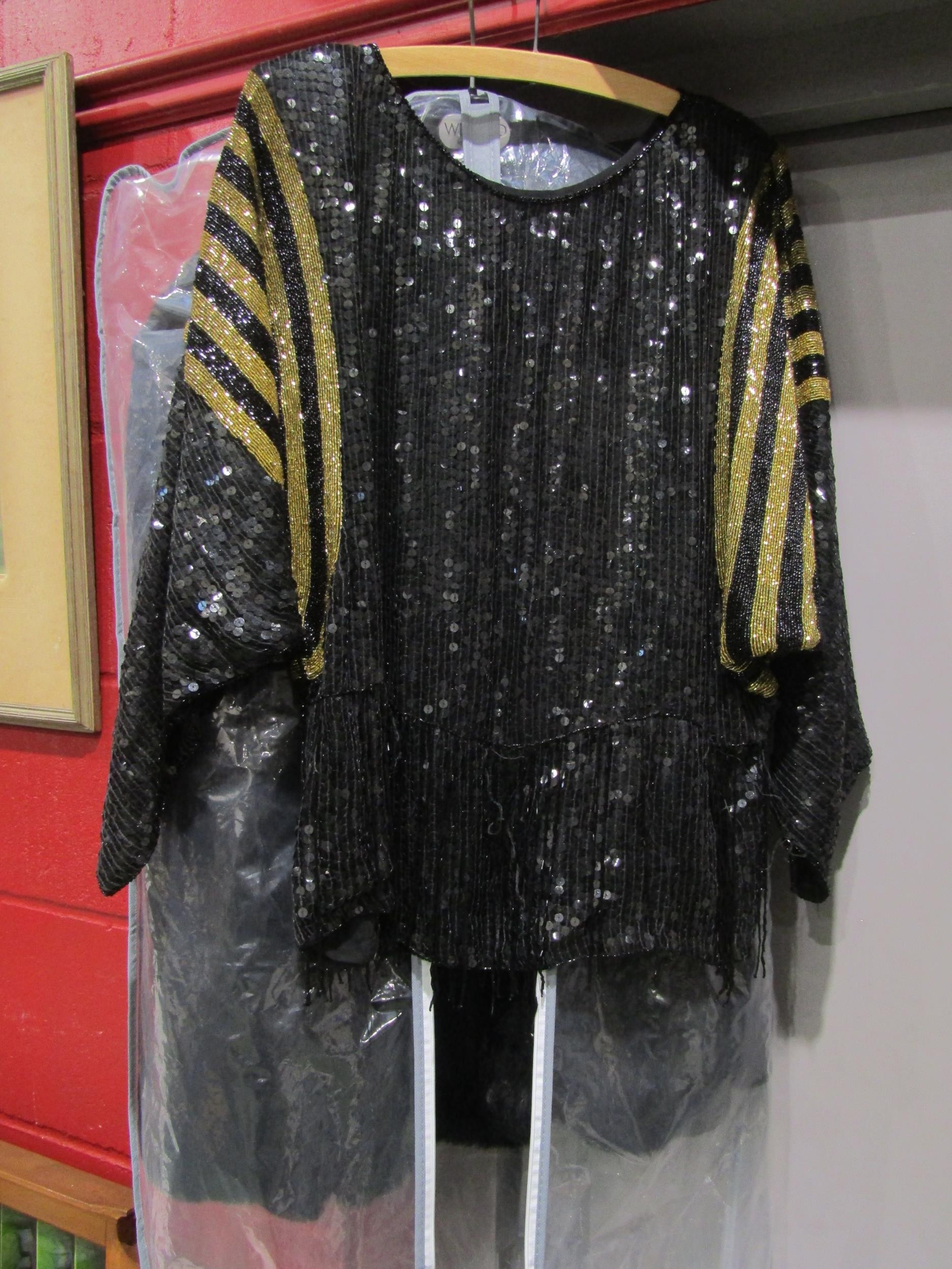 A black fur jacket and a late 1970's/early 80's sequin top (2)
