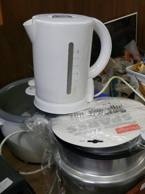 A SLOW COOKER, PRESTIGE PRESSURE COOKER AND A KETTLE.