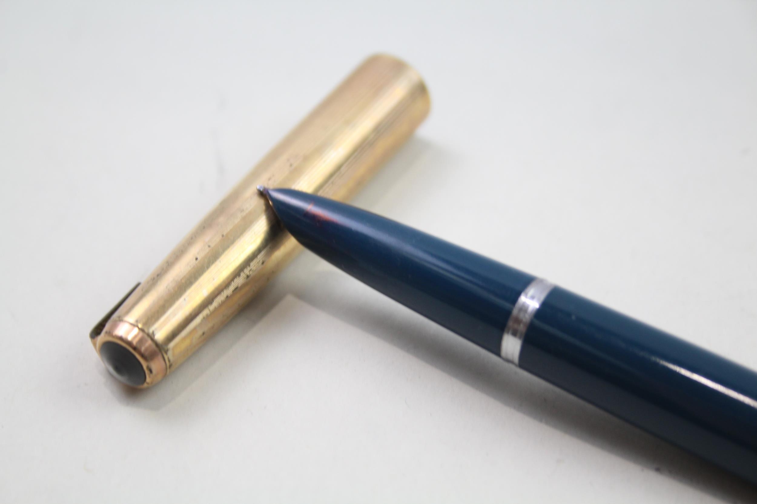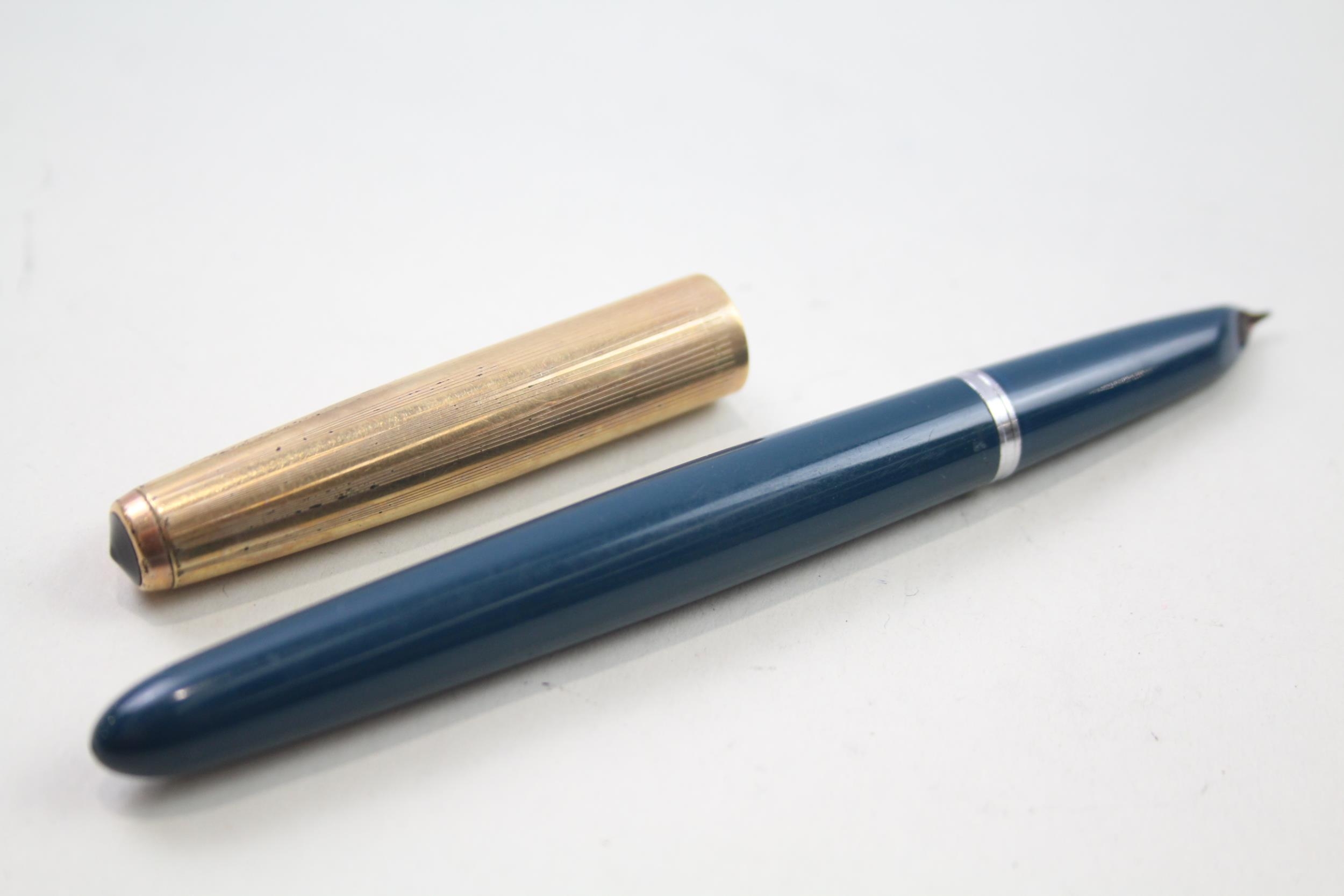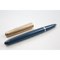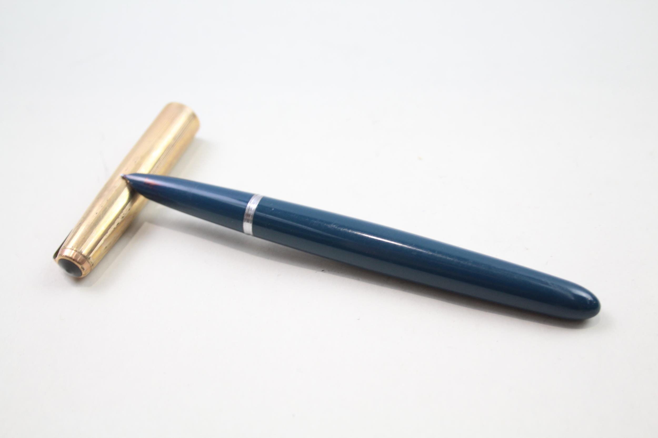 Vintage PARKER 51 Teal Fountain Pen w/ 14ct Gold Nib, Gold Plate Cap WRITING