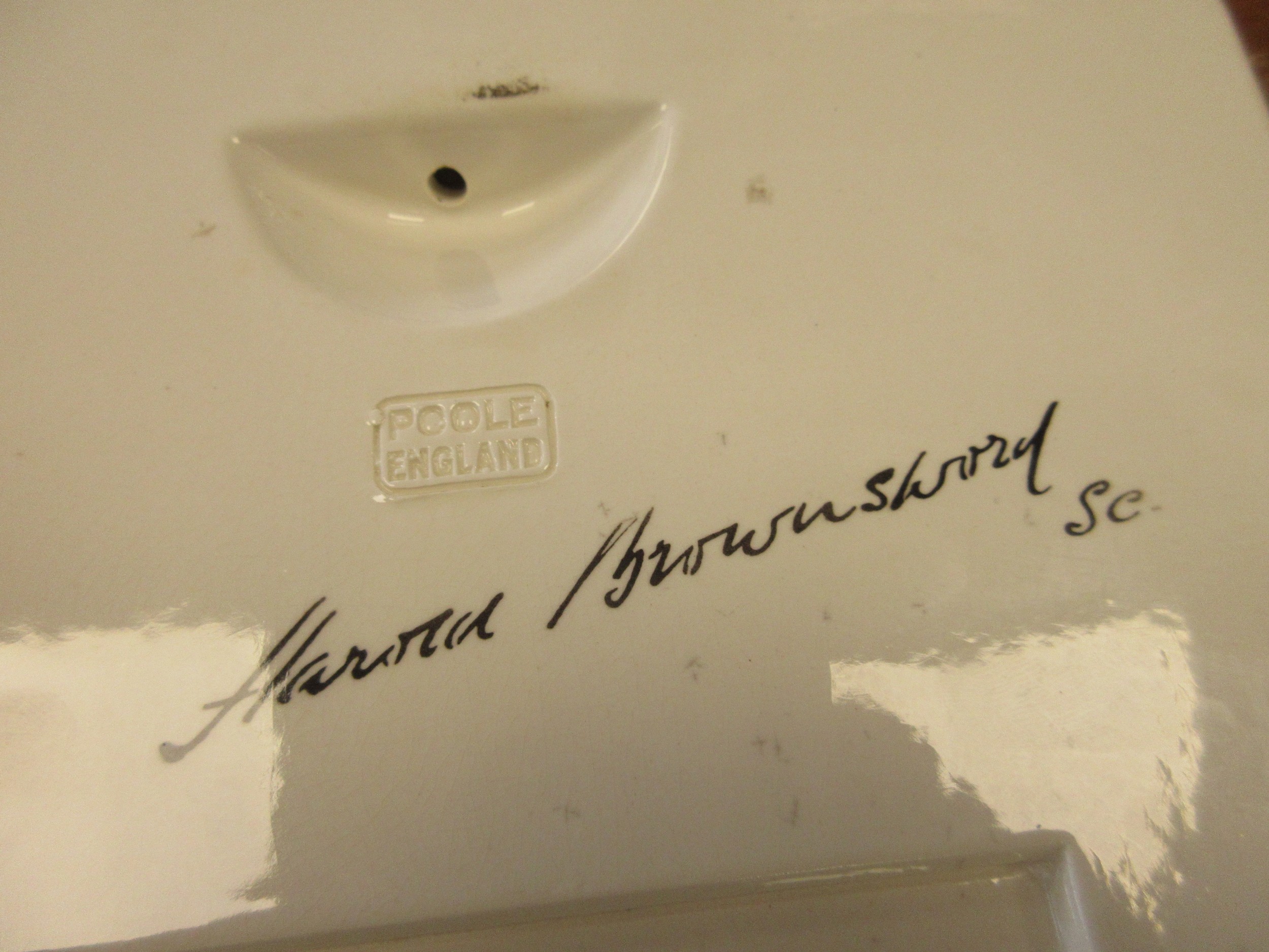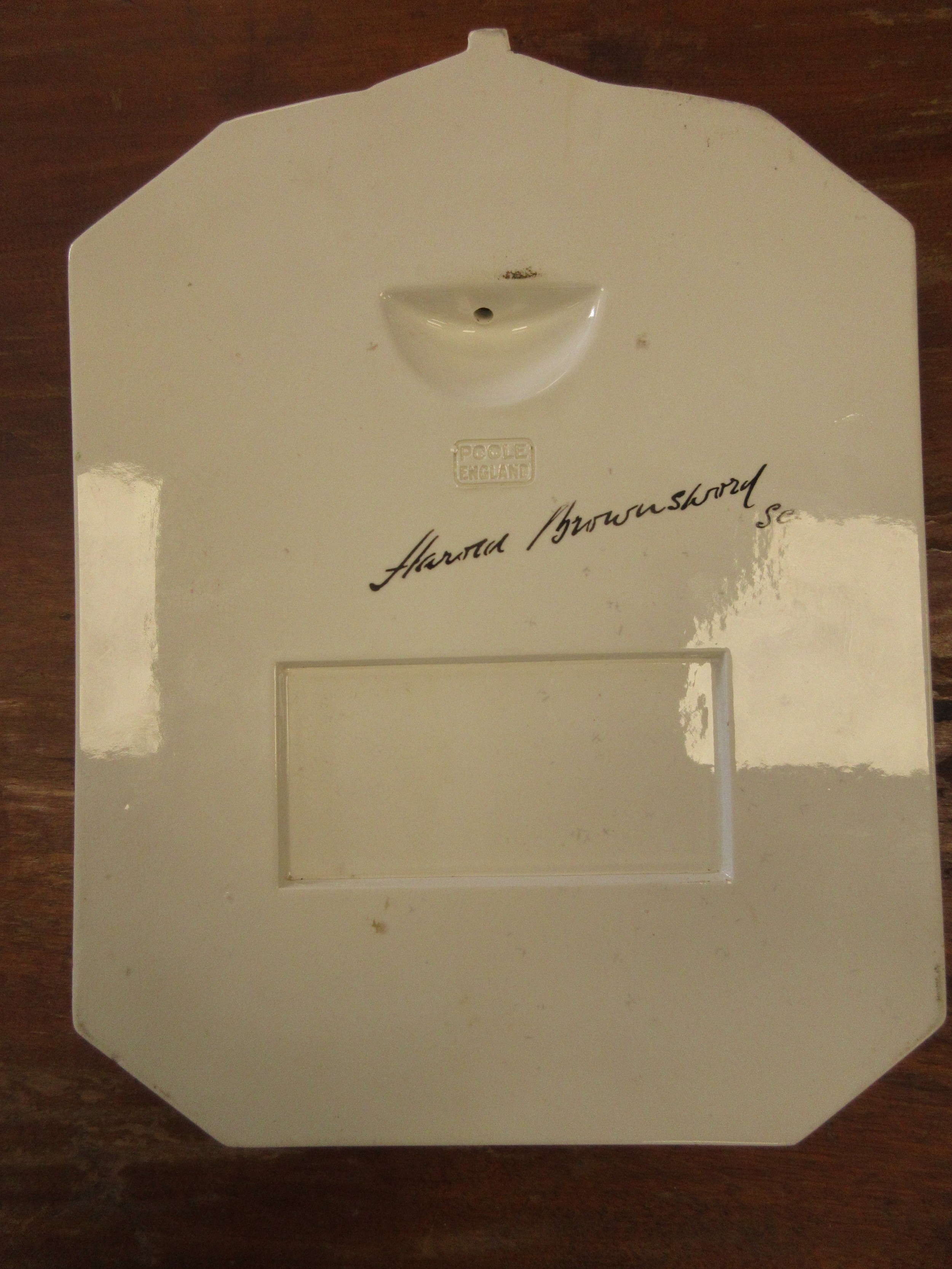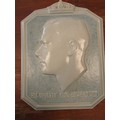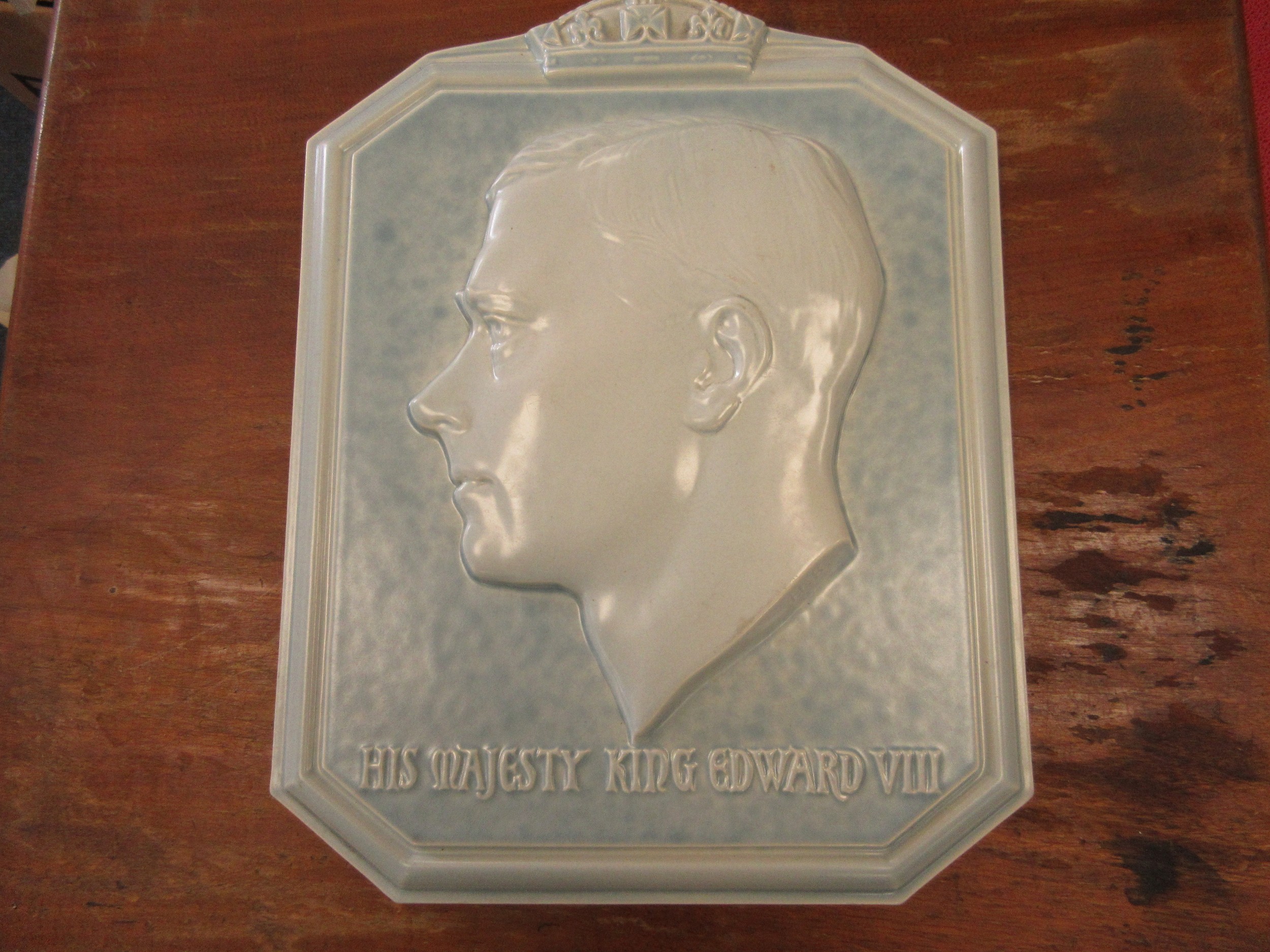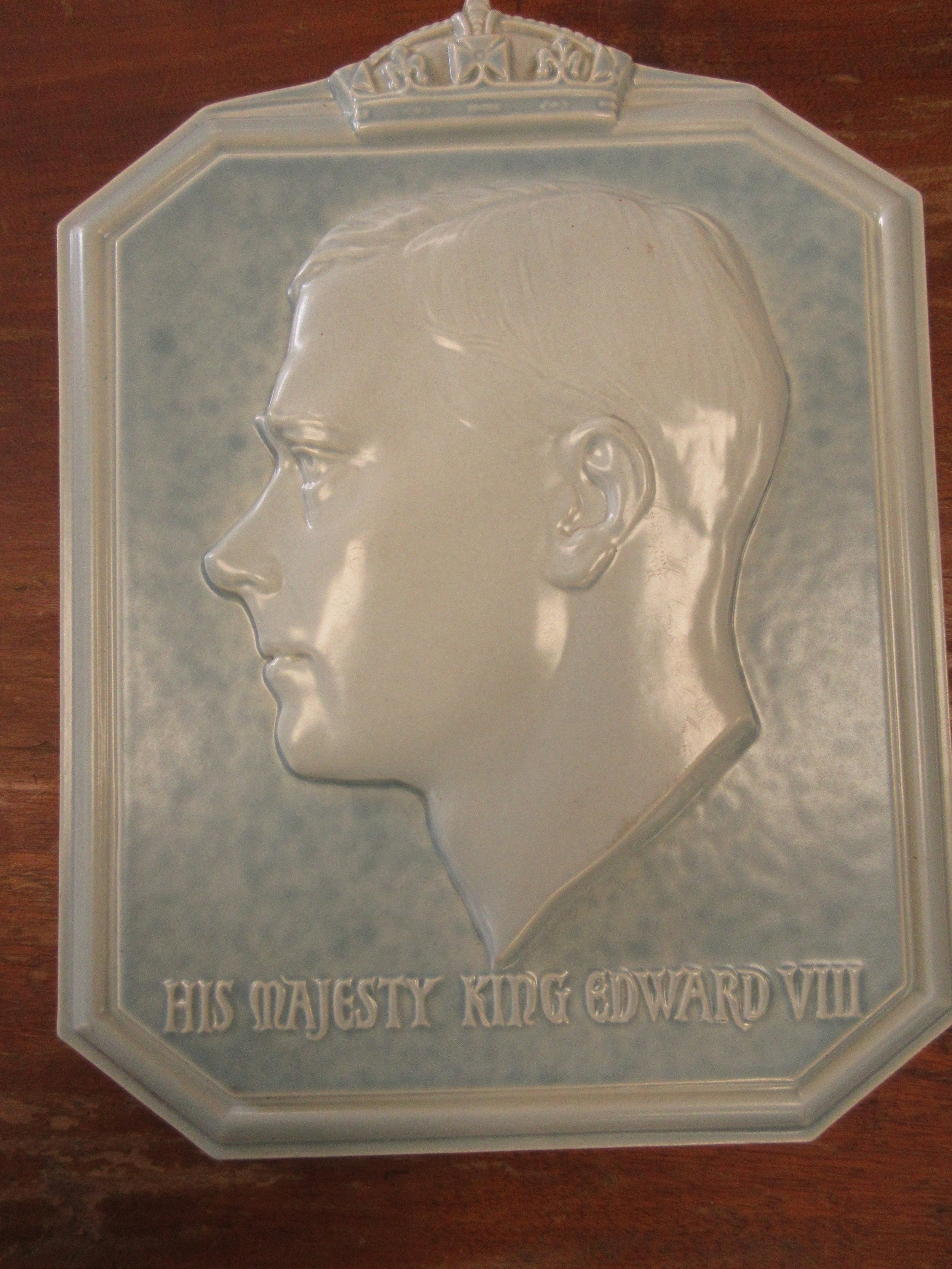 A Poole pottery wall plaque by Harold Brownsword (signed to reverse), depicting a relief cast bust of 'His Majesty King Edward VIII', against a mottled blue ground with title beneath, signed to the rear, 28cm high.