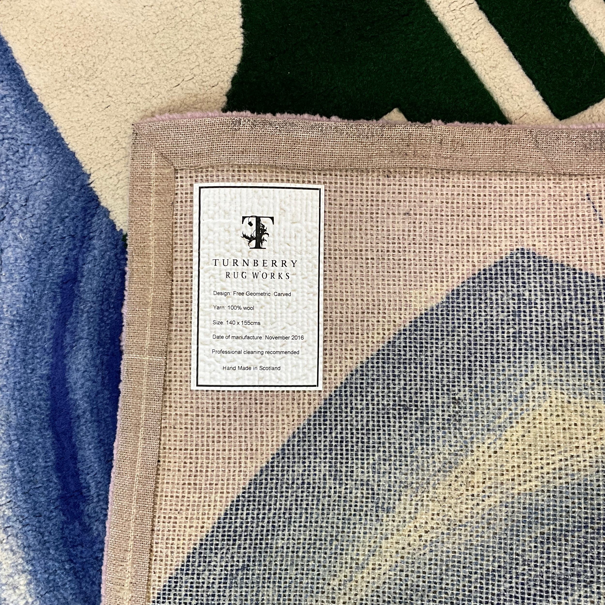 Euphrosyne Andrews, MRSS (Textile Design No.1), Glasgow School of Art, contemporary abstract design rug, 2016. Scottish, 100% wool. W140cm x L155cm. Provenance - Turnberry Rug Works Scotland (original label verso). Euphrosyne Andrews was recently awarded the Henry Moore Foundation Grant.
