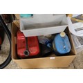 2 boxes of tools, petrol cans, etc