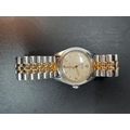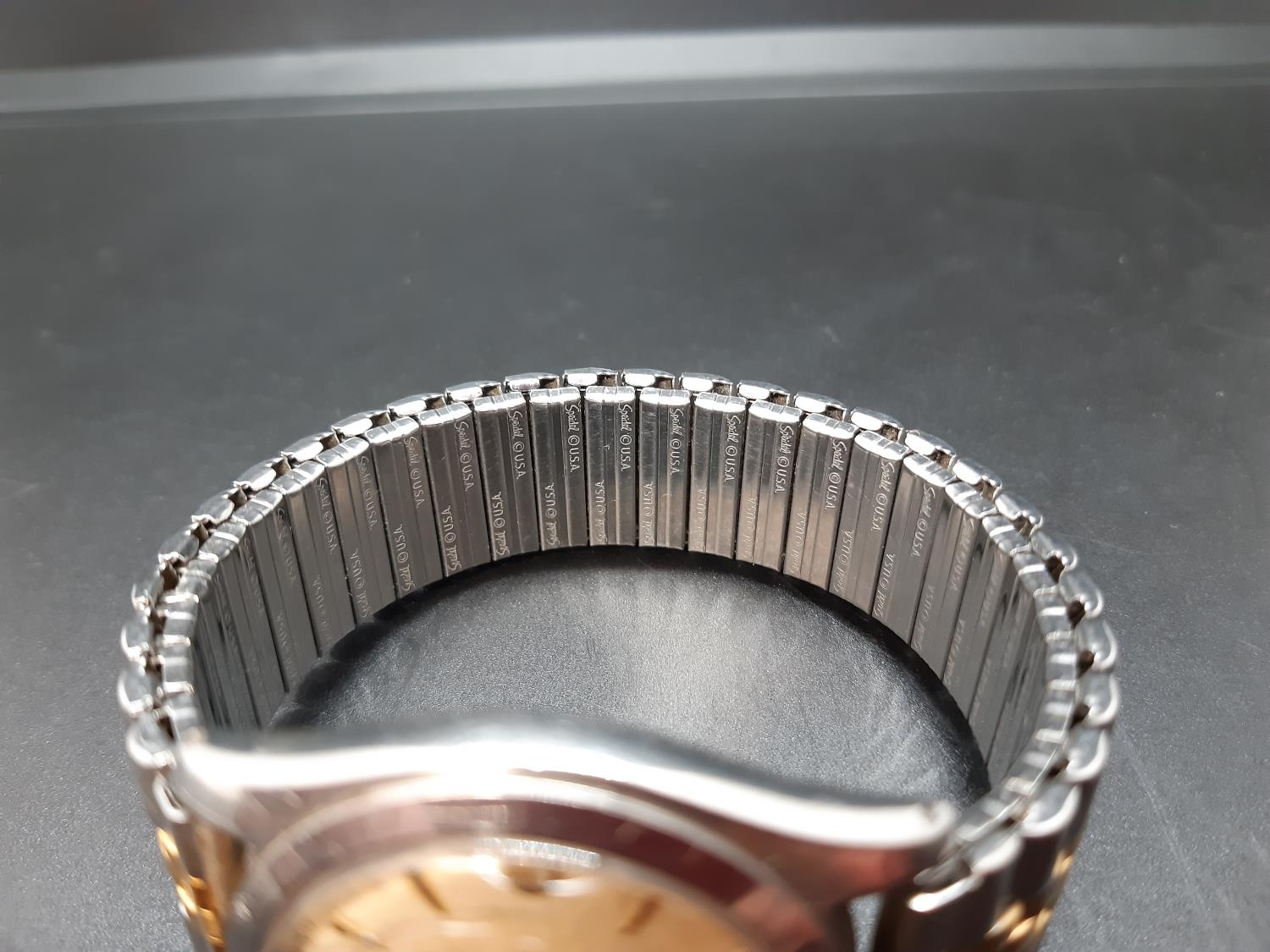 Heavy scratches to glass front and across the body of the watch, discolouration to face and incorrect strap