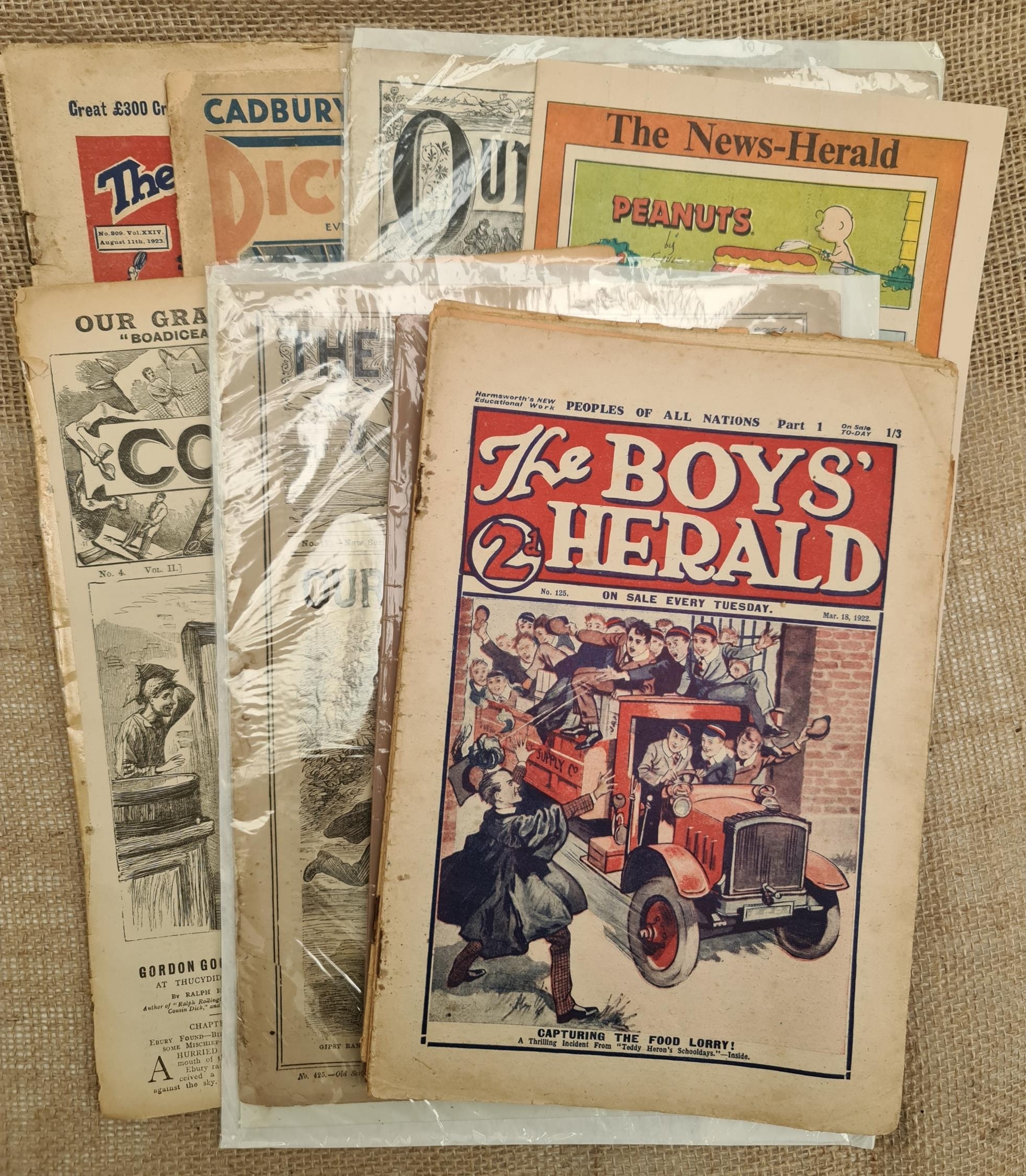 10 x 20th Century Comics or Boys Papers Includes Our Boys Paper 1881 The Boys Standard 1884 Comrades 1890's The Magnet 1930's The Boys Herald 1922 The Gem 1923 The News Herald 1993 Collectable Comics Pictorial Weekly 1932. Shipping is available. Please ask for a quote before bidding. Where possible we combine shipping costs. Remember, if you are the highest bidder above reserve on this Lot you have bought the item and are legally responsible for the item. Viewing is recommended in either person or via video link. Contact us to arrange. #F12