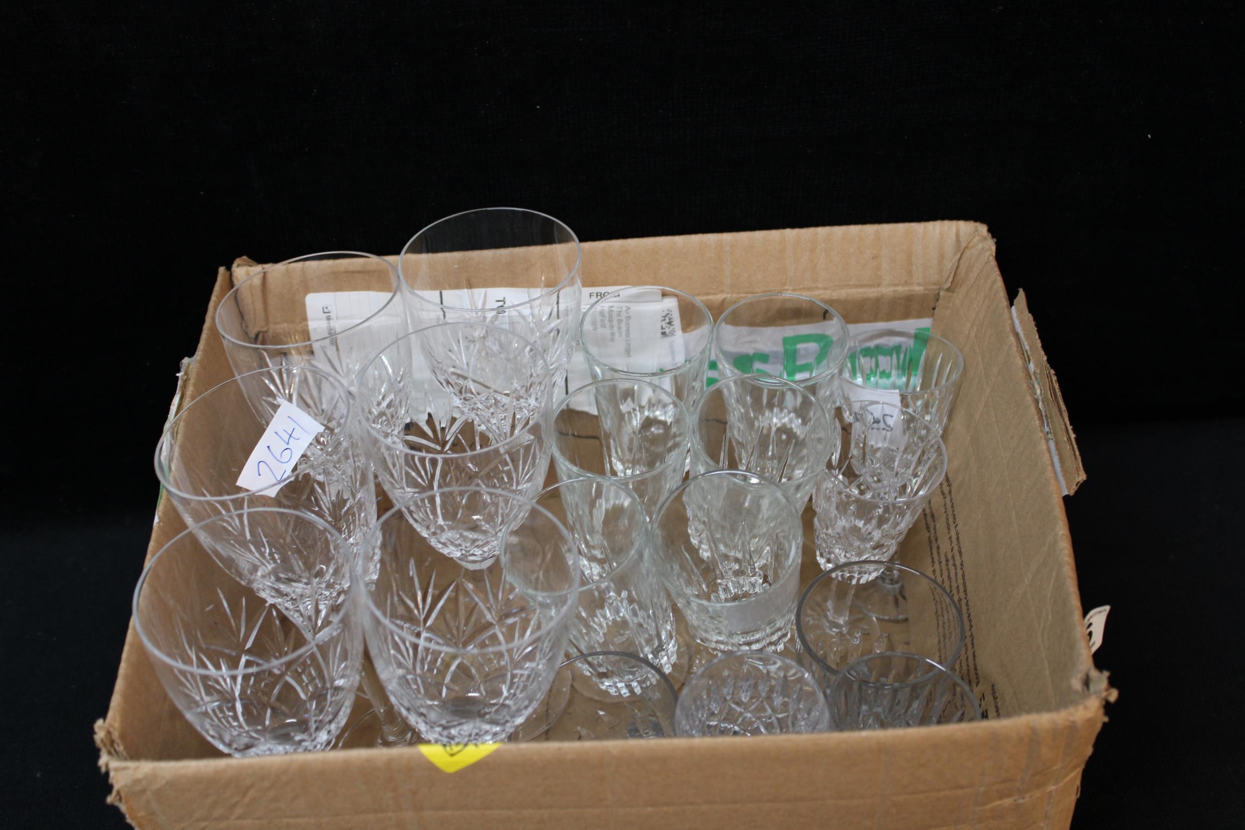 A box of cut crystal glasses