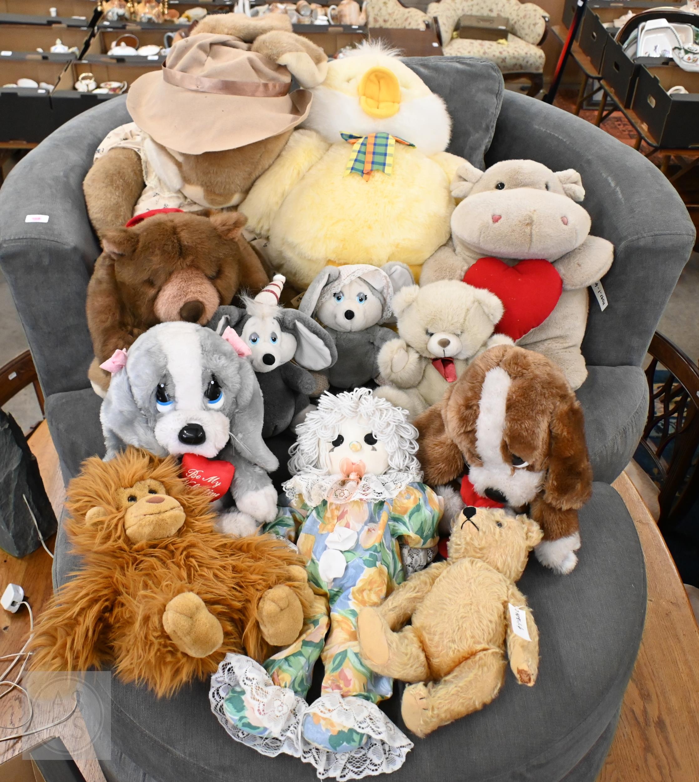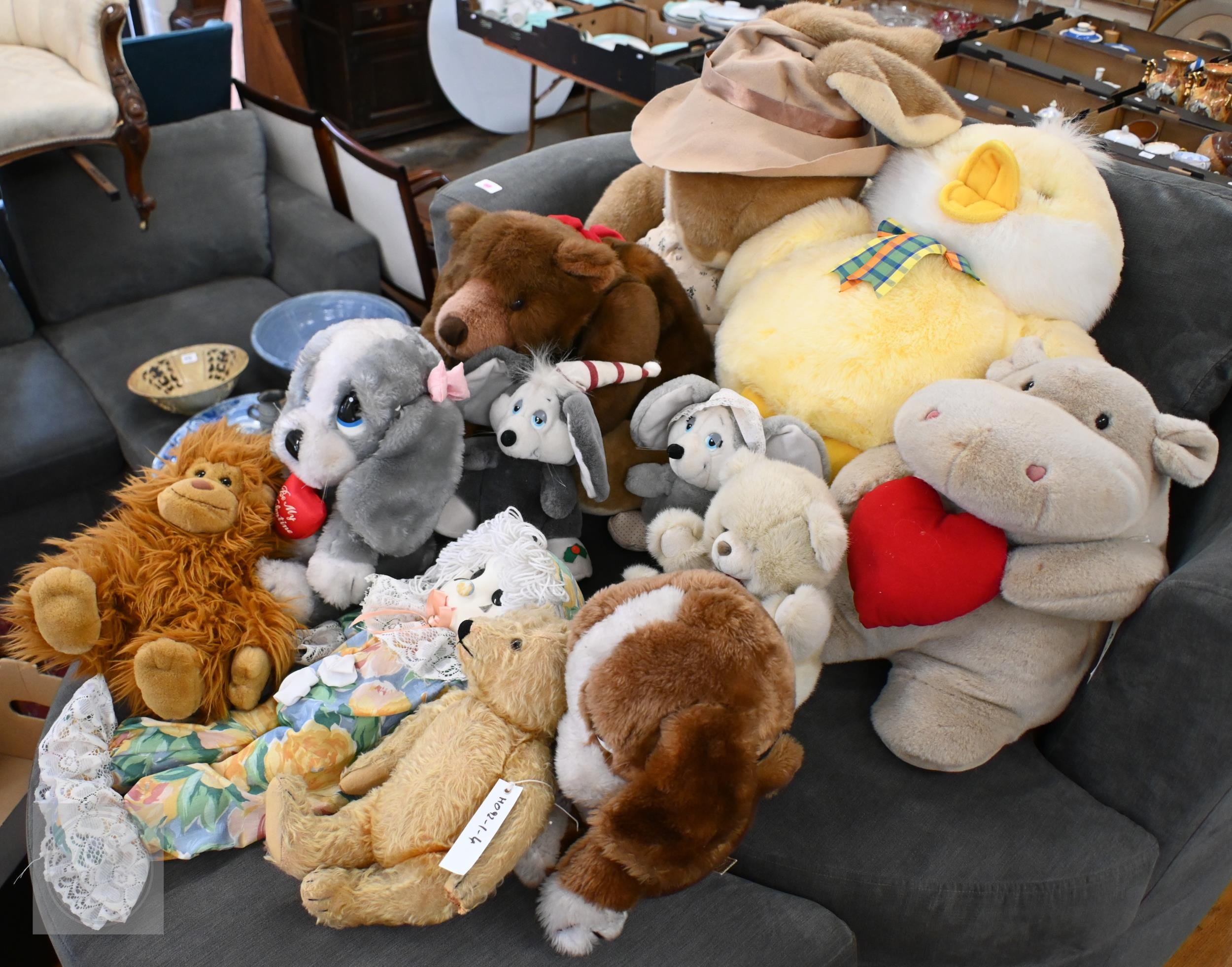 #A quantity of sort toys including large rabbit and chick, hippo, bears etc