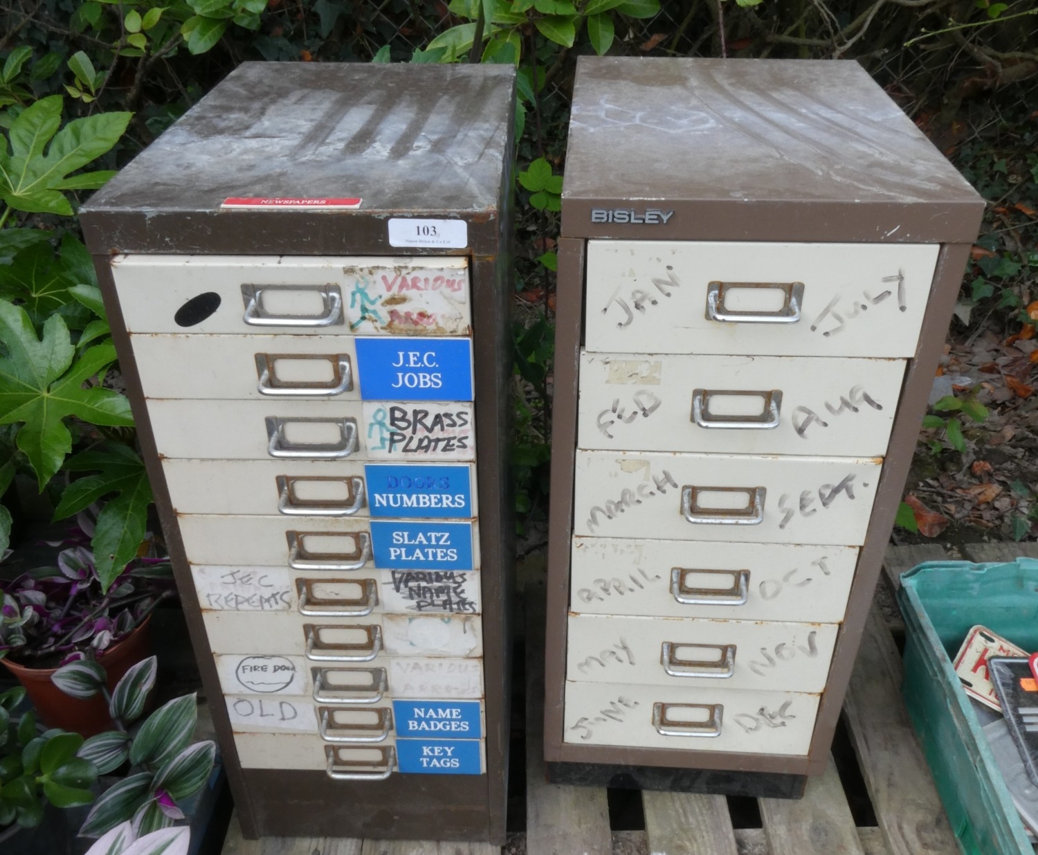 A Bisley six drawer document filing cabinet together with another ten drawer document filing cabinet