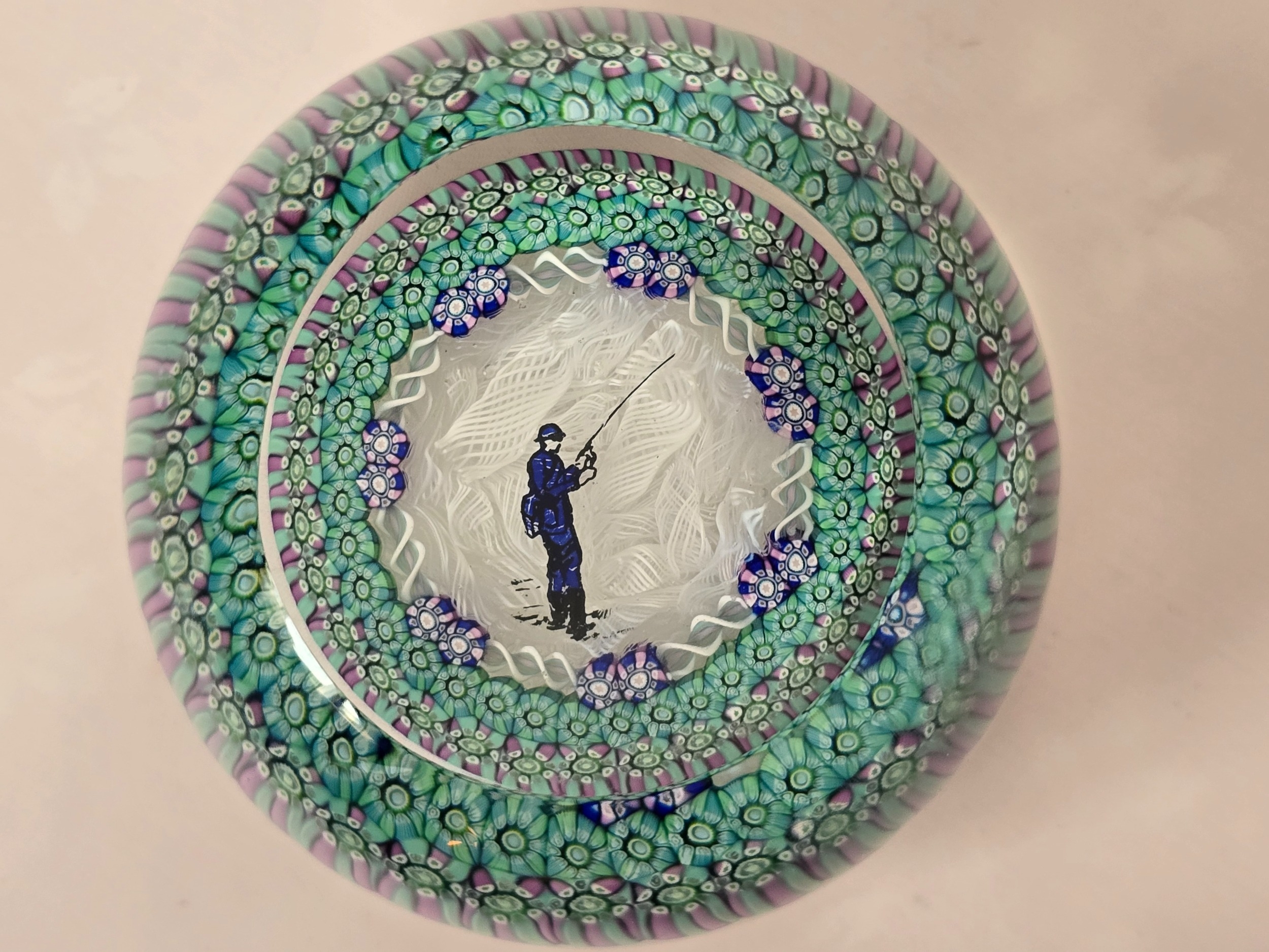 Valentines Gift: Perthshire Paperweights PP87 -"the Angler" for those whose partner is a fishing enthusiast. From 1988. Excellent condition. 77mm diam.