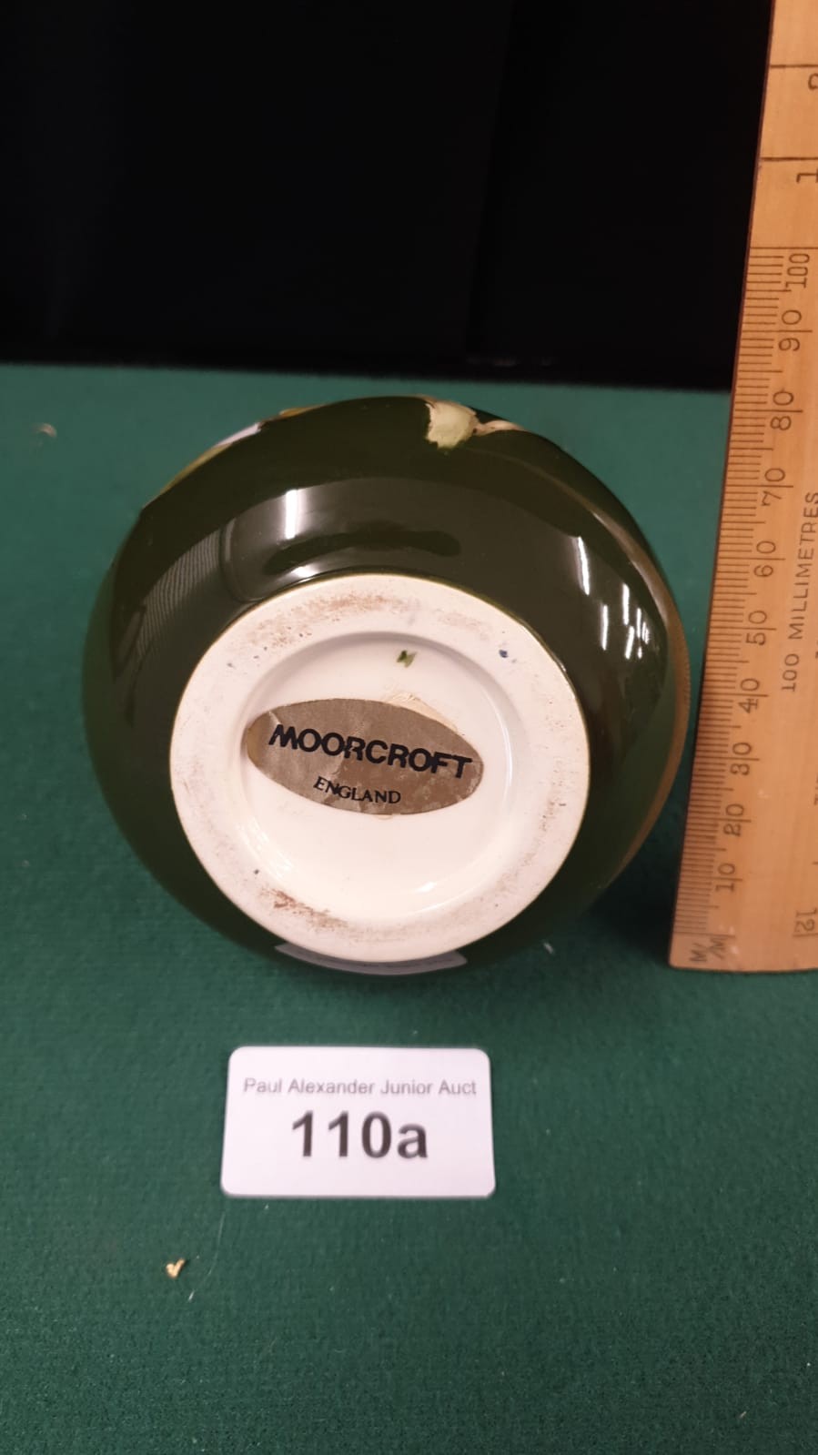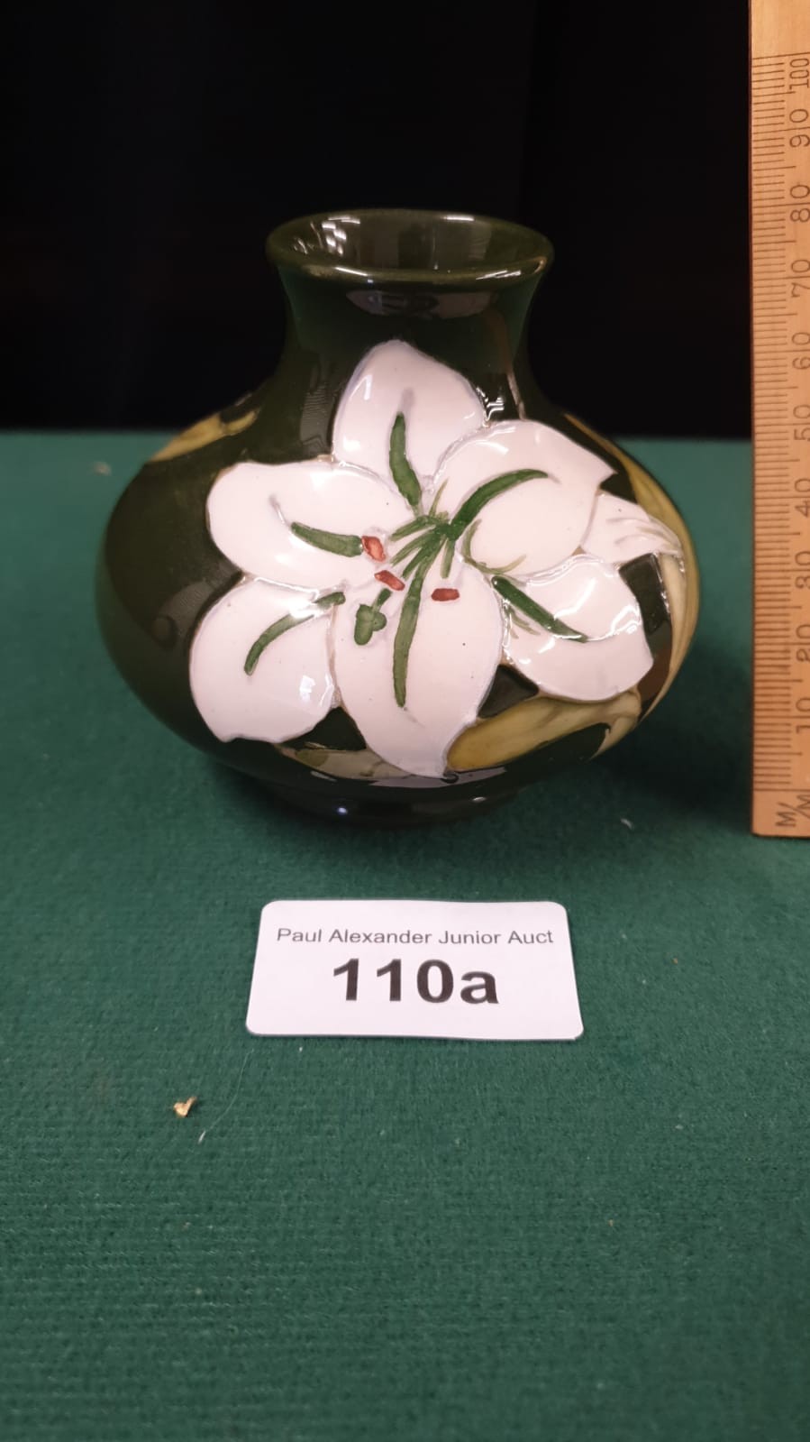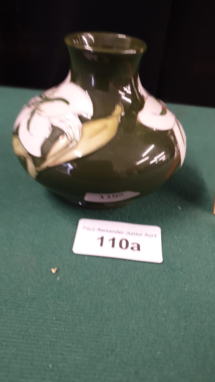 Early Moorcroft white orchid green back ground vase.