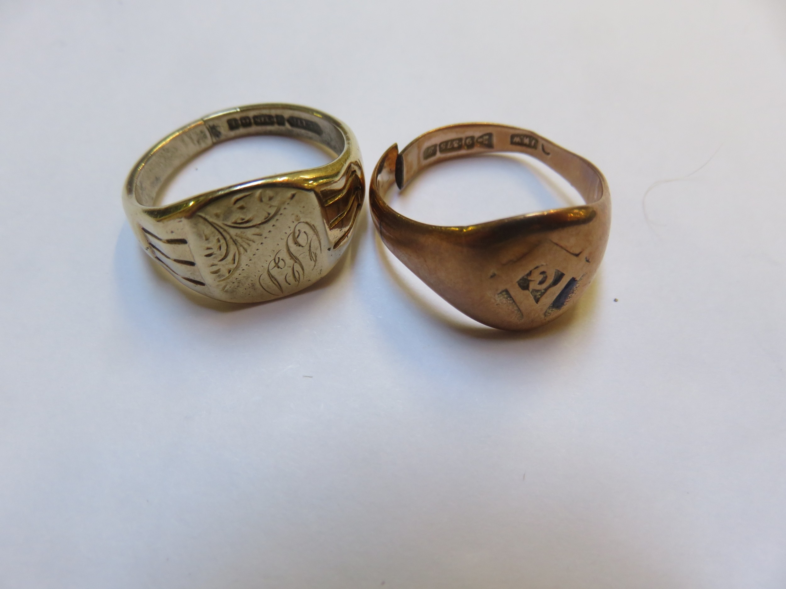 Two 9ct Gold Signet Rings, Both A/F. 10.3gms