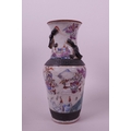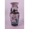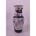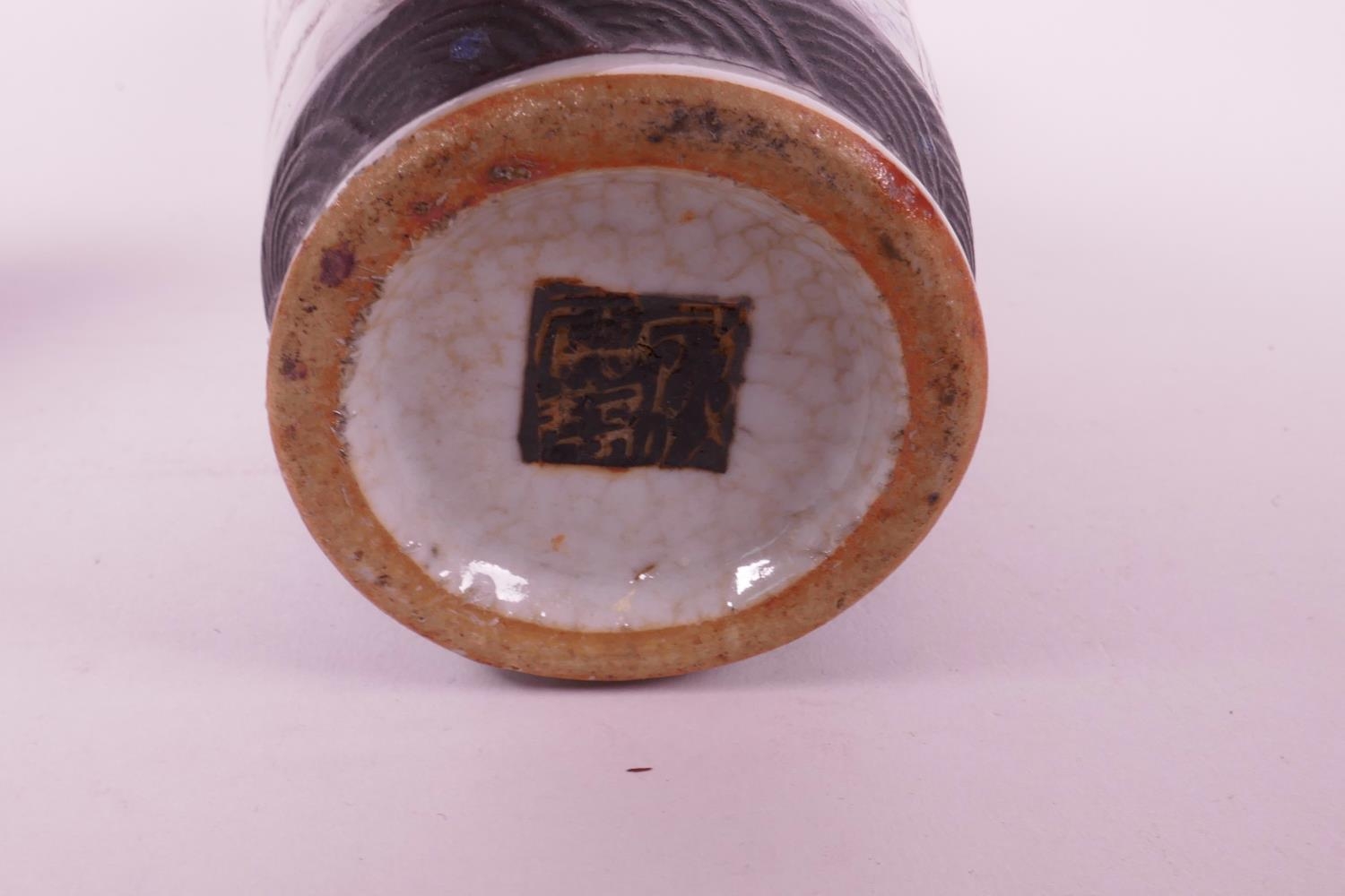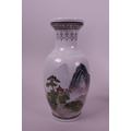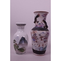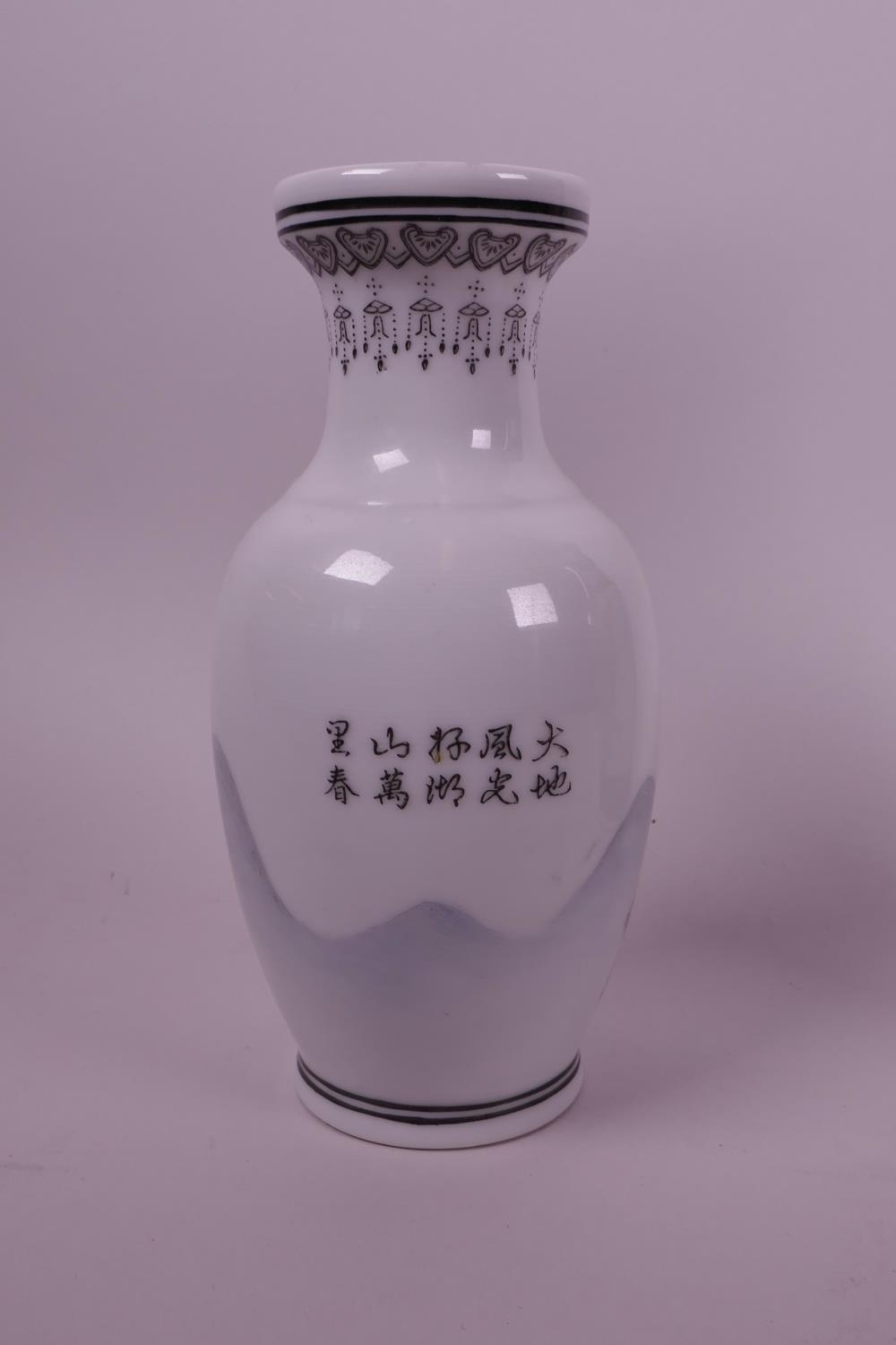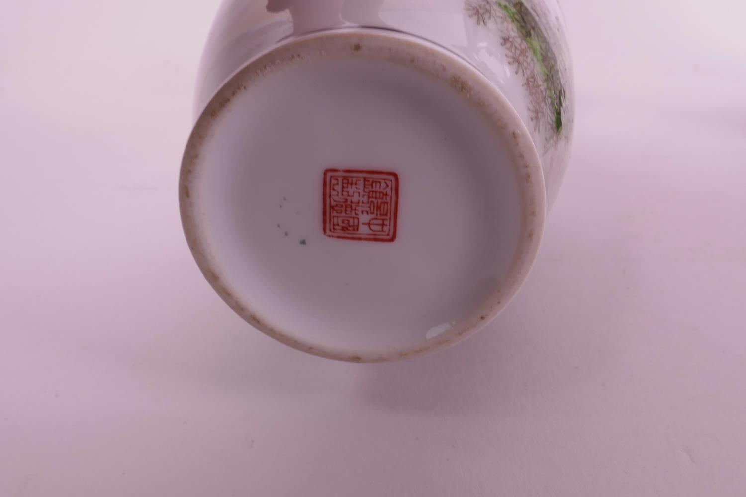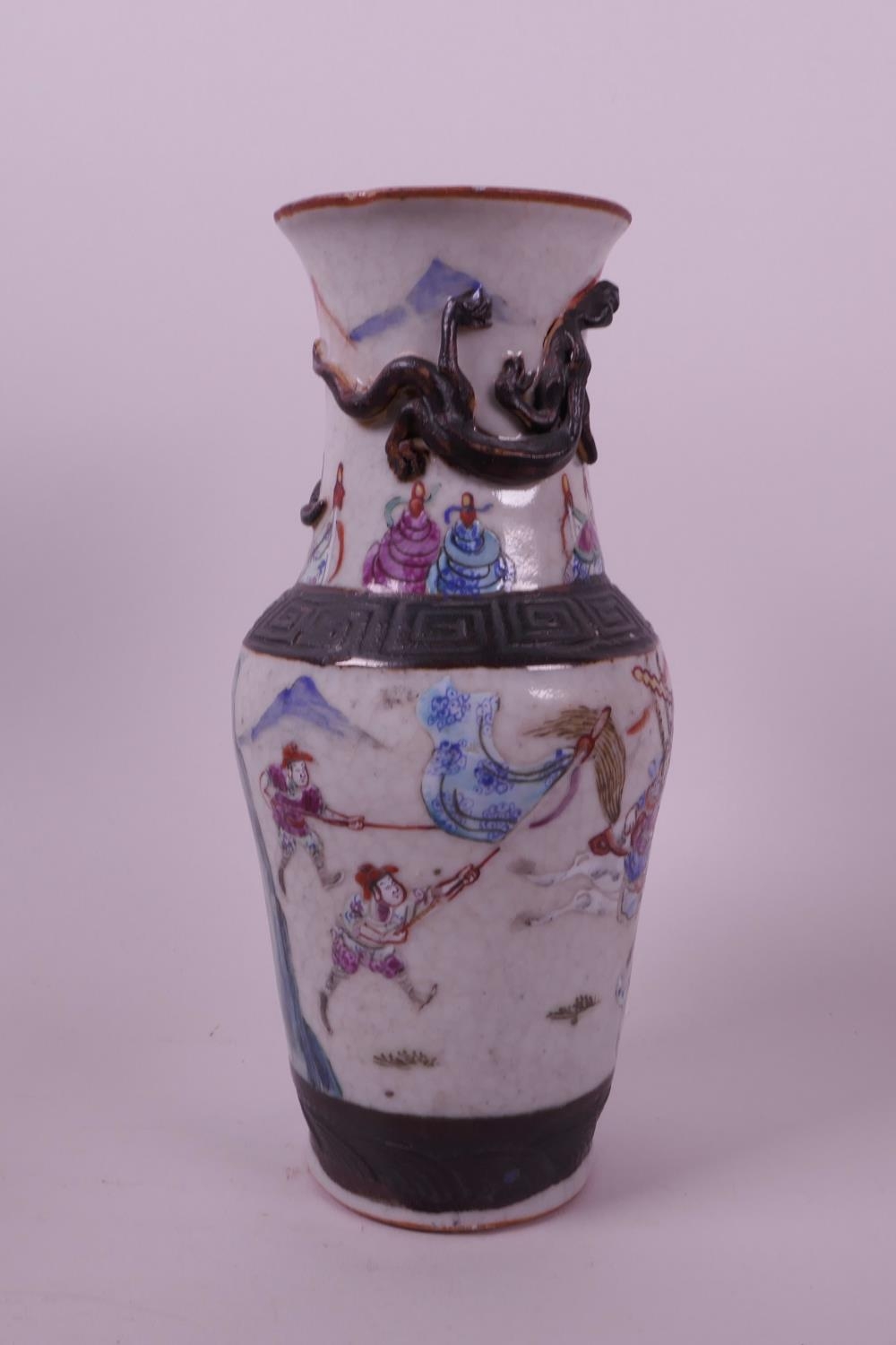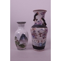A small Chinese Republic porcelain vase decorated with a famille verte enamel landscape, together with a crackle ground vase decorated with warriors on horseback, largest 7½" high, marks to base