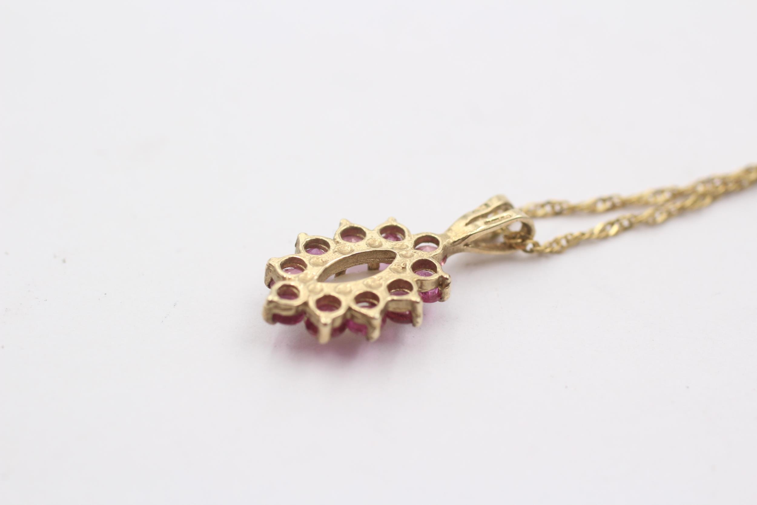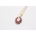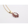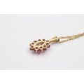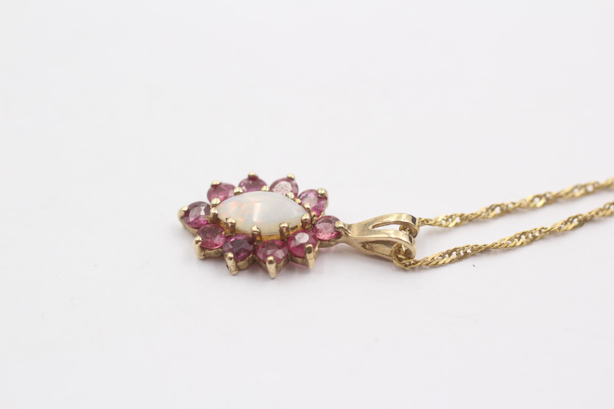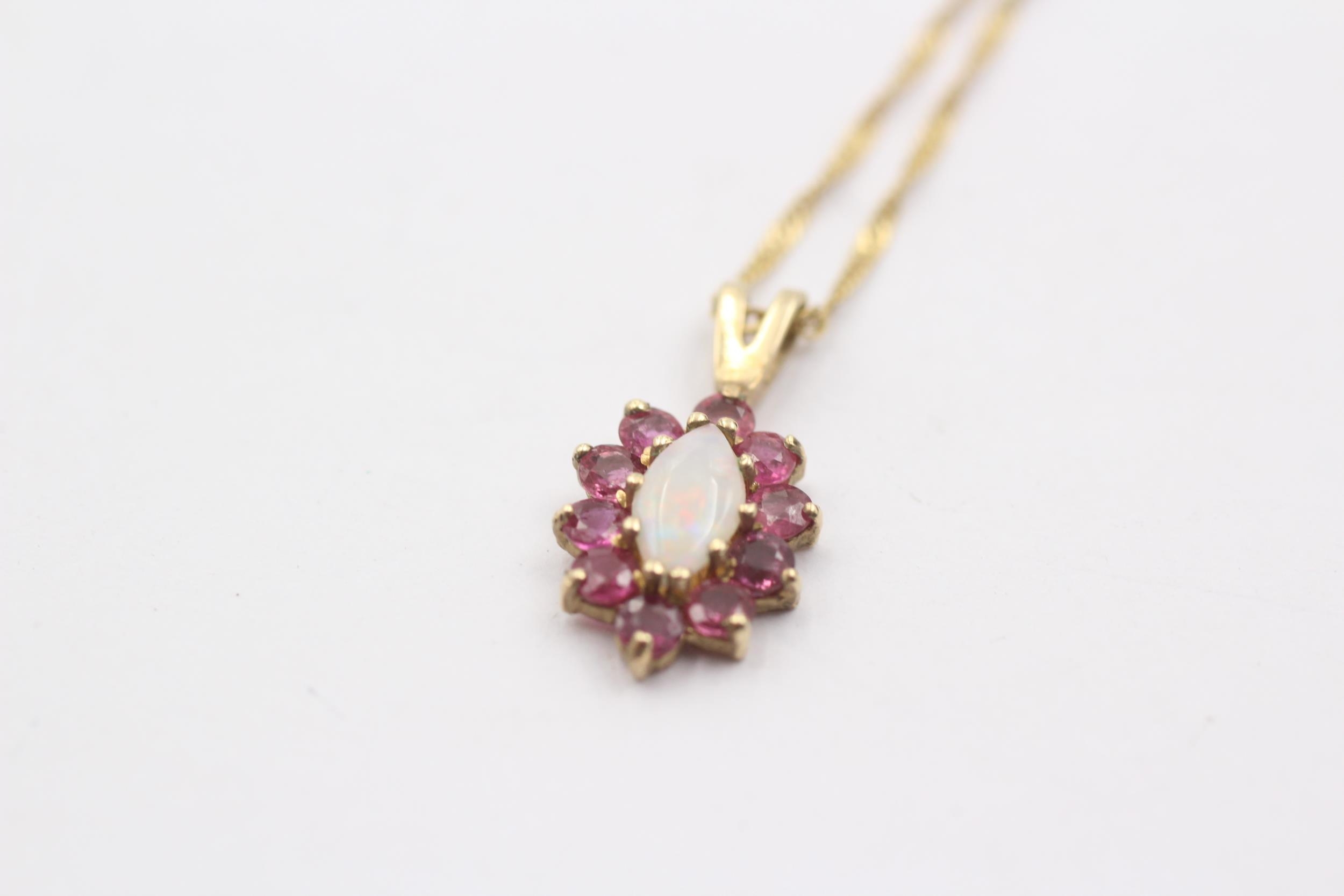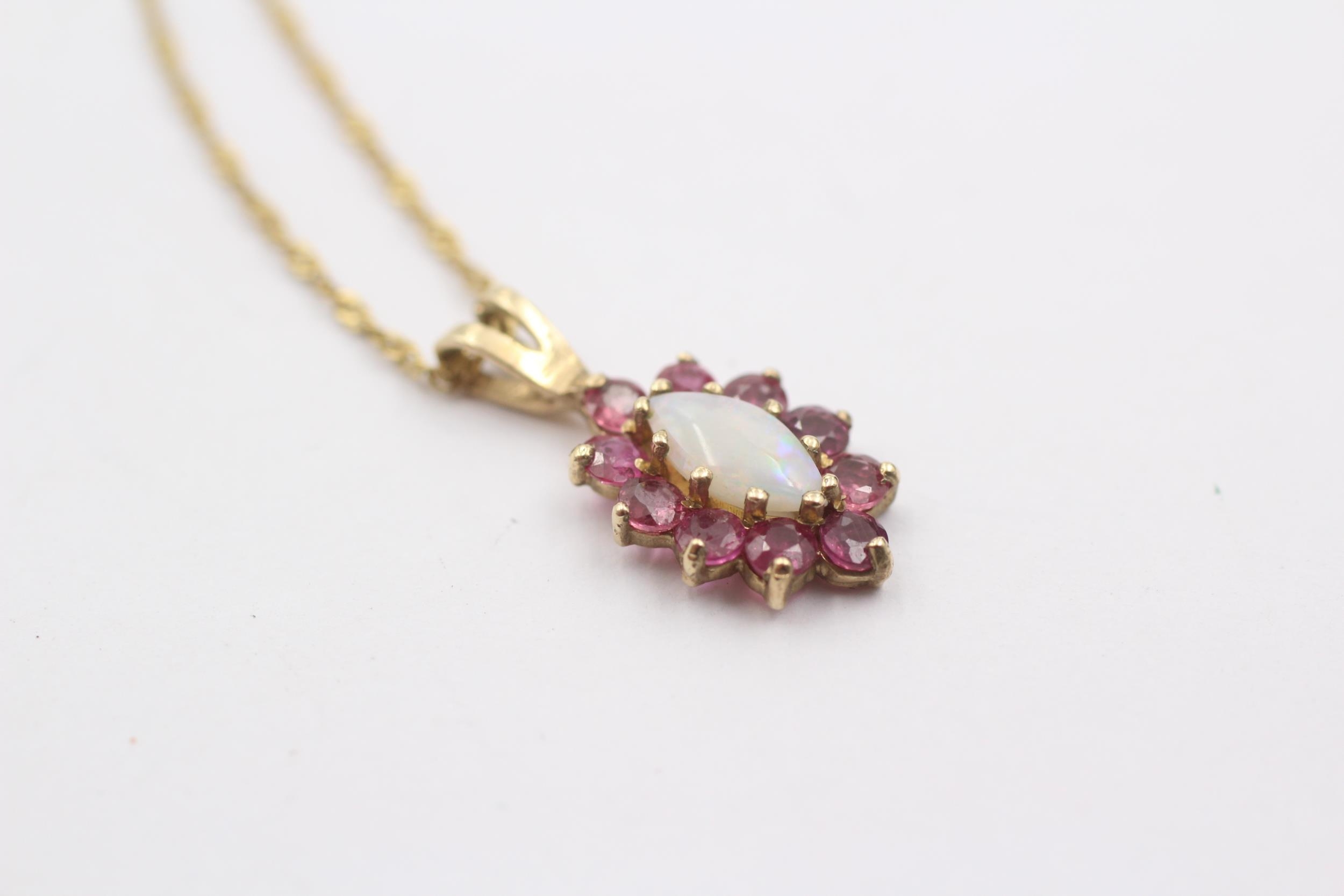 9ct Gold Opal And Ruby Navette Shaped Halo Cluster Pendant Necklace (1.8g)