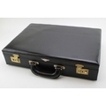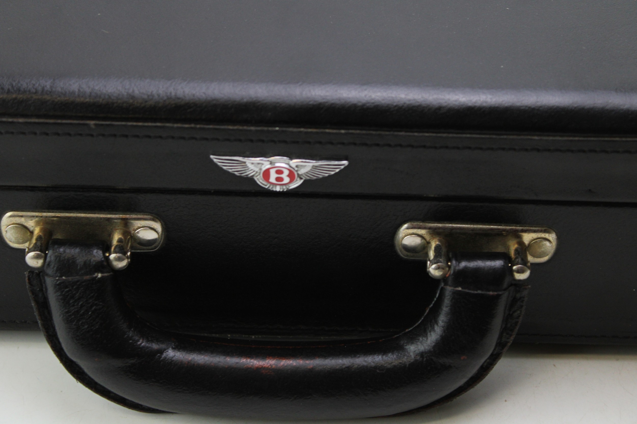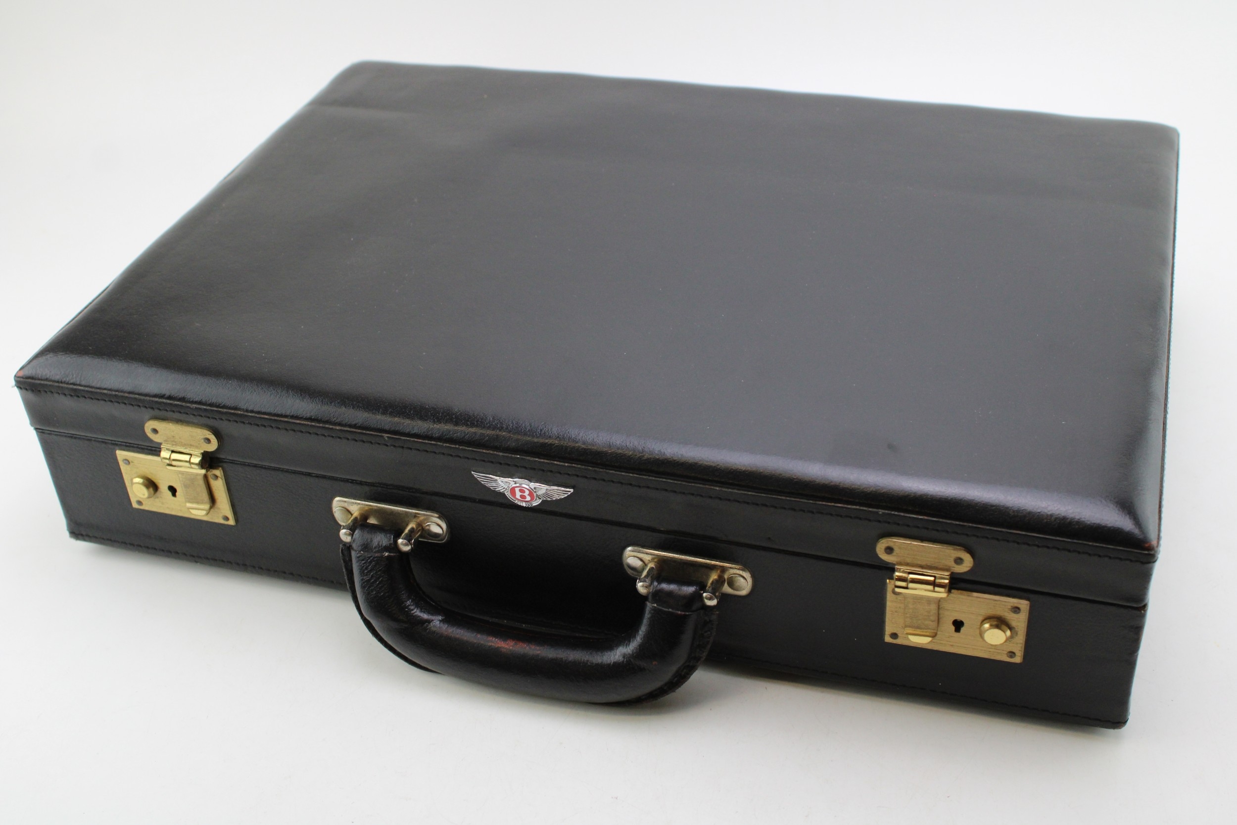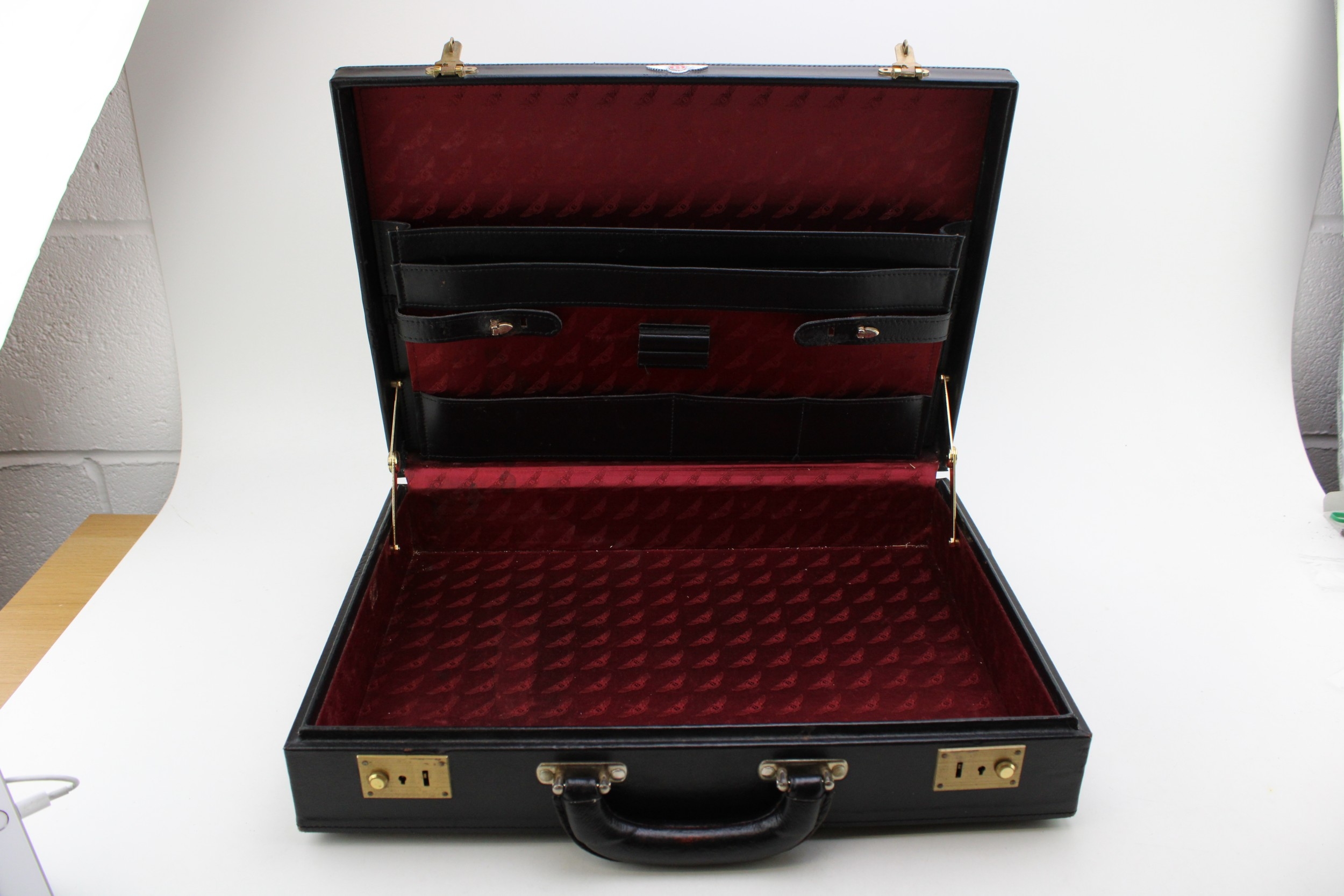 Bentley briefcase in black leather, burgundy silk lined interior with repeated Bentley logo, 54cm x 32.5cm.