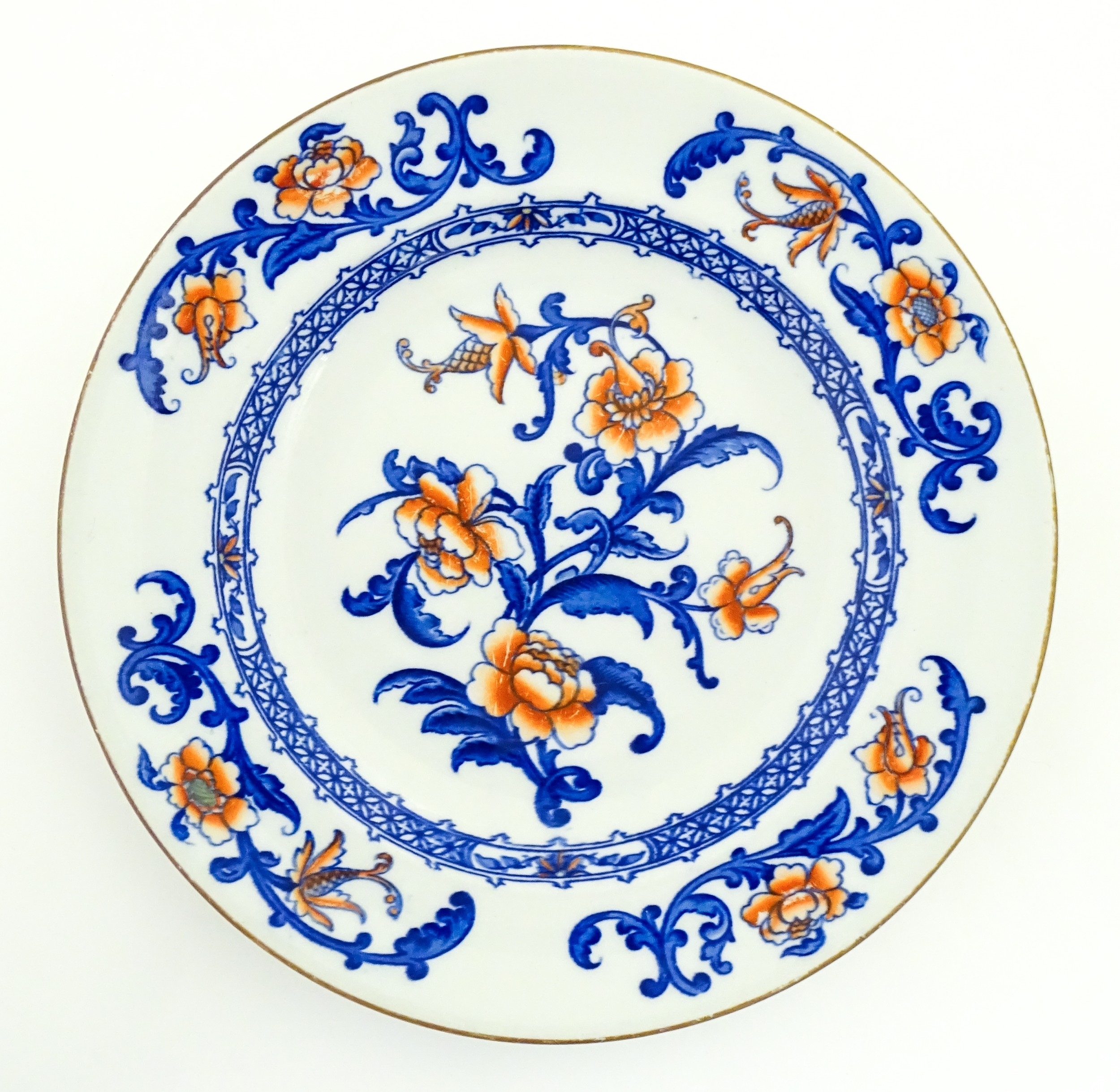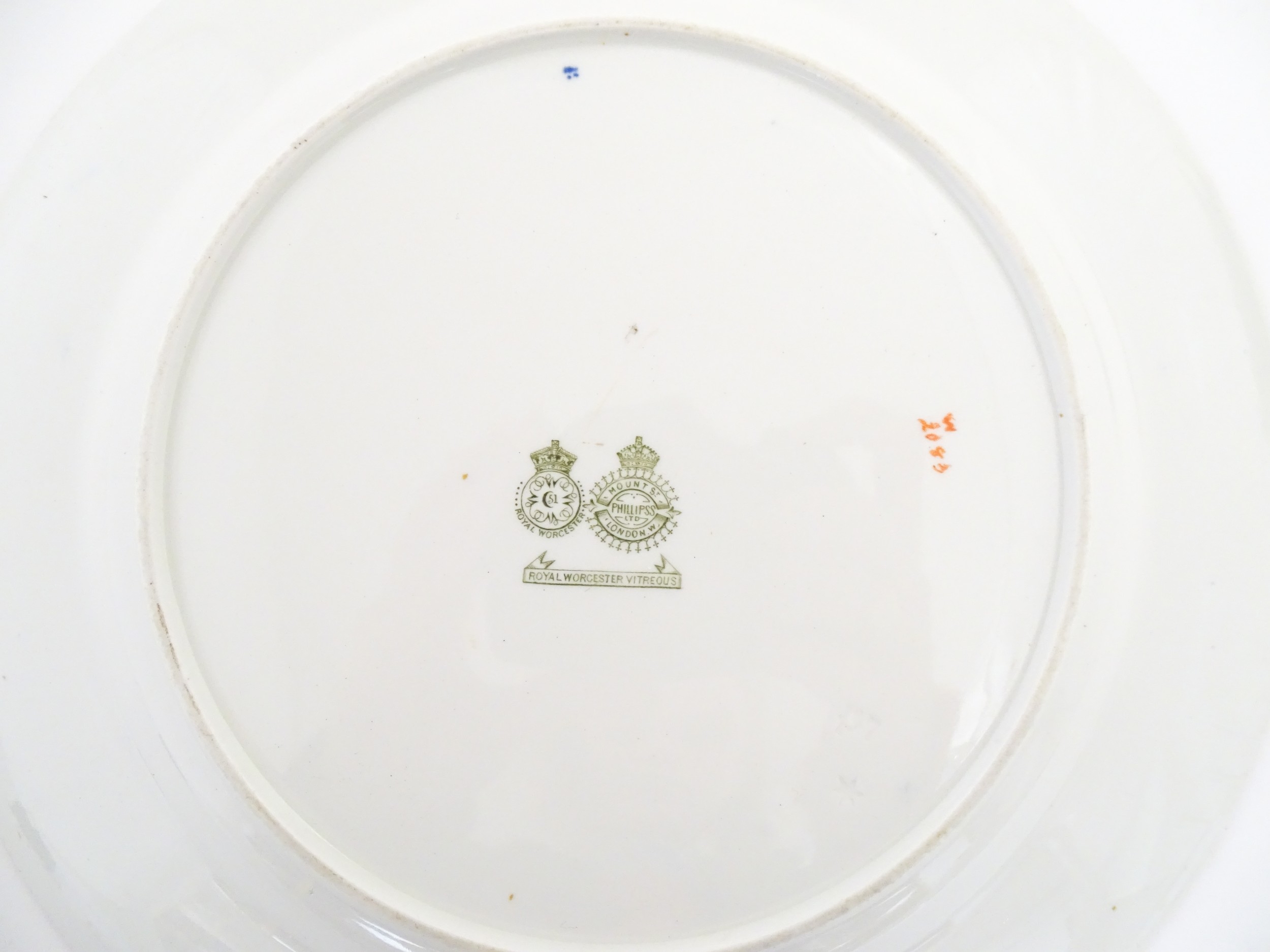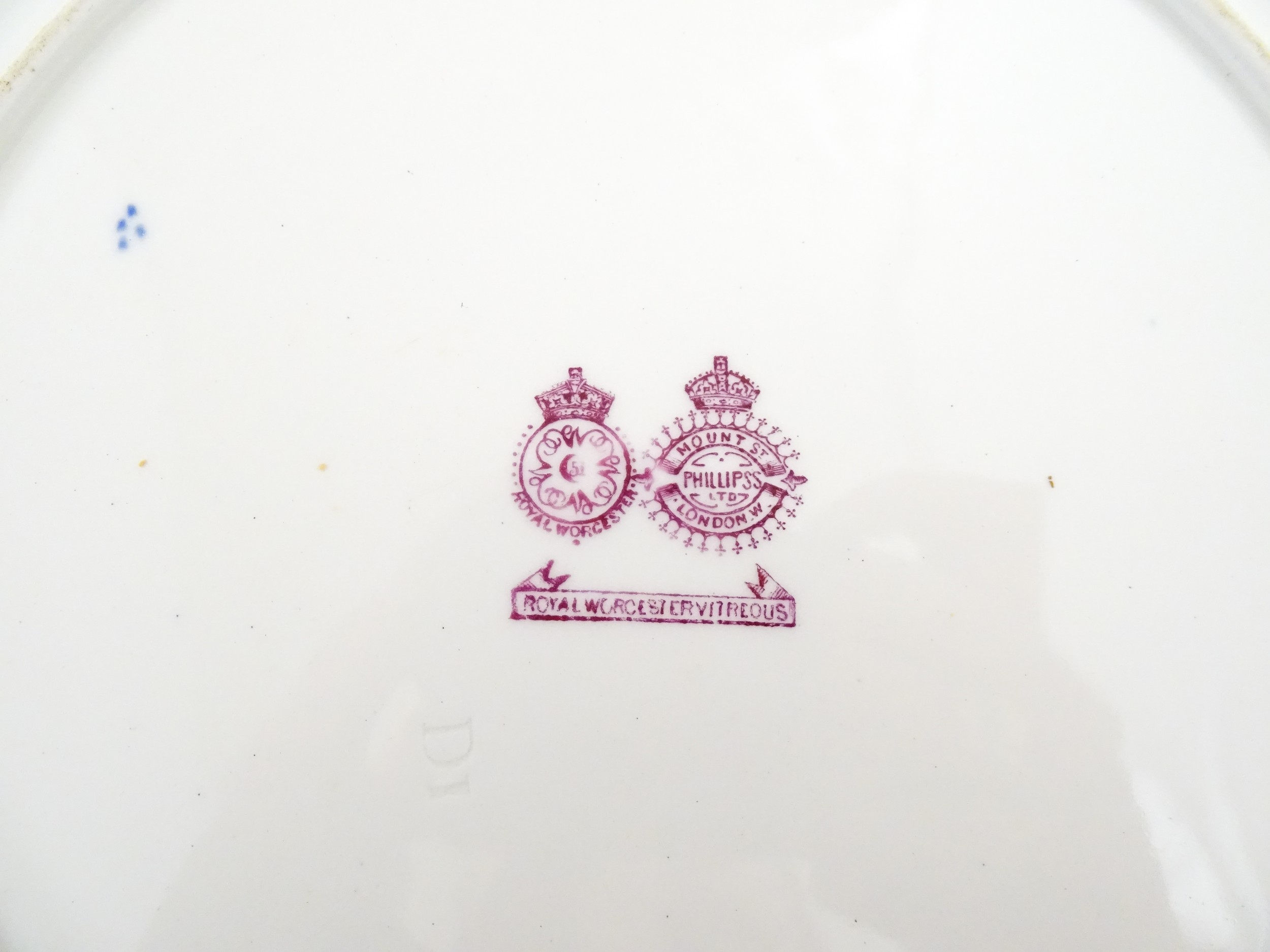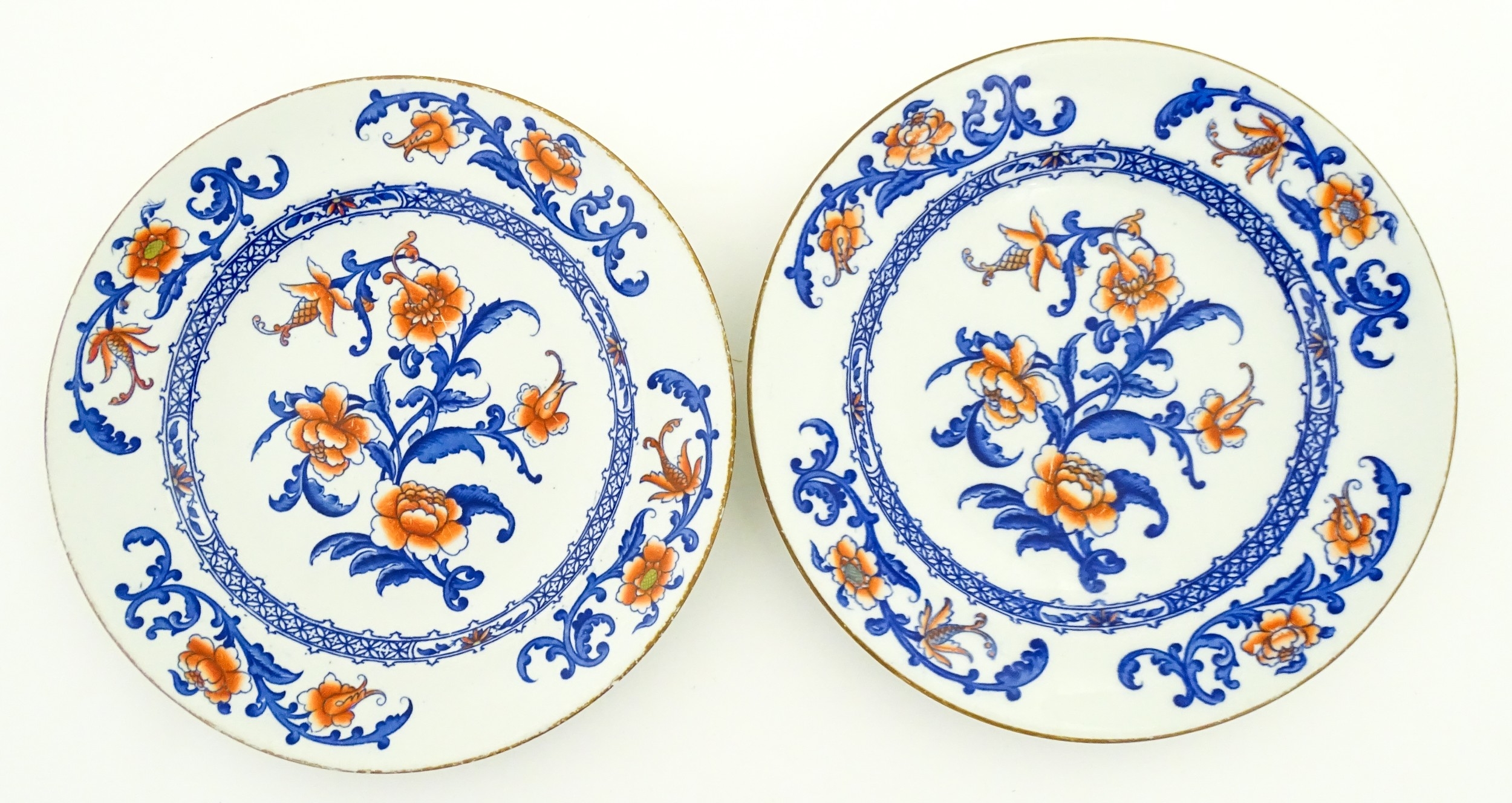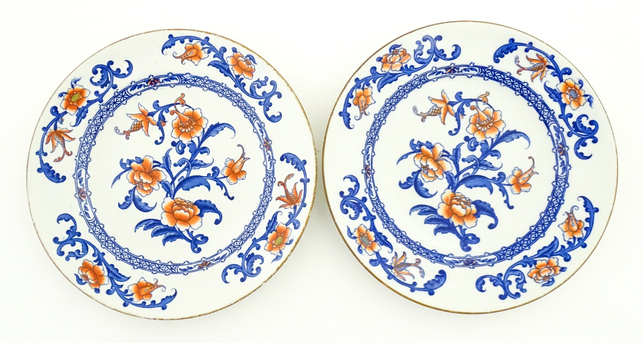 A pair of Royal Worcester Vitreous plates decorated in the Imari pattern. Both marked under with Phillips's Ltd retail mark, one with puce mark, one green. Approx. 10 3/4" wide (2)