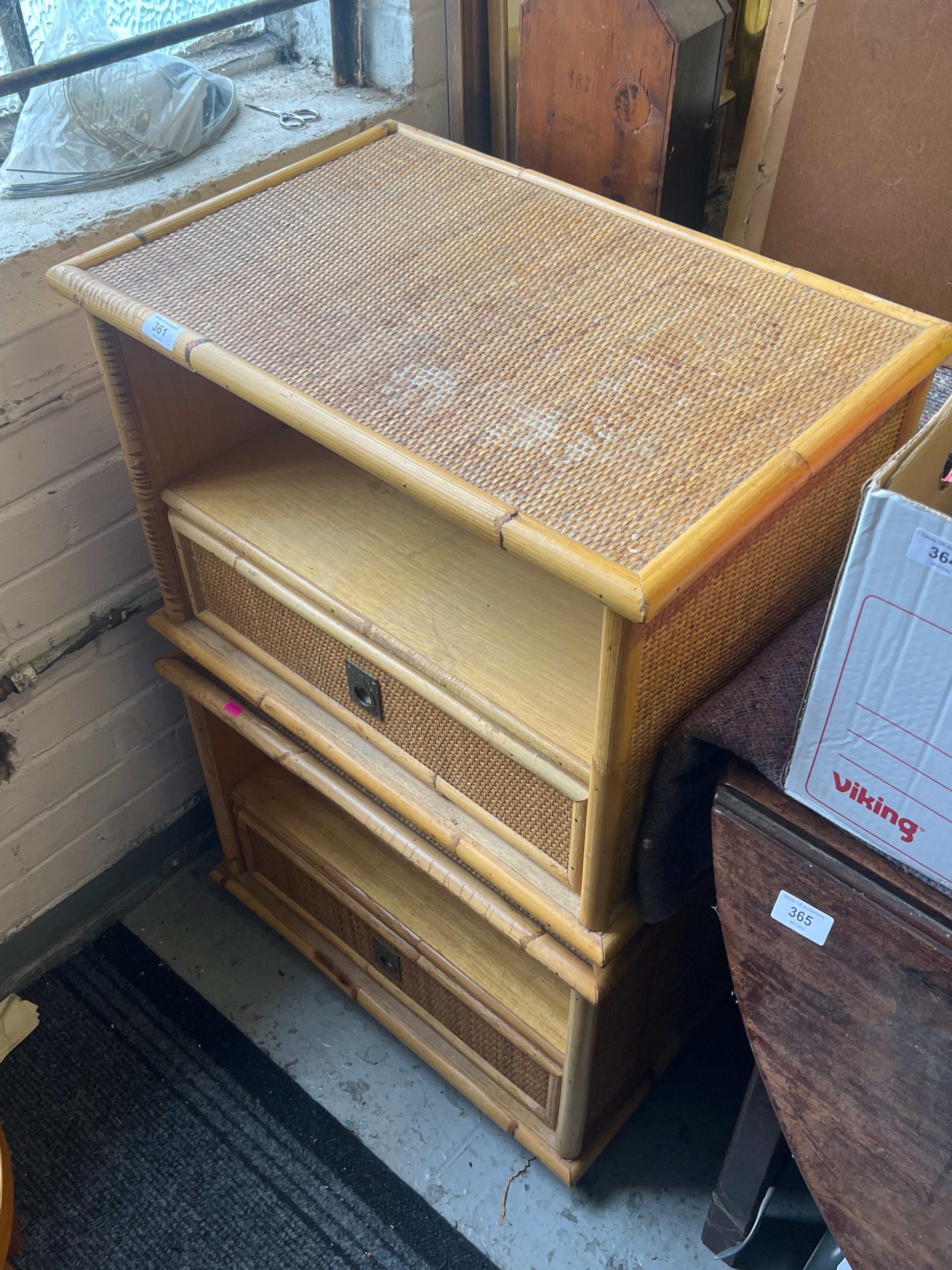 Pair of rattan bedside units fitted single drawers