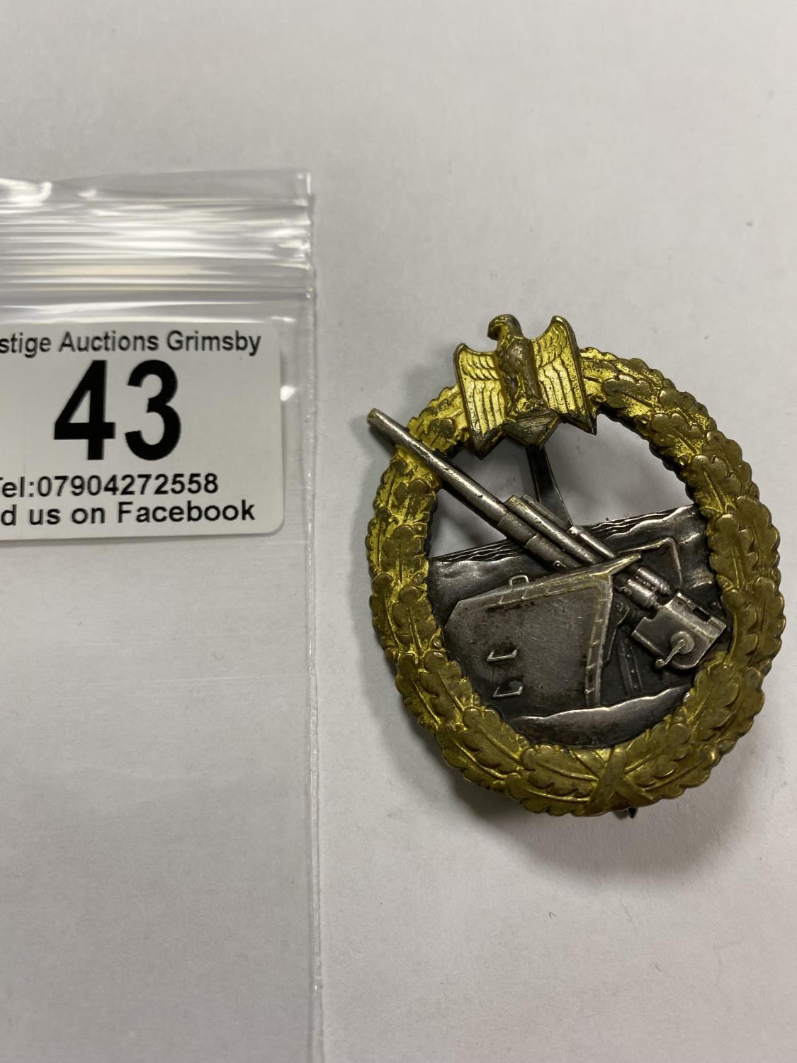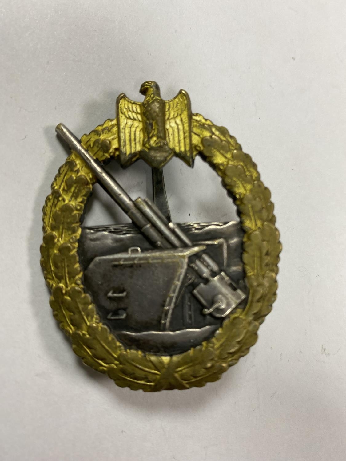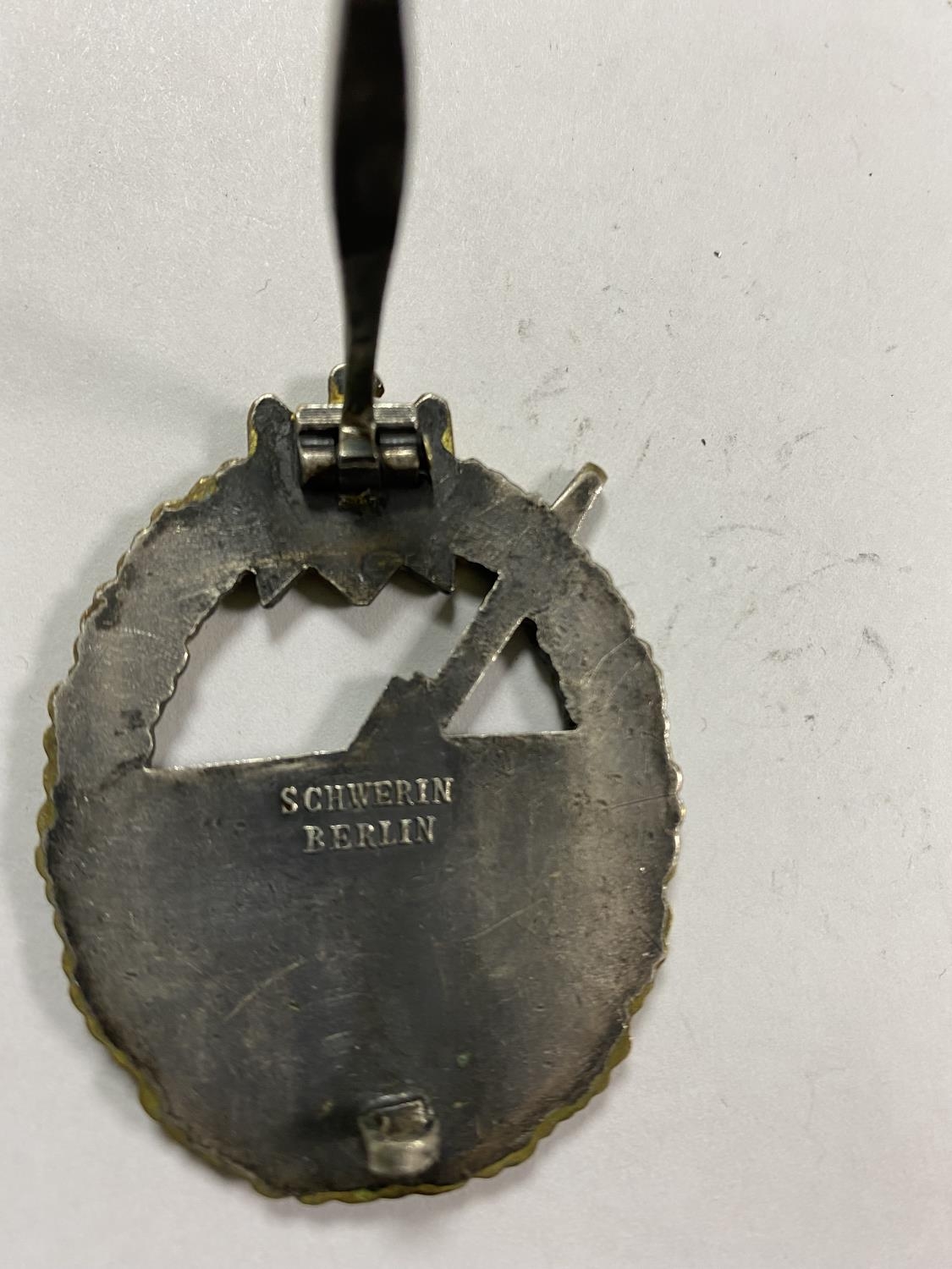 WW2 GERMAN COASTAL ARTILLARY BADGE WITH SCHWERIN BERLIN ON BACK