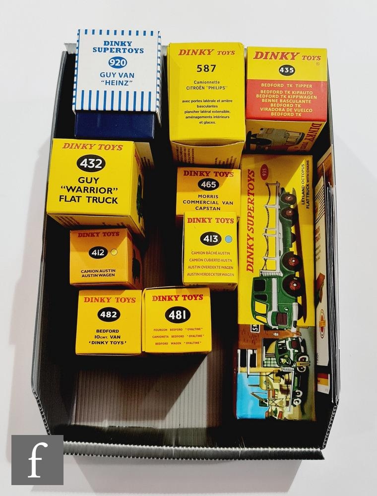 A collection of ten Atlas Editions Dinky diecast models, all commercial vehicles, to include 920 Heinz Guy Van, 413 Austin Covered Wagon, 482 Dinky Toys Bedford Van, 465 Capstan Morris Wagon, etc., all boxed, most with certificates.