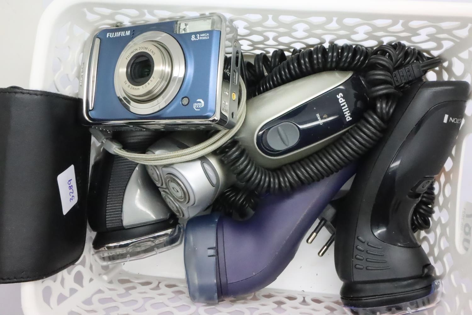Mixed electric razors with power leads and a digital camera. P&P Group 1 (£14+VAT for the first lot and £1+VAT for subsequent lots)