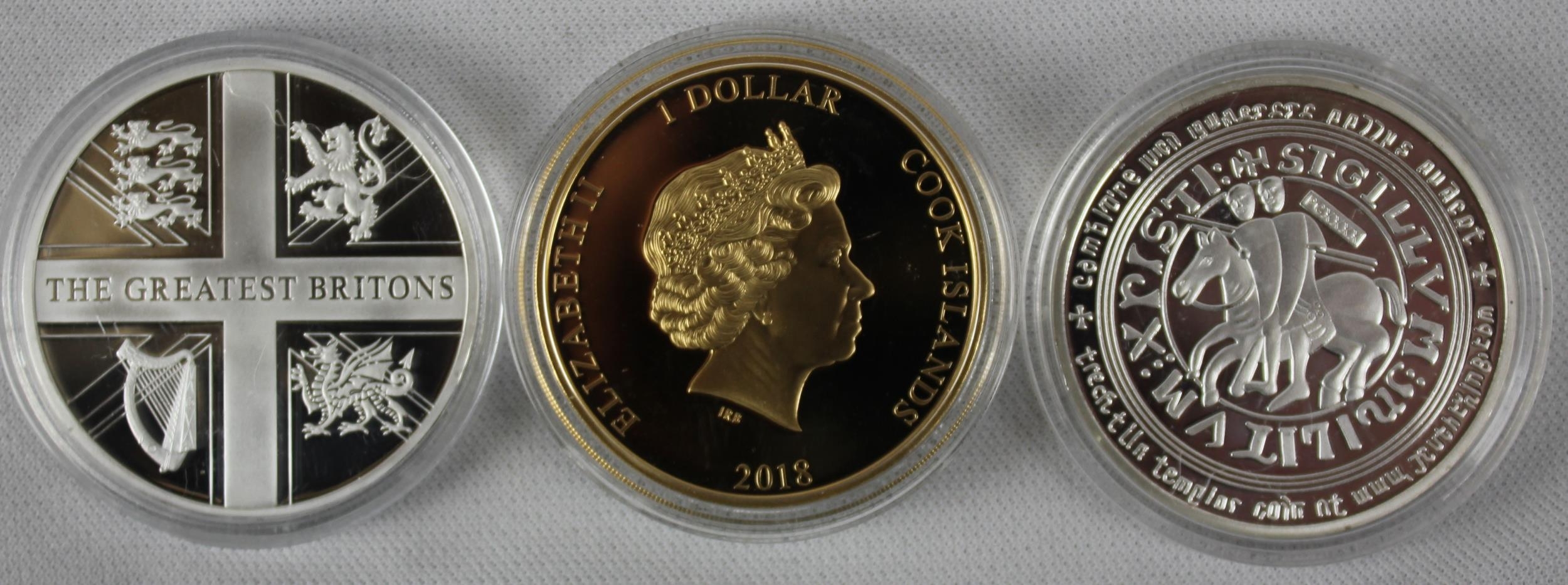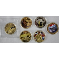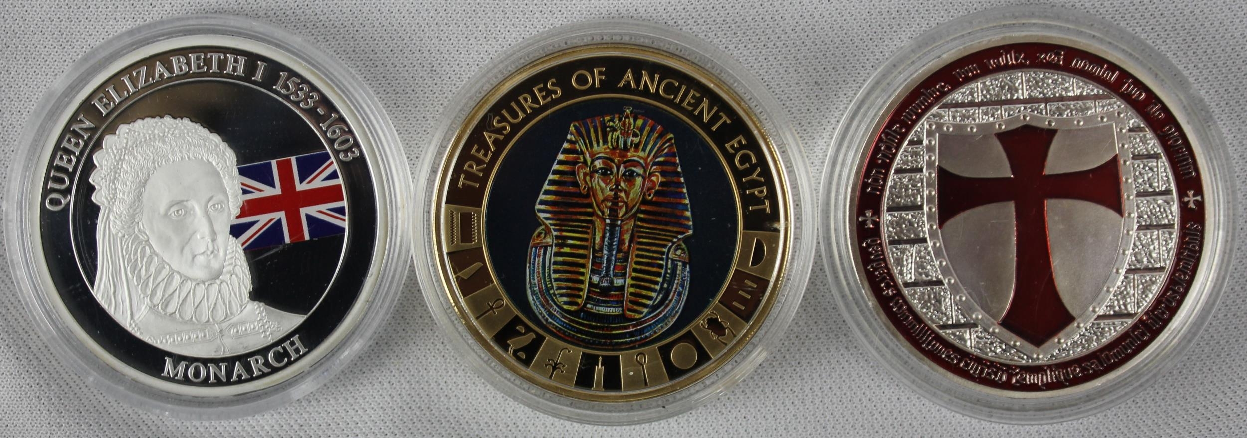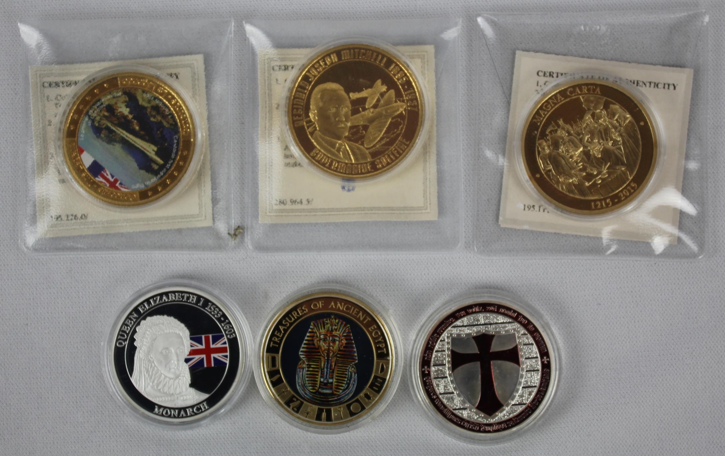 6 COMMEMORATIVE COINS:TREASURE OF ANCIENT EGYPT COOK ISLANDS 1 DOLLAR 2018, THE GREATEST BRITONS - MONARCH QUEEN ELIZABETH I 1533-1603, CONCORDE THE LEGEND QUEEN OF AVIATION, HISTORY OF AVIATION REGINALD JOSEPH MITCHELL 1895-1937 SUPERMARINE SPITFIRE, MAGNA CARTA 1215-2015 & MEDAL KNIGHTS TEMPLAR