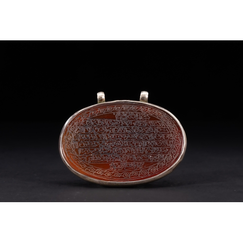 An Islamic Mother-of-Pearl Amulet Pendant with Calligraphic Inscription.
