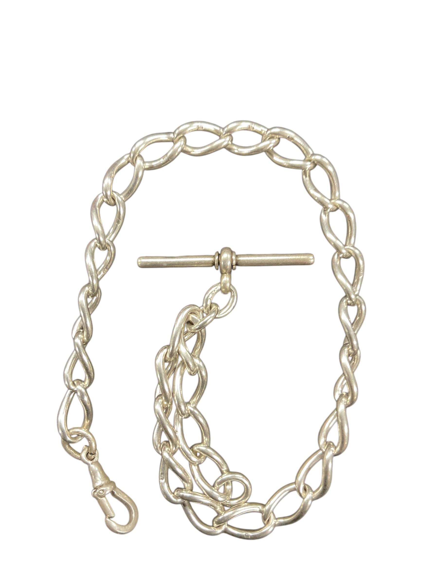 A hallmarked silver elongated link Albert pocket watch chain, 35.8g