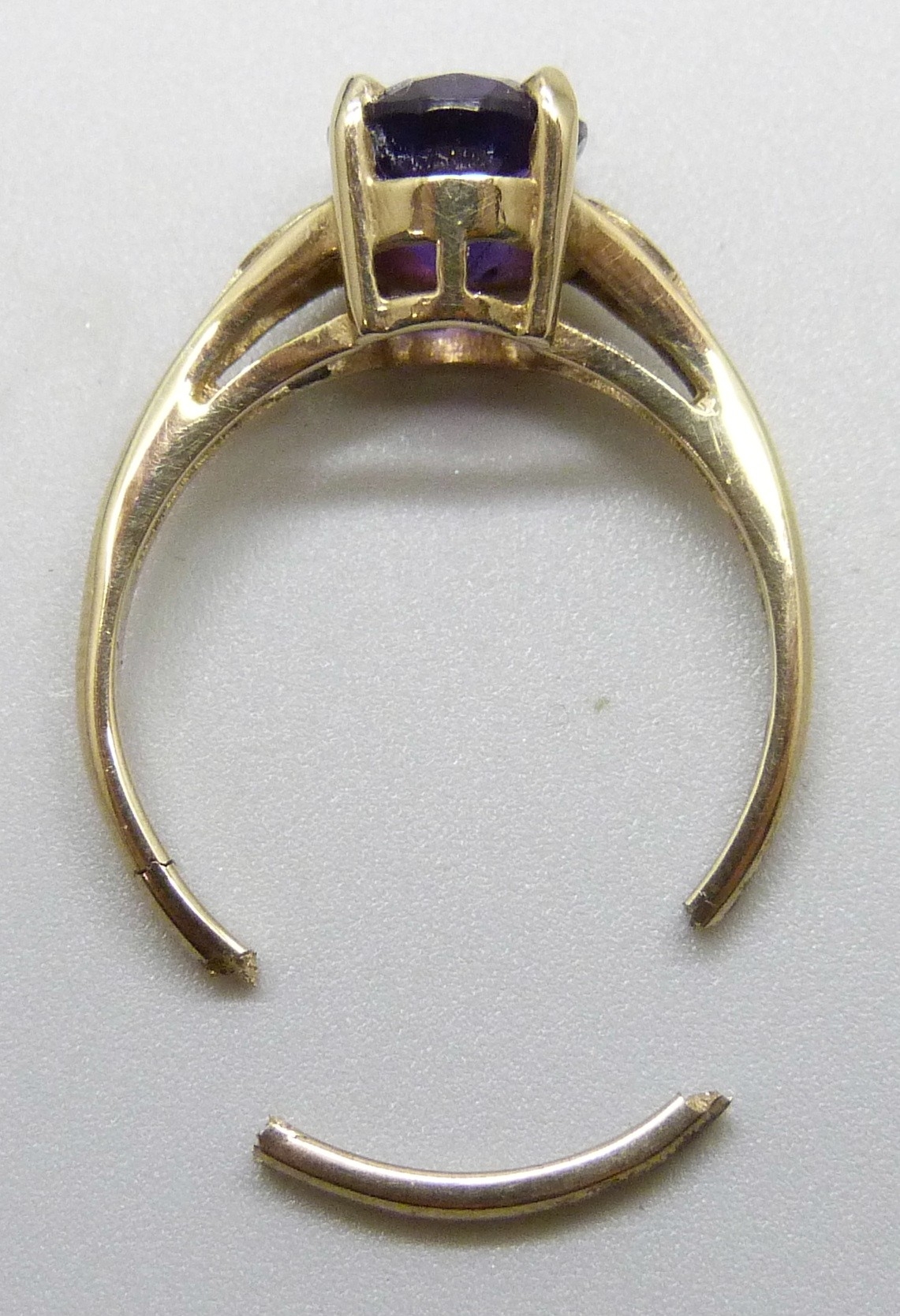 A 9ct gold and amethyst ring, a/f, 2.5g