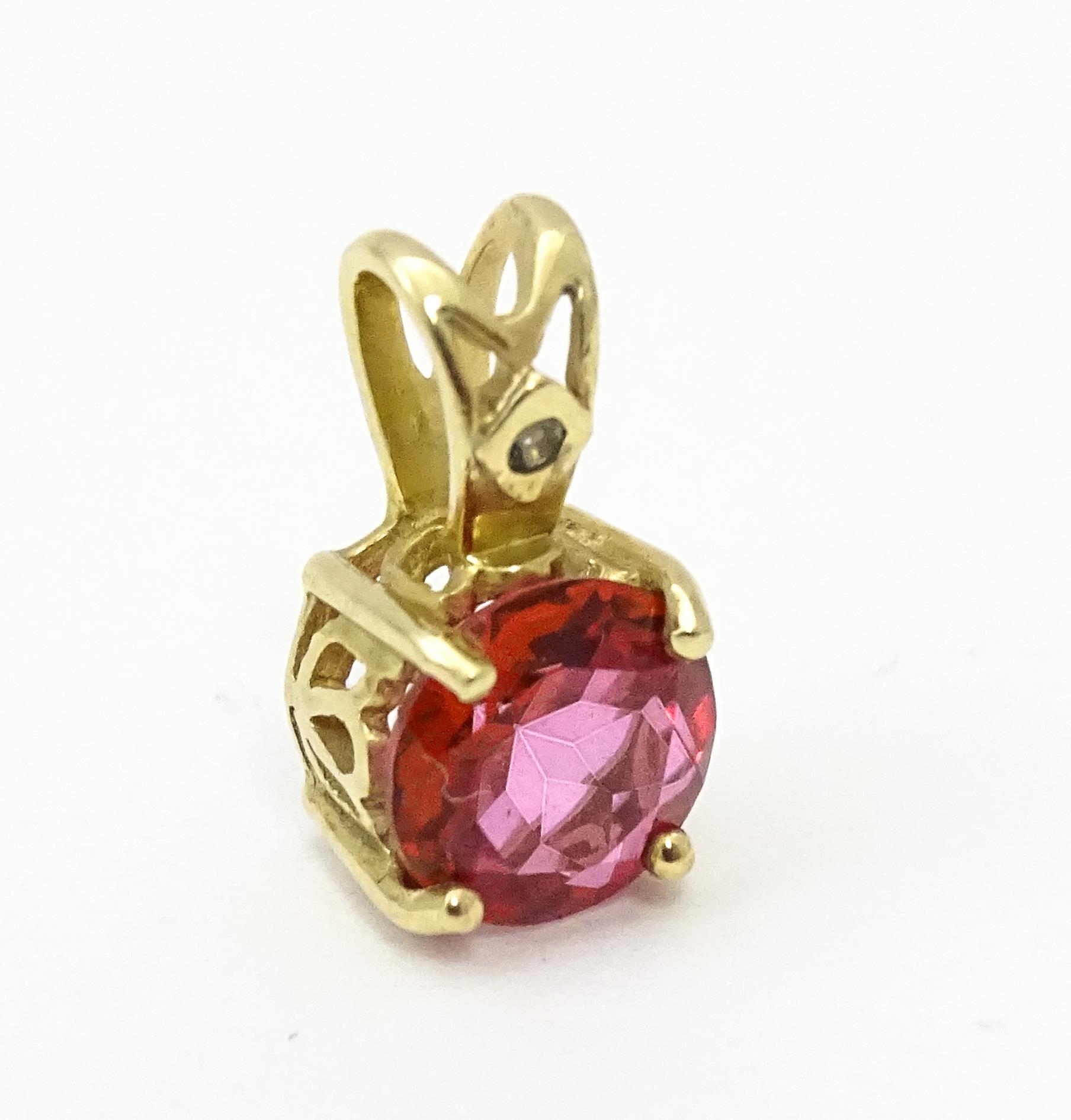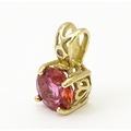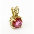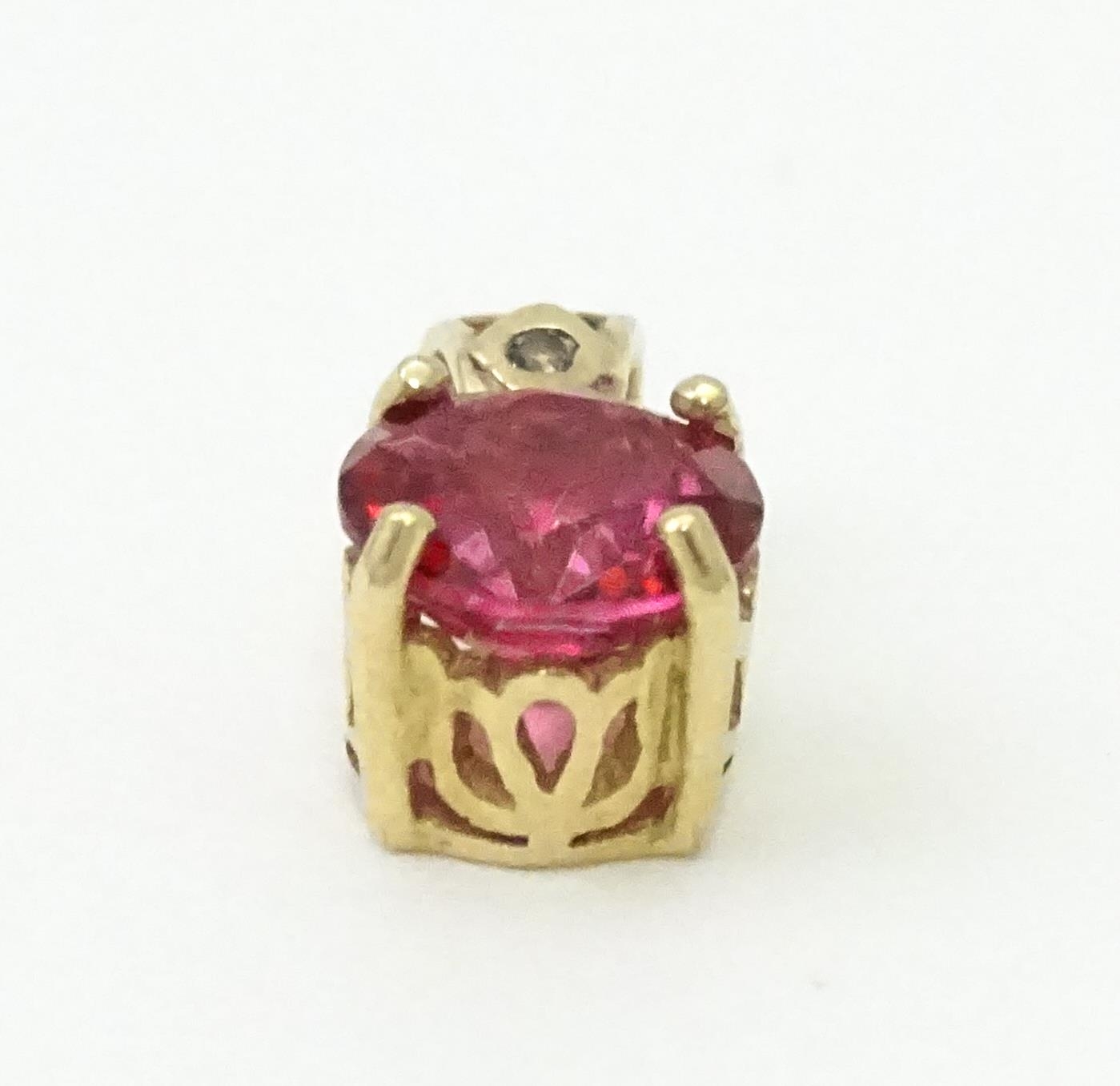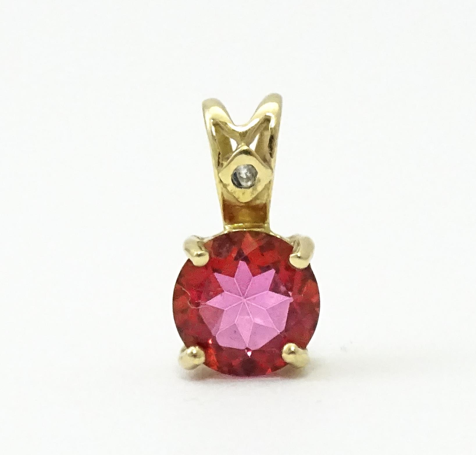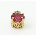 A yellow metal pendant set with red and white stone. Approx. 1/2" long