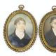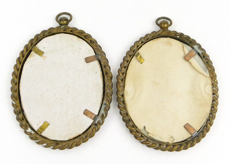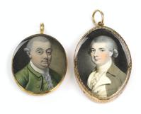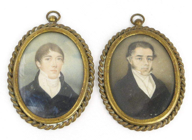 Two 19th century portrait miniatures onto ivory of gentleman, each in a brass ropetwist frame, each 6.5cm x 5cm excluding the frames