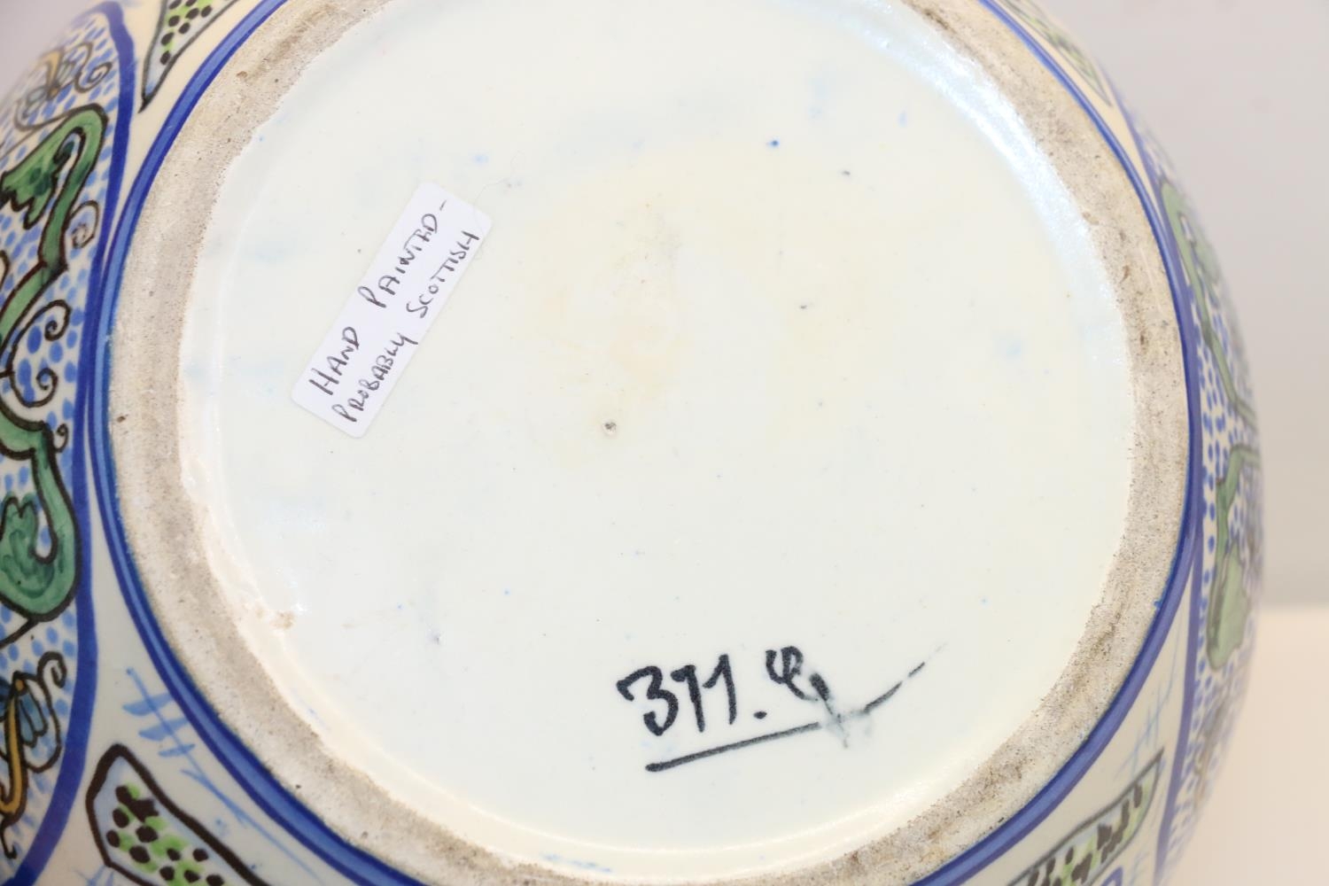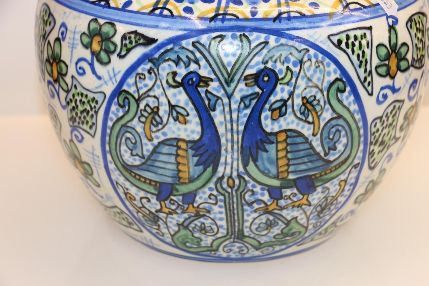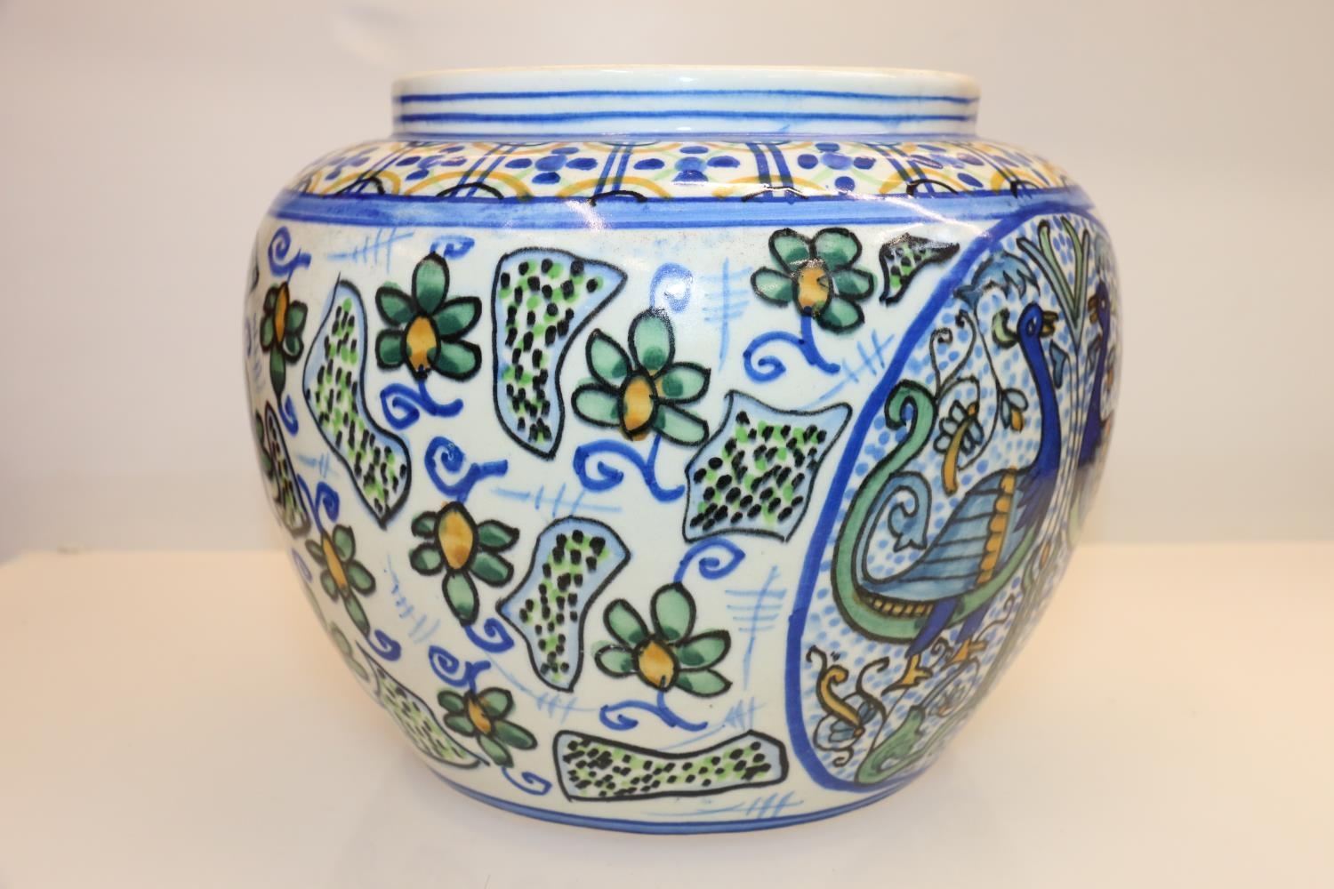 Scottish Pottery jardiniere or vase decorated with birds and flowers, 19cm.