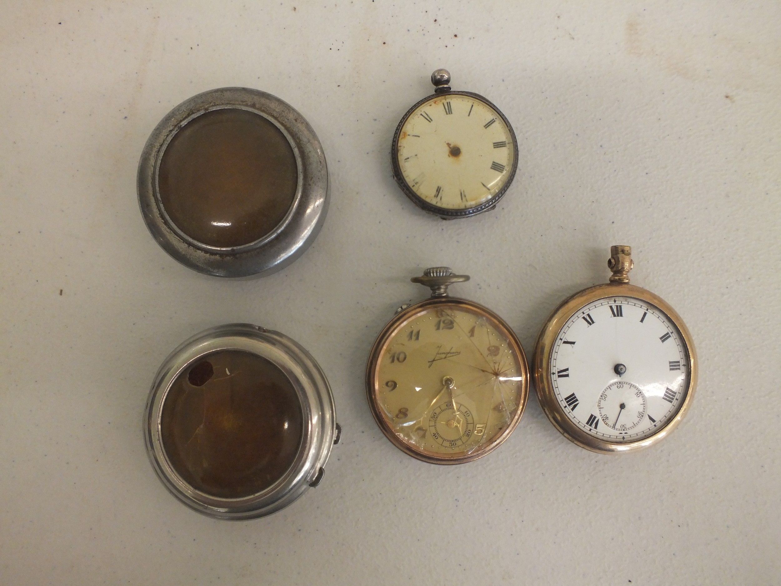 Three Pocket Watches (A/F) and a White Metal Outer Watch Case