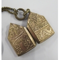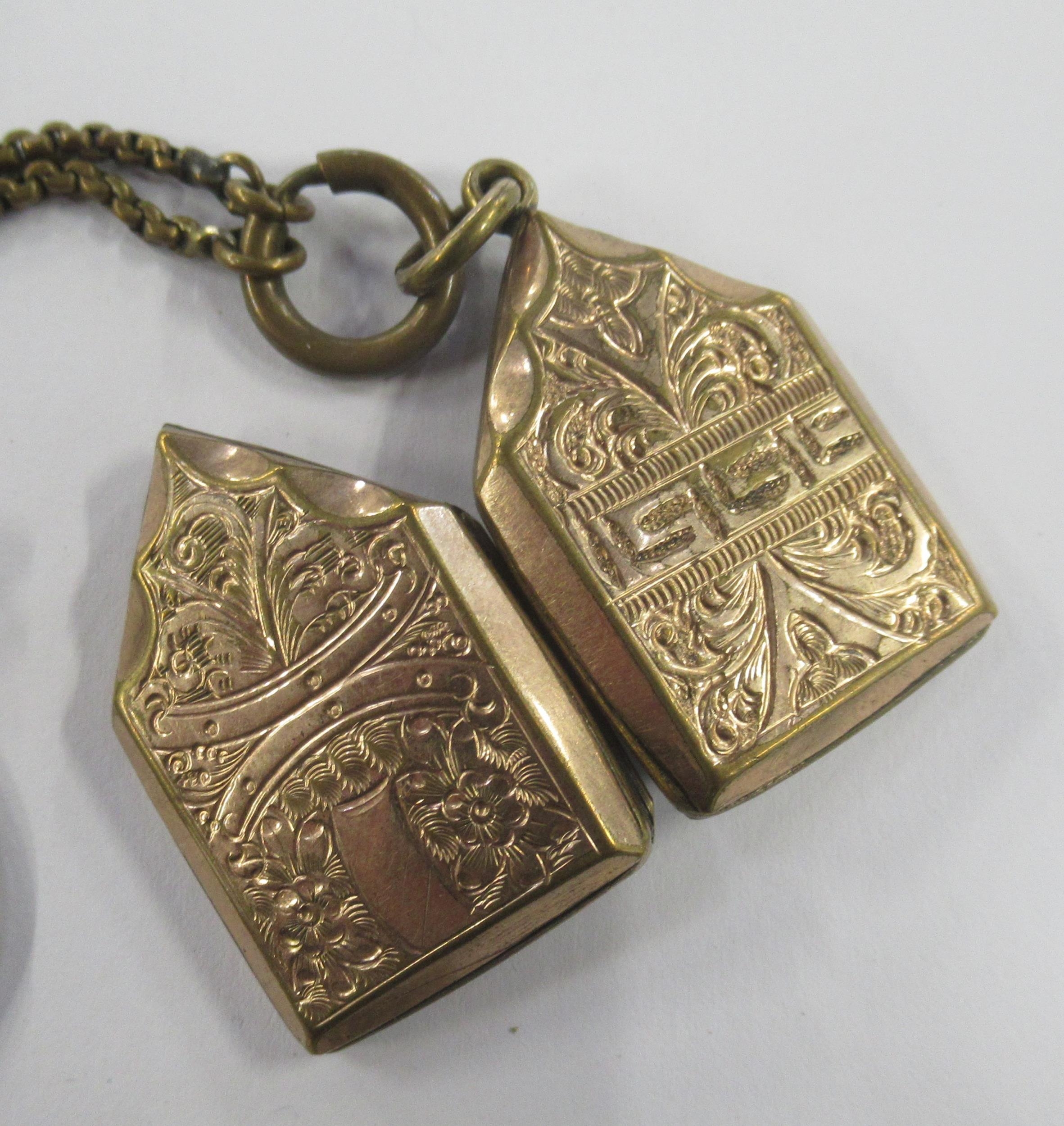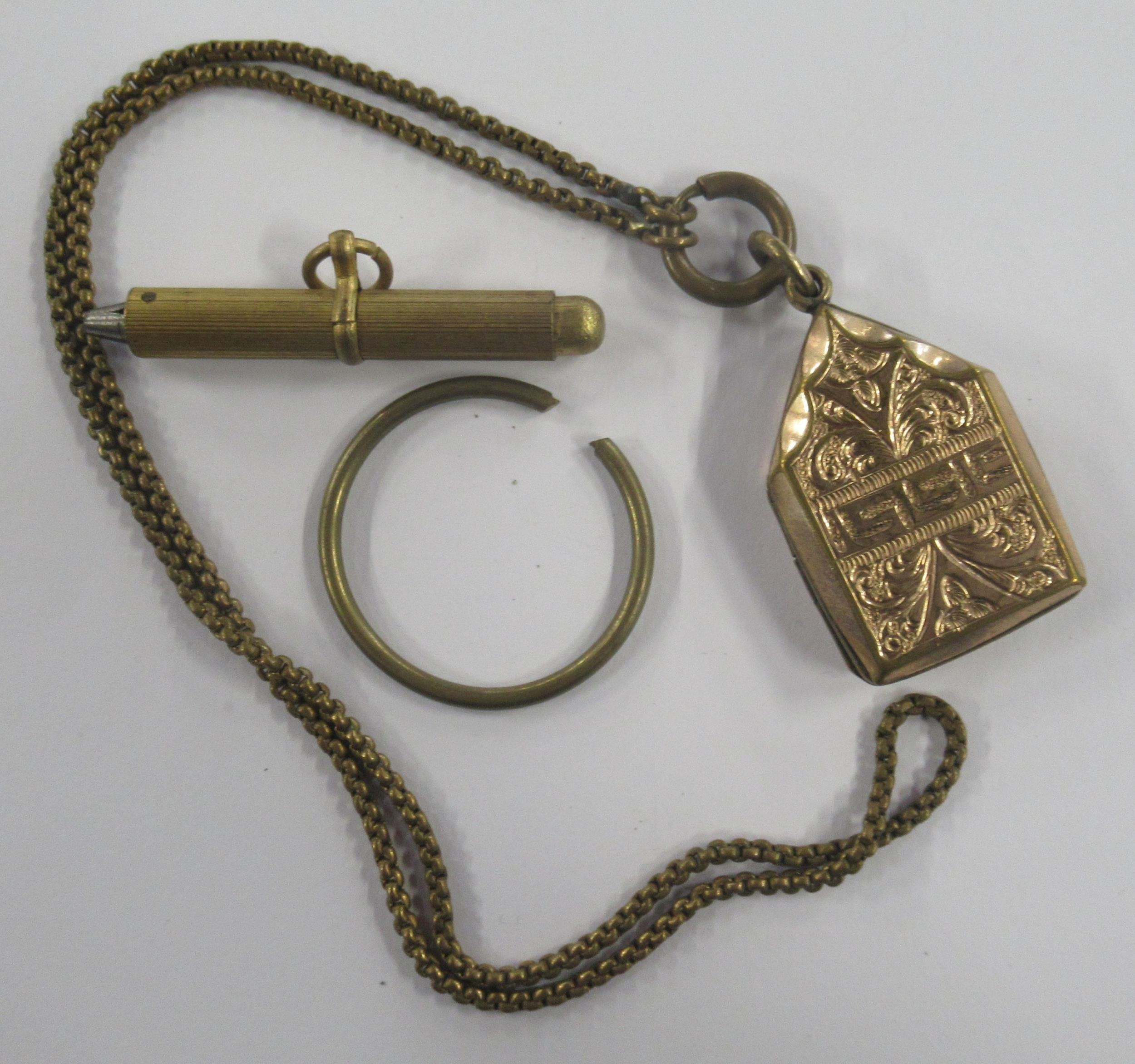 A yellow metal locket, chain and propelling pencil