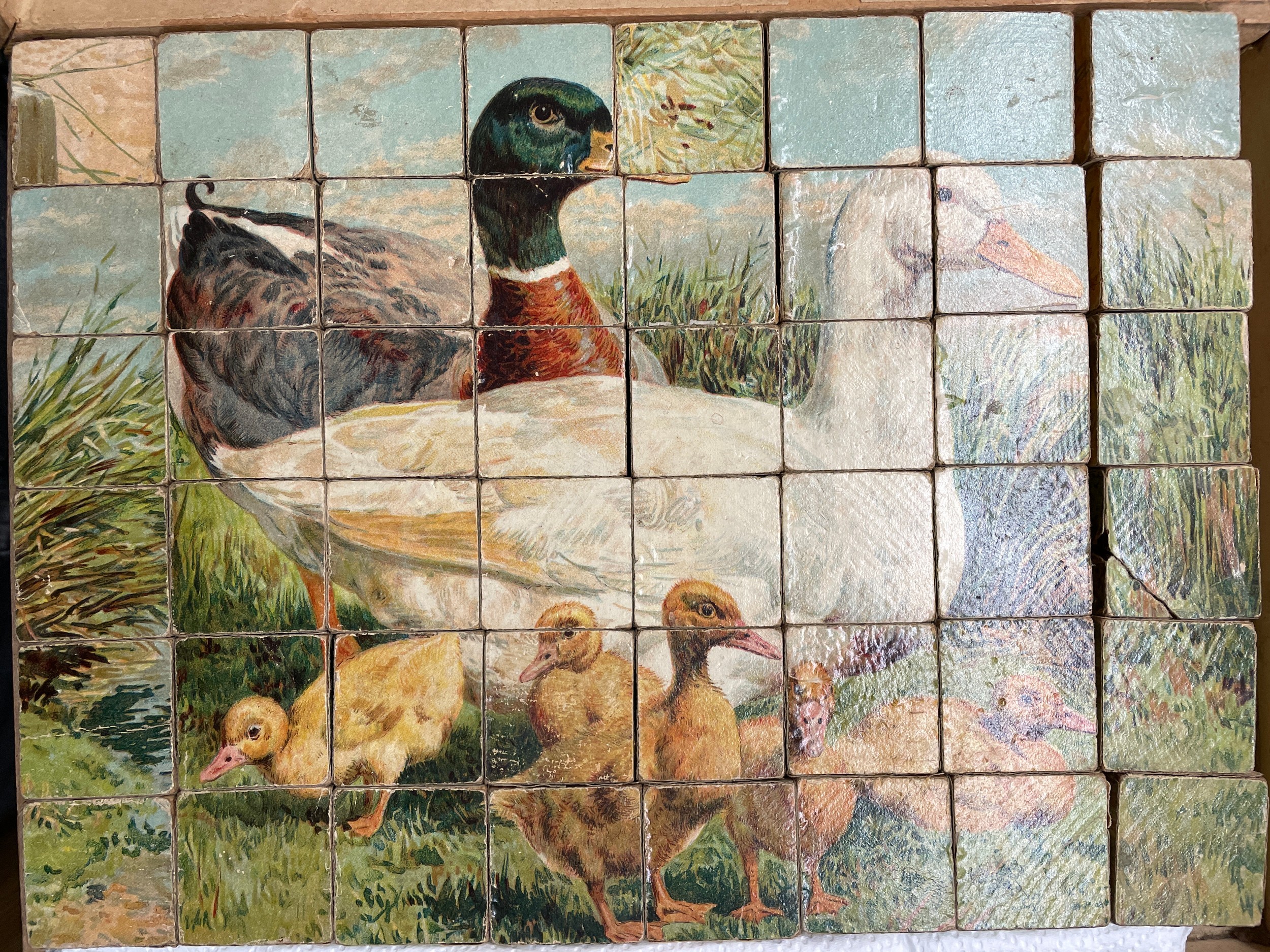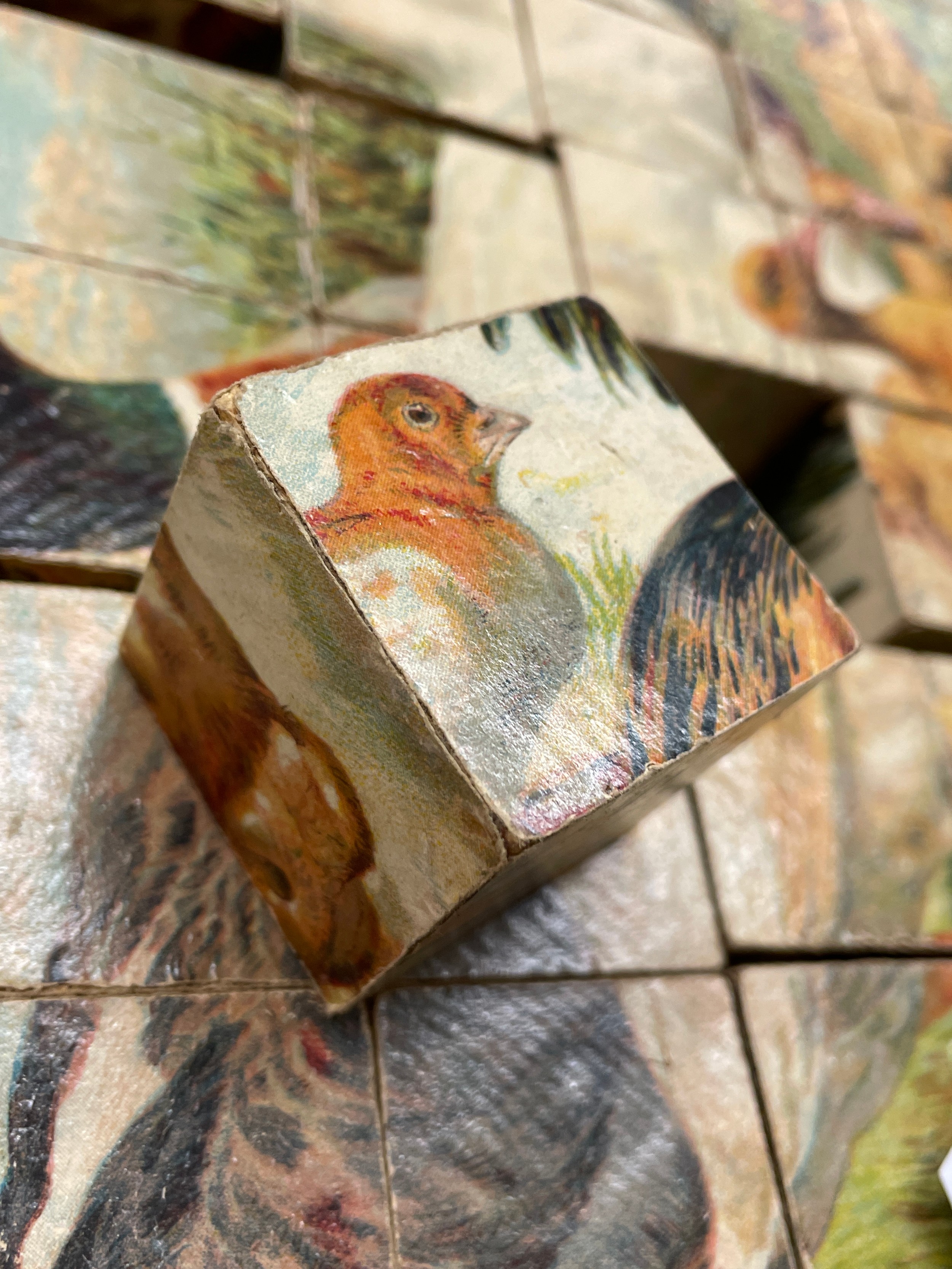 VINTAGE FOUR WAY WOODEN BLOCK FARMYARD JIGSAW PUZZLE