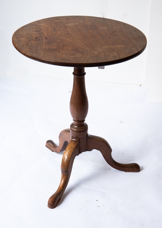GEORGE III MAHOGANY TRIPOD OCCASIONAL TABLE, the circular, tilt-top above a slender turned column, and raised on downswept supports, 27 ½” (69.9cm) high, 22” (55.9cm) diameter