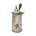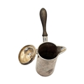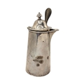 Hallmarked Dublin, 1807, having tapering cylindrical body, engraved eagle cartouche to front, plain polished finish, turned carved wood side handle.