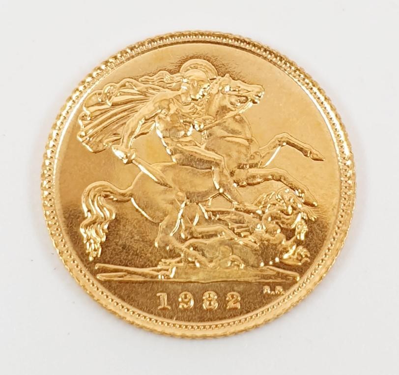 Elizabeth II: a half sovereign coin, 1982. UK shipping £14.