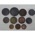 Victoria Farthing 1841; George III Token 1788; Whale Fishery Half Penny Token 1794; George III Half Penny 1799; George III Cartwheel Penny 1797; George III Cartwheel Twopence 1797; Williams Bros 10 Shilling Token; Other misc copper coins (4) (lot)