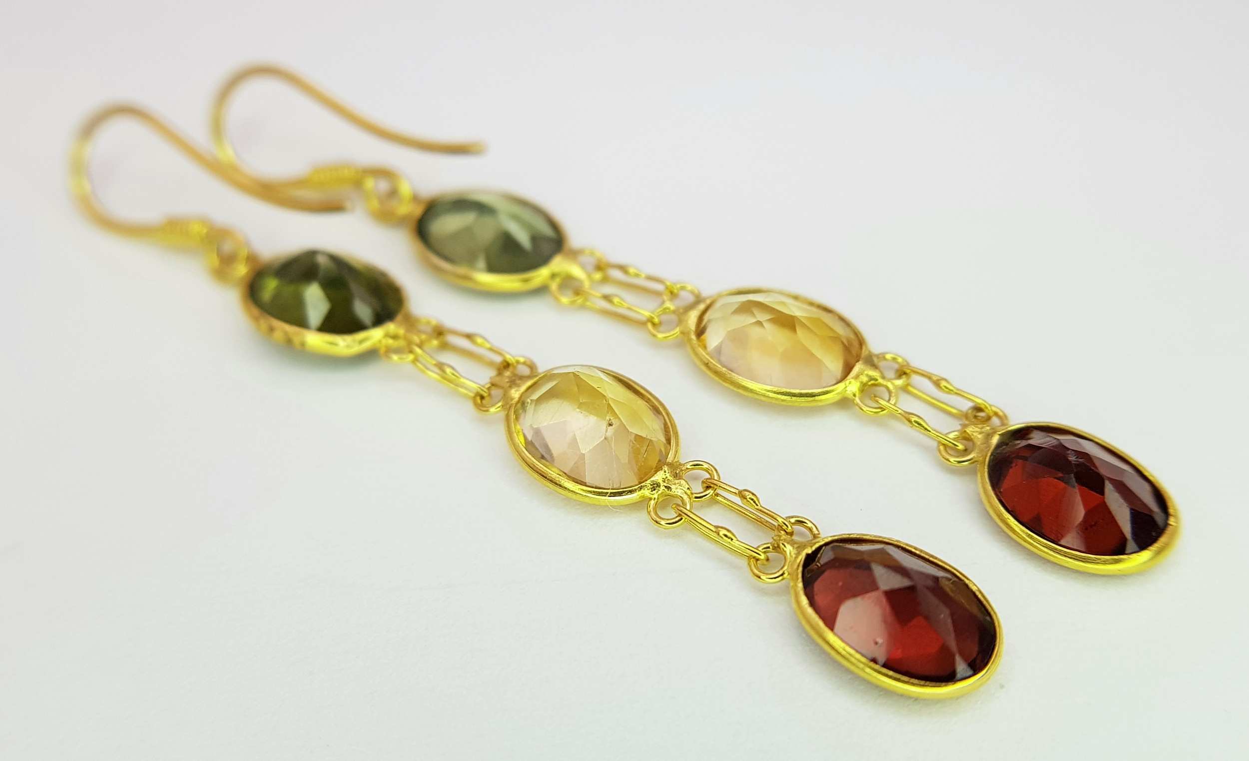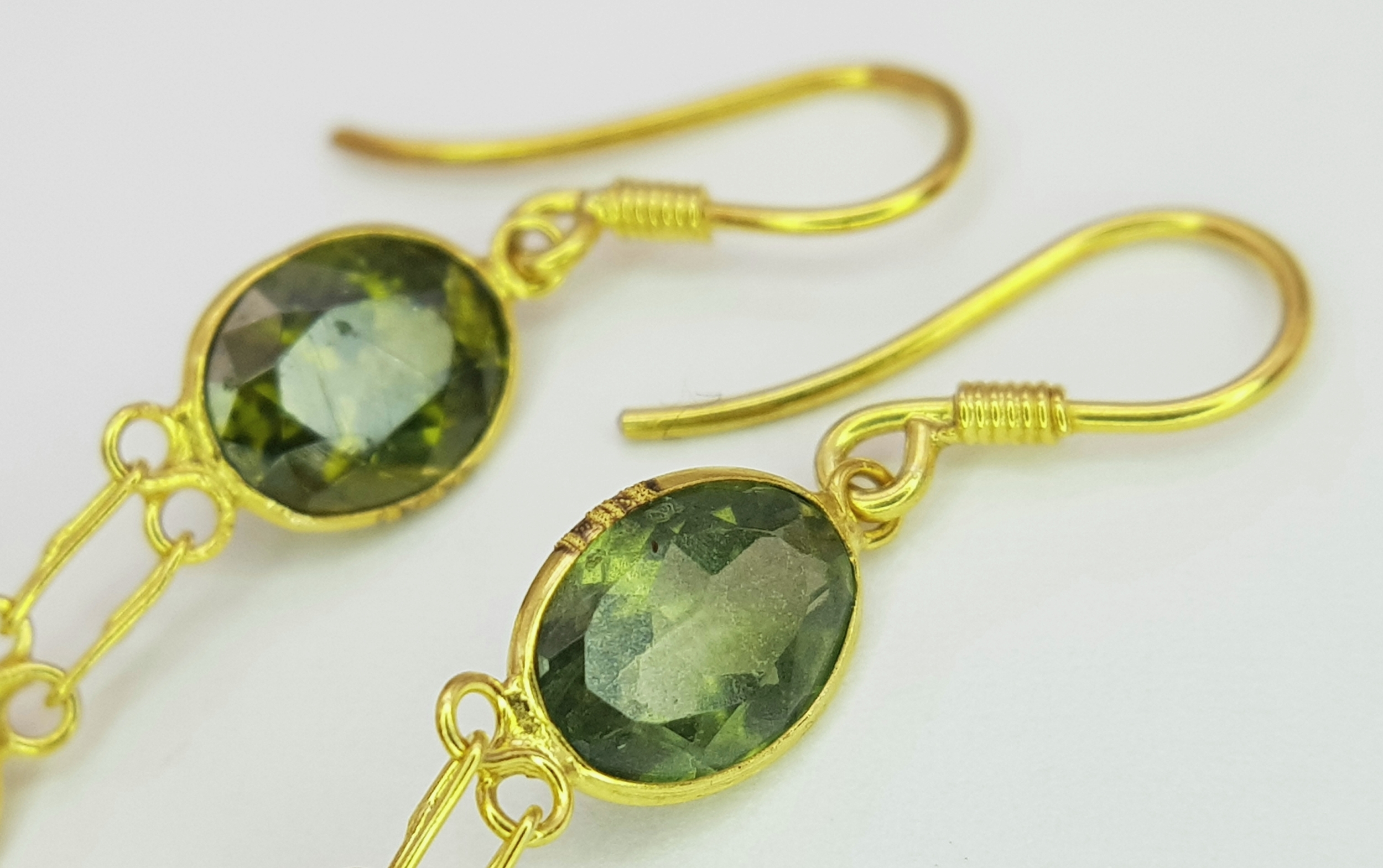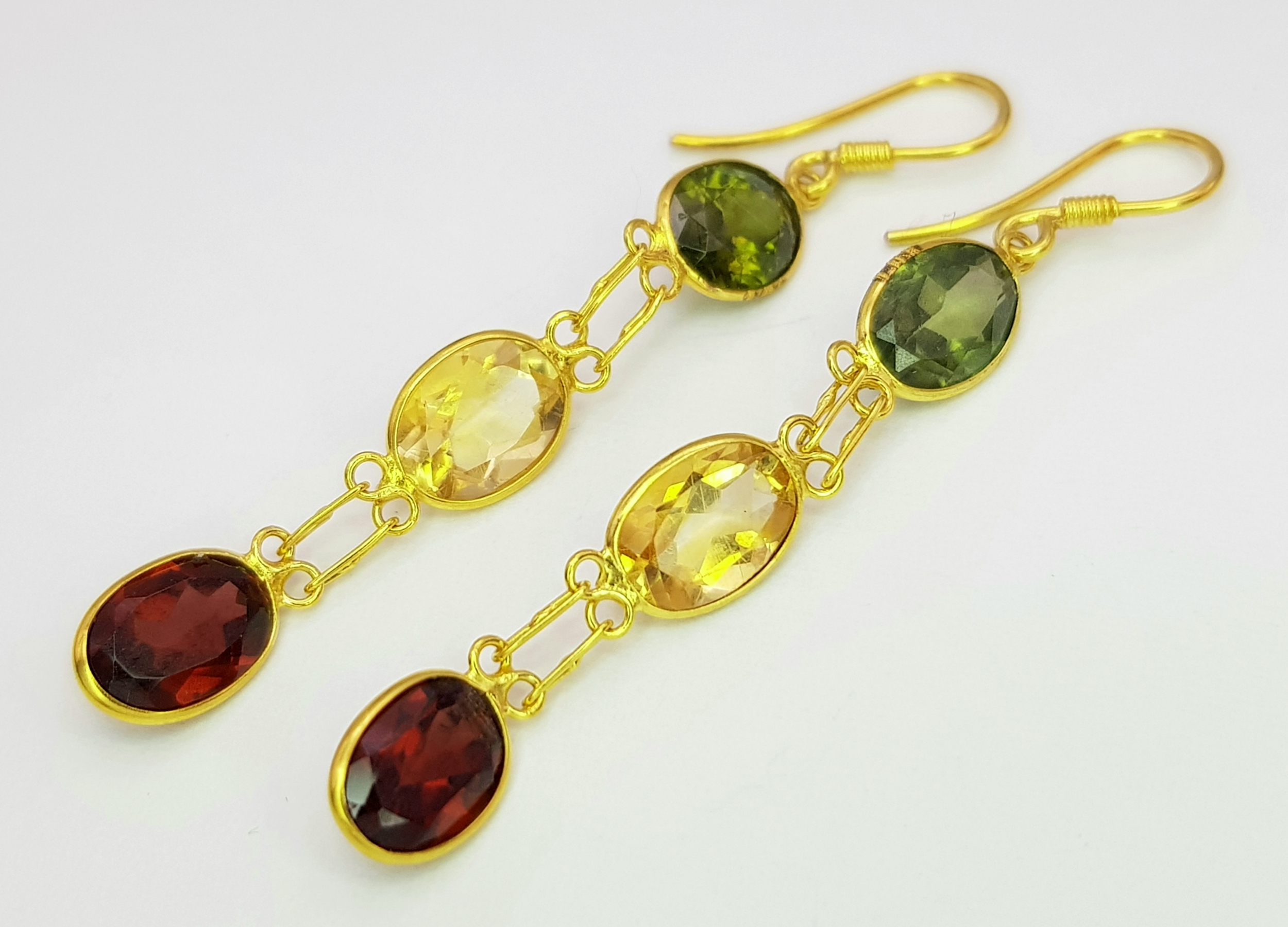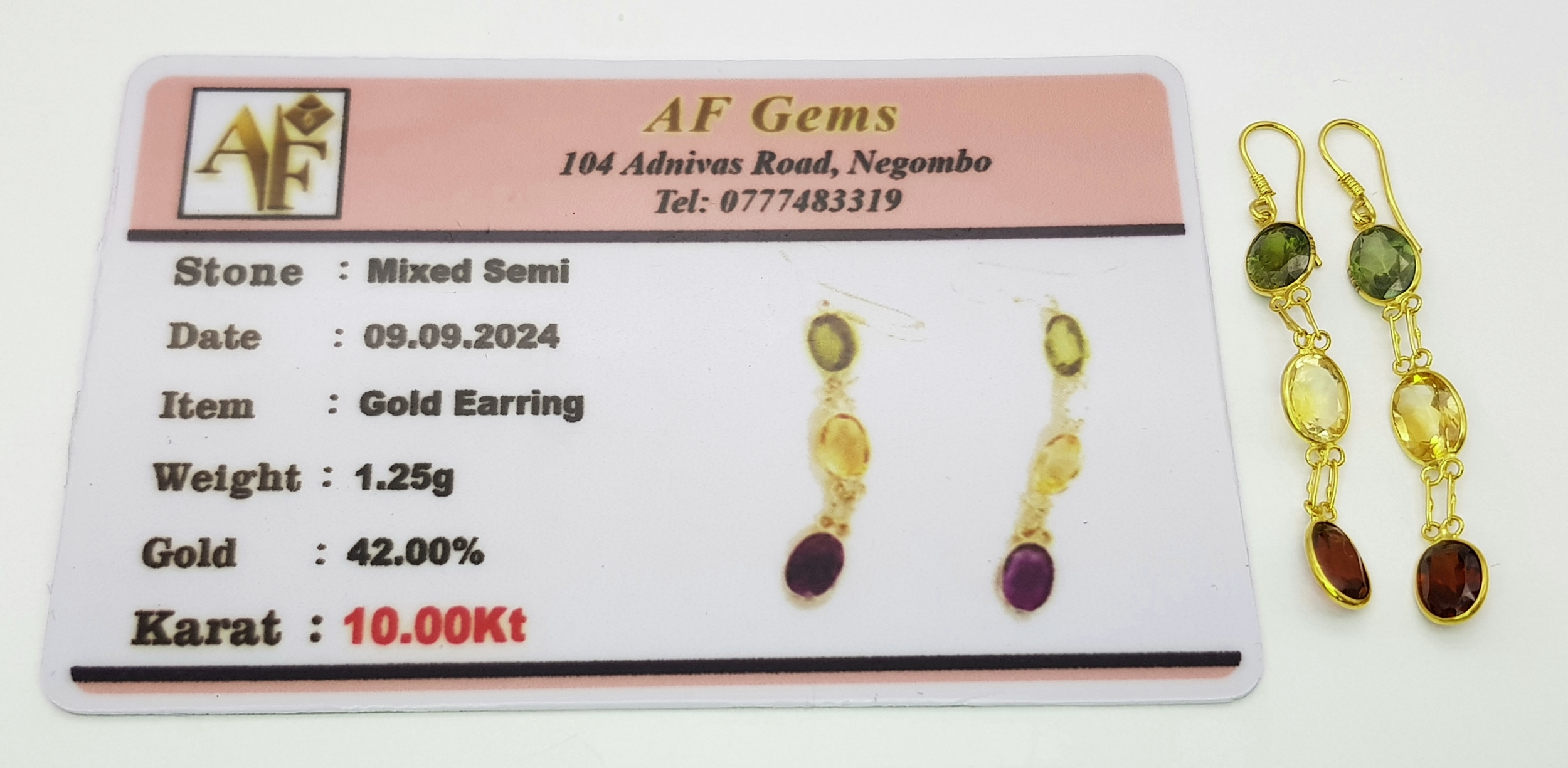 A Pair of 10K Yellow Gold Stone-Set Drop Earrings. 3.5cm drop. 1.25g. Comes with a coa. NL007.