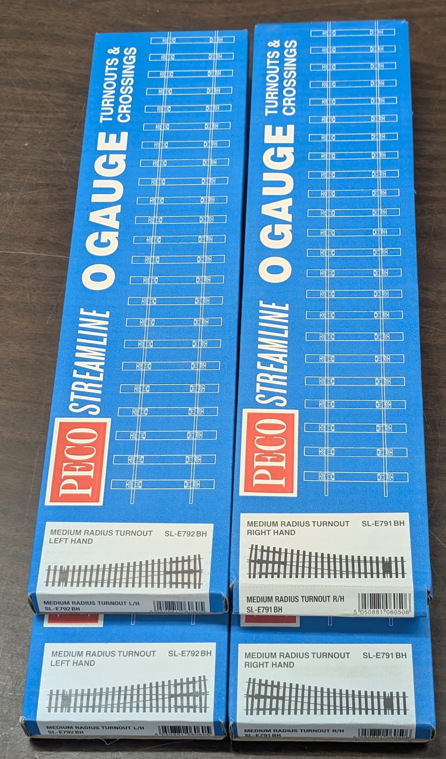 Four Boxed PECO Streamline O Gauge Model Railway Track Sections, Two Right & Two Left Turnouts