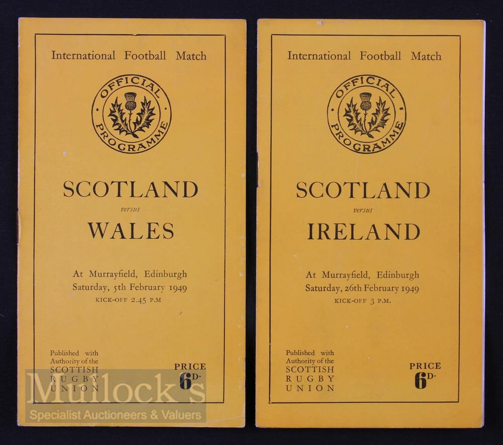 1949 Scottish Home Rugby Programmes (2): The old Murrayfield style issues v Wales and v Ireland, champions-to-be. Close to perfect.